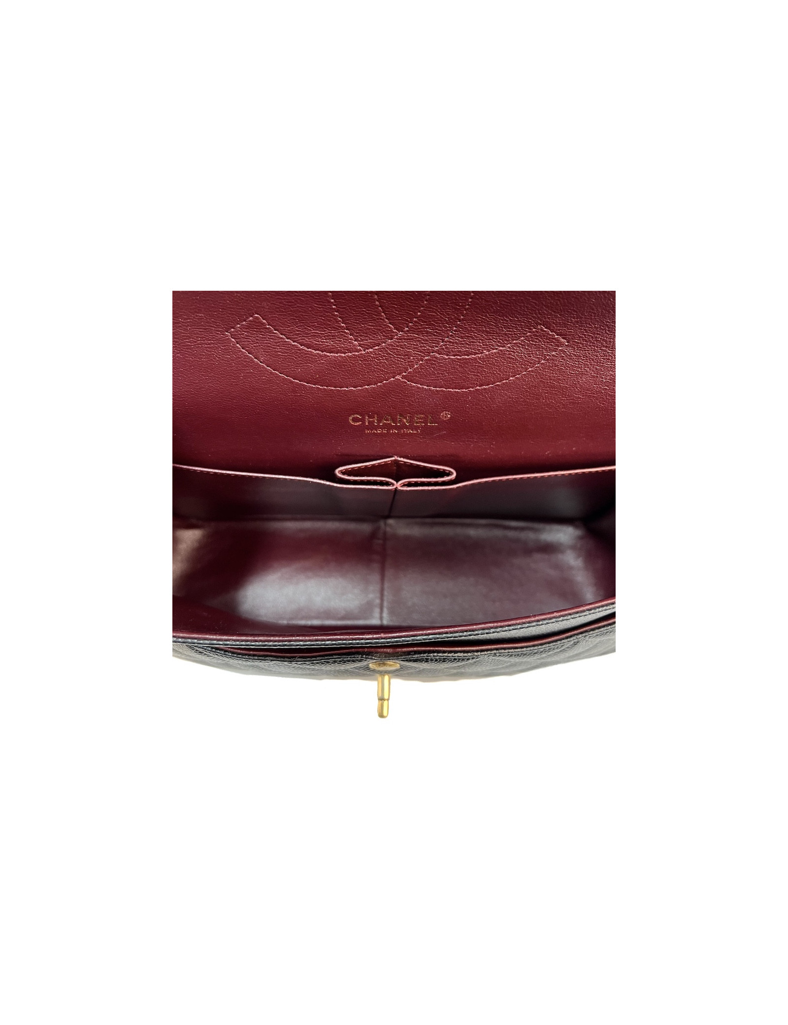 TIMELESS CHANEL CHANEL Jumbo bag in black grained leather CHANEL 30897 6,800.00 € CHANEL Jumbo bag in black grained leather Condition : good (slight tear under the flap)Made in FranceMaterial: grained leatherColor : blackLining: burgundy leatherMeasurements : 30 x 20 x 9 cmHologram : before 1980 Add to cart