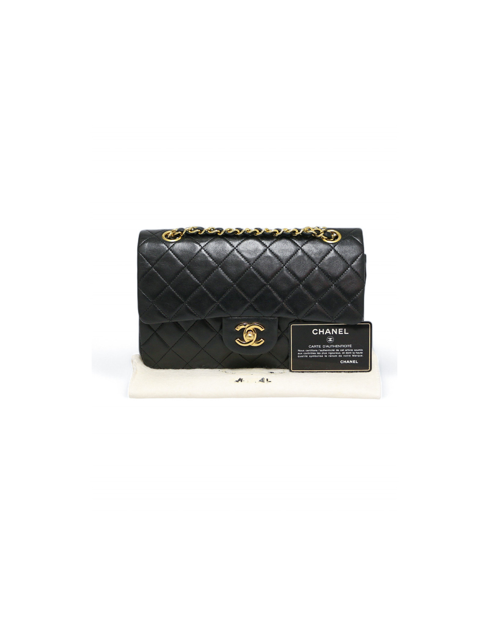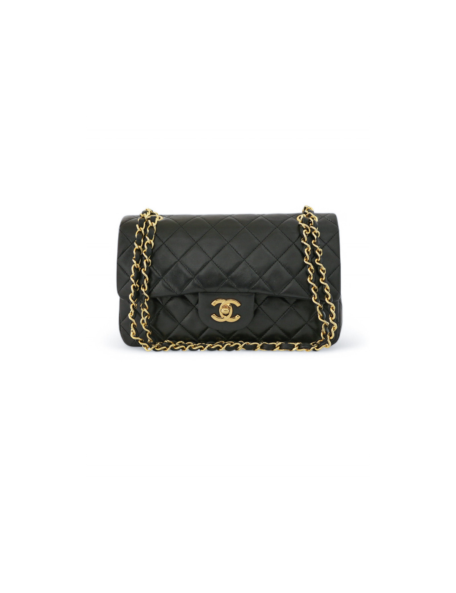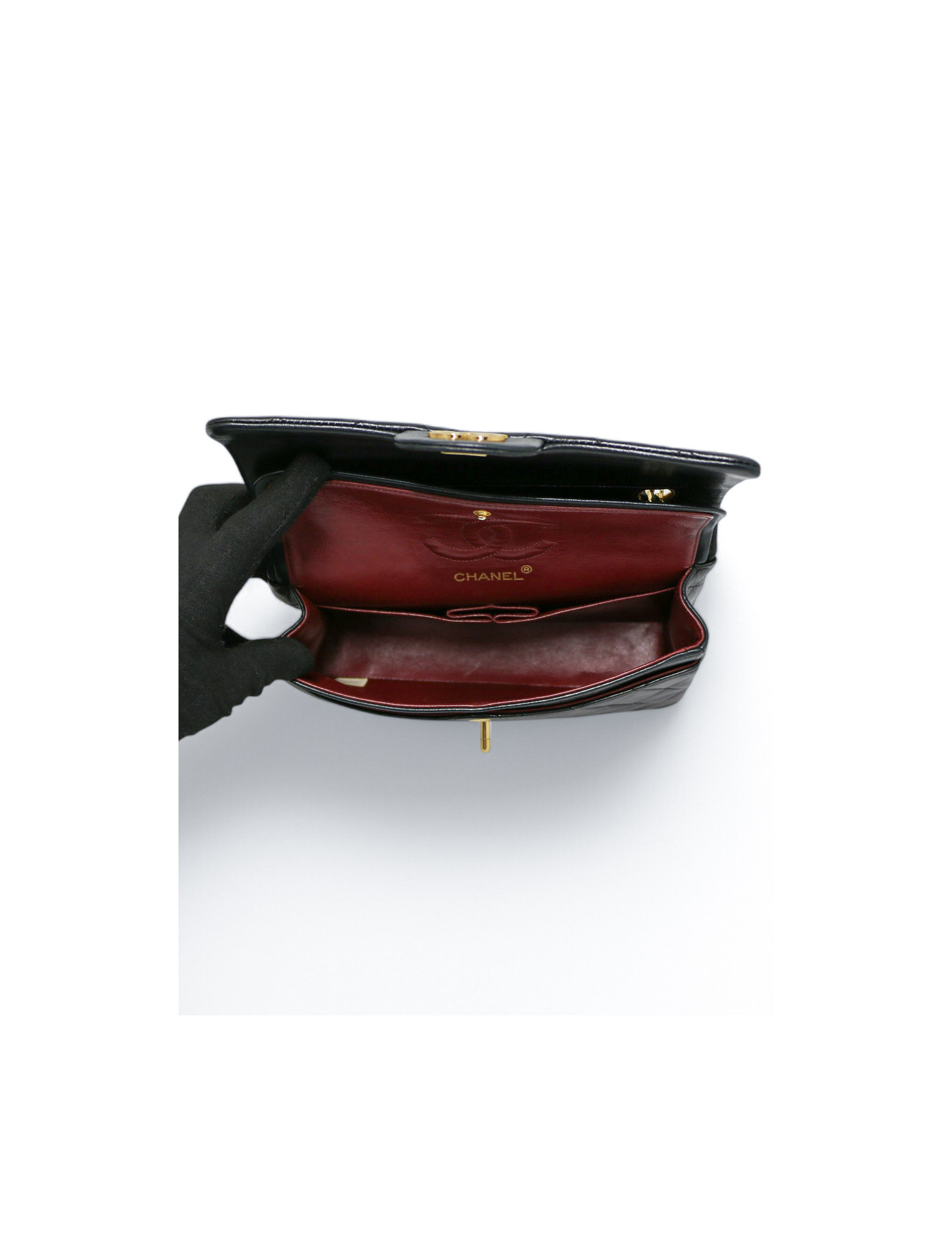 Last items in stock TIMELESS CHANEL CHANEL black quilted Timeless 25 bag CHANEL 36902 6,200.00 € CHANEL vintage black Timeless bag Condition : goodMade in FranceModel : classique 25Gender : womanMaterial : lambskin leatherLining : burgundy smooth leatherColor : blackMeasurements : 27 x 19 x 8 cmShoulder strap : 88 simple, 53 doubleHologram : 0916...year : 1986-1988Hardware : gold plated metalDetails : classic vintage Chanel. Good condition, as the... Add to cart