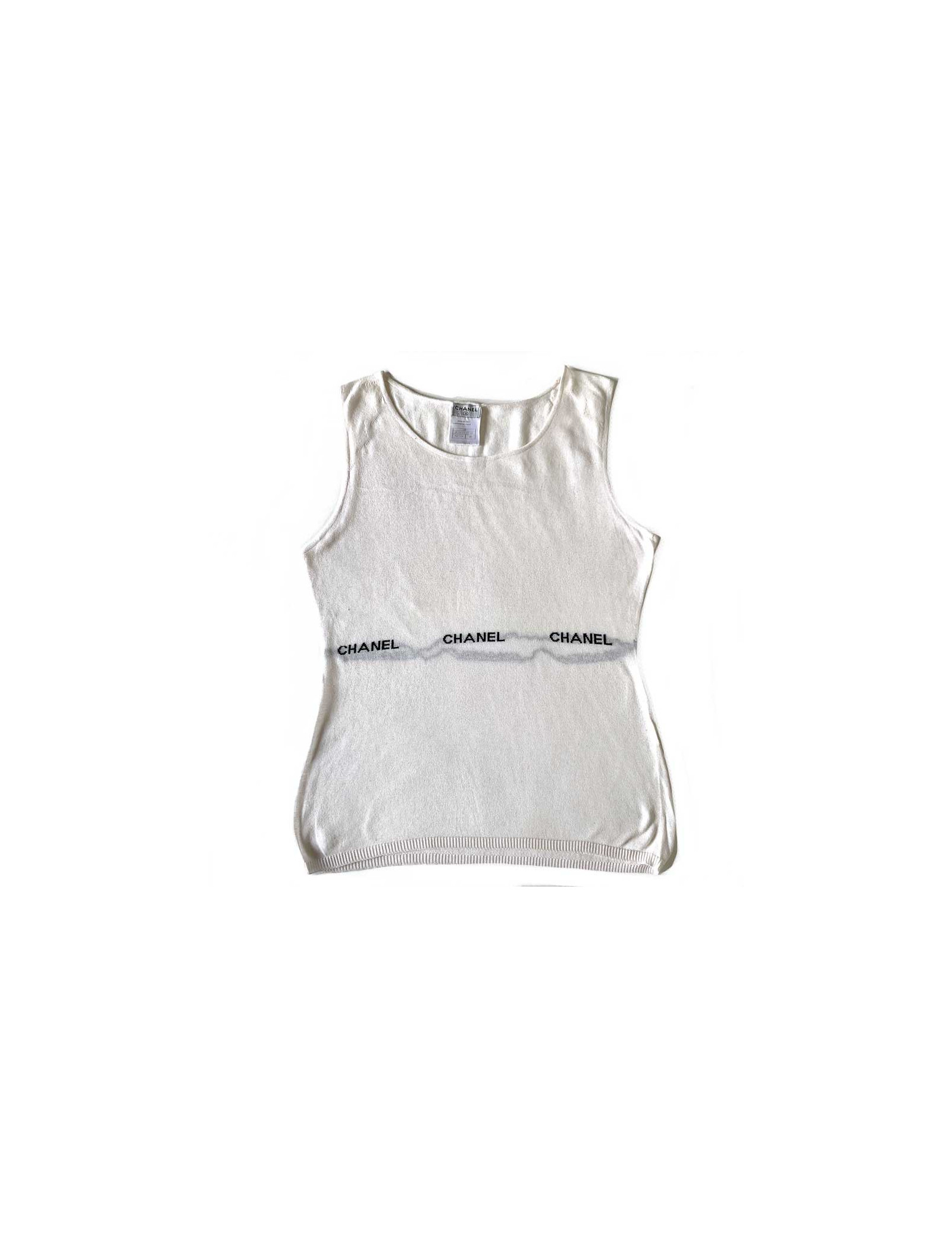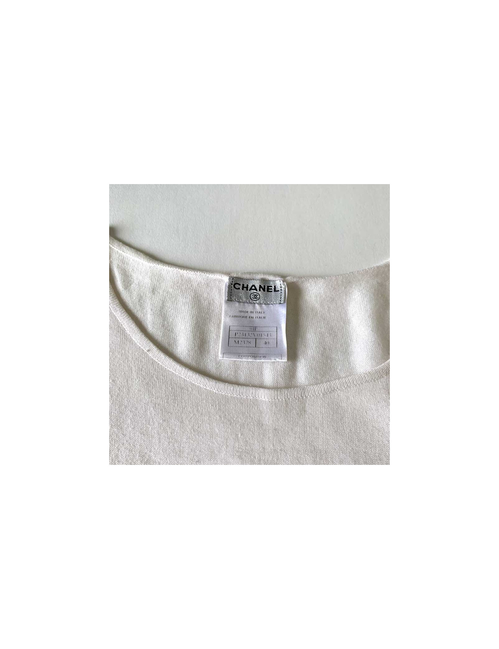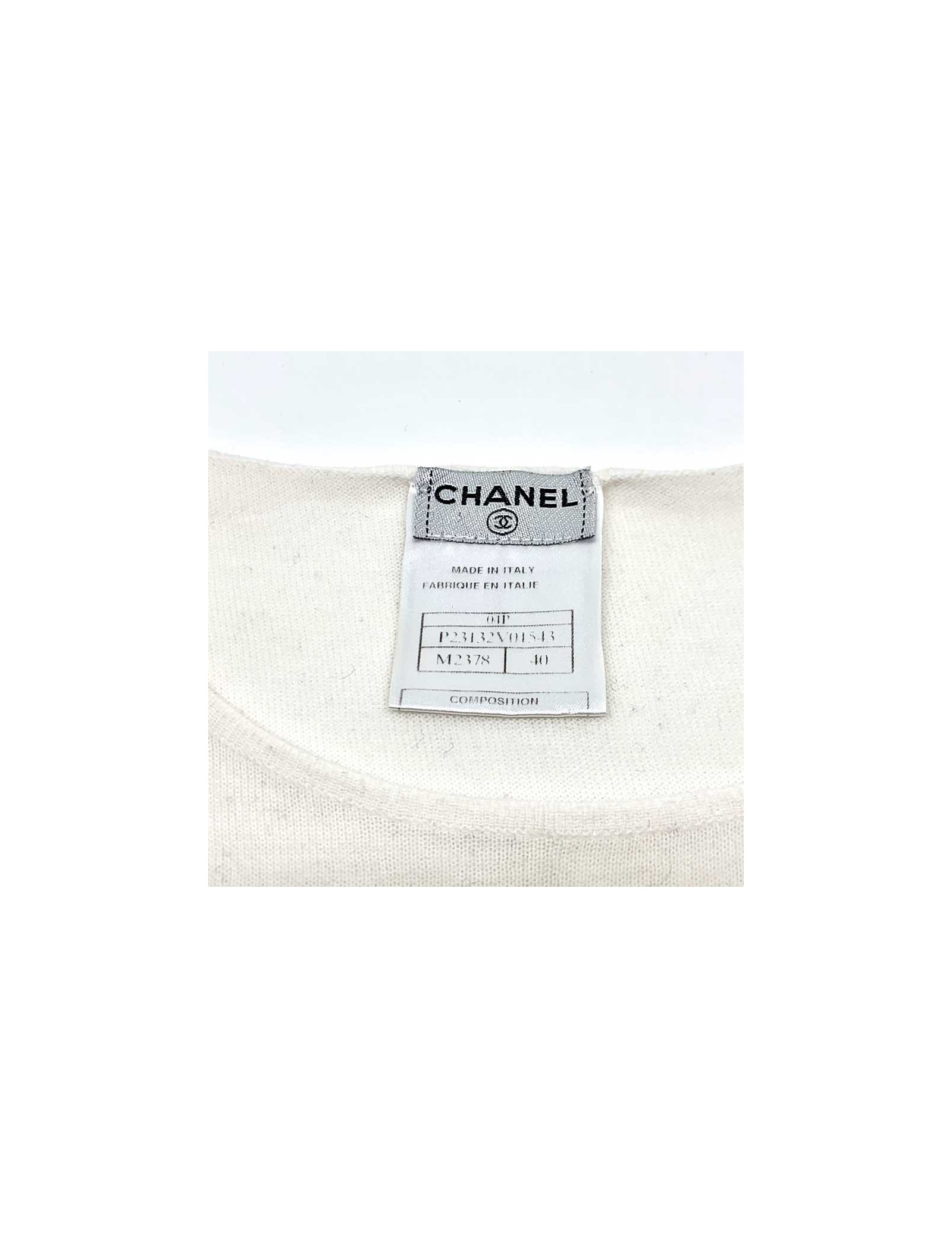 Last items in stock TOPS/BLOUSES Blouse T 36 CHANEL sans manches fils argent sur soie beige CHANEL 23957 550.00 € Add to cart