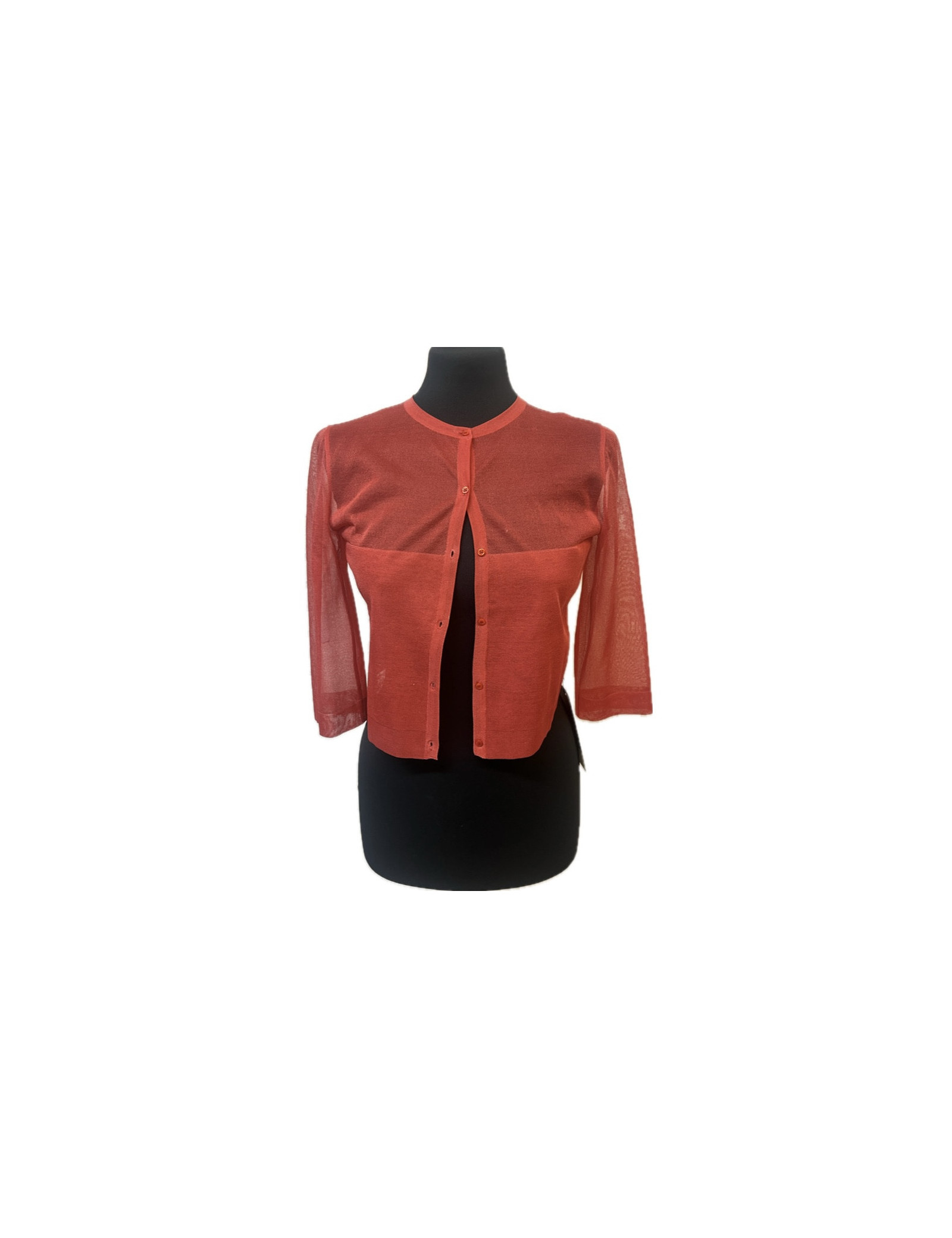 Online only Sold TOPS/BLOUSES Hermes v-neck sweater Twillaine HERMES 26878 570.00 € HERMES v-neck sweater Twillaine, silk and knit Condition: never worn Made in Italy Size:36/38FR Materials: unknown Colors:orange, blue, green, pink Measurements: shoulders: 41cm, total length: 59cm, bust: 49cm, v length: 18cm Details: Short sleeved sweater. The front is in printed silk twill in autumnal tones of pink, blue and sandalwood. The silk knit... View