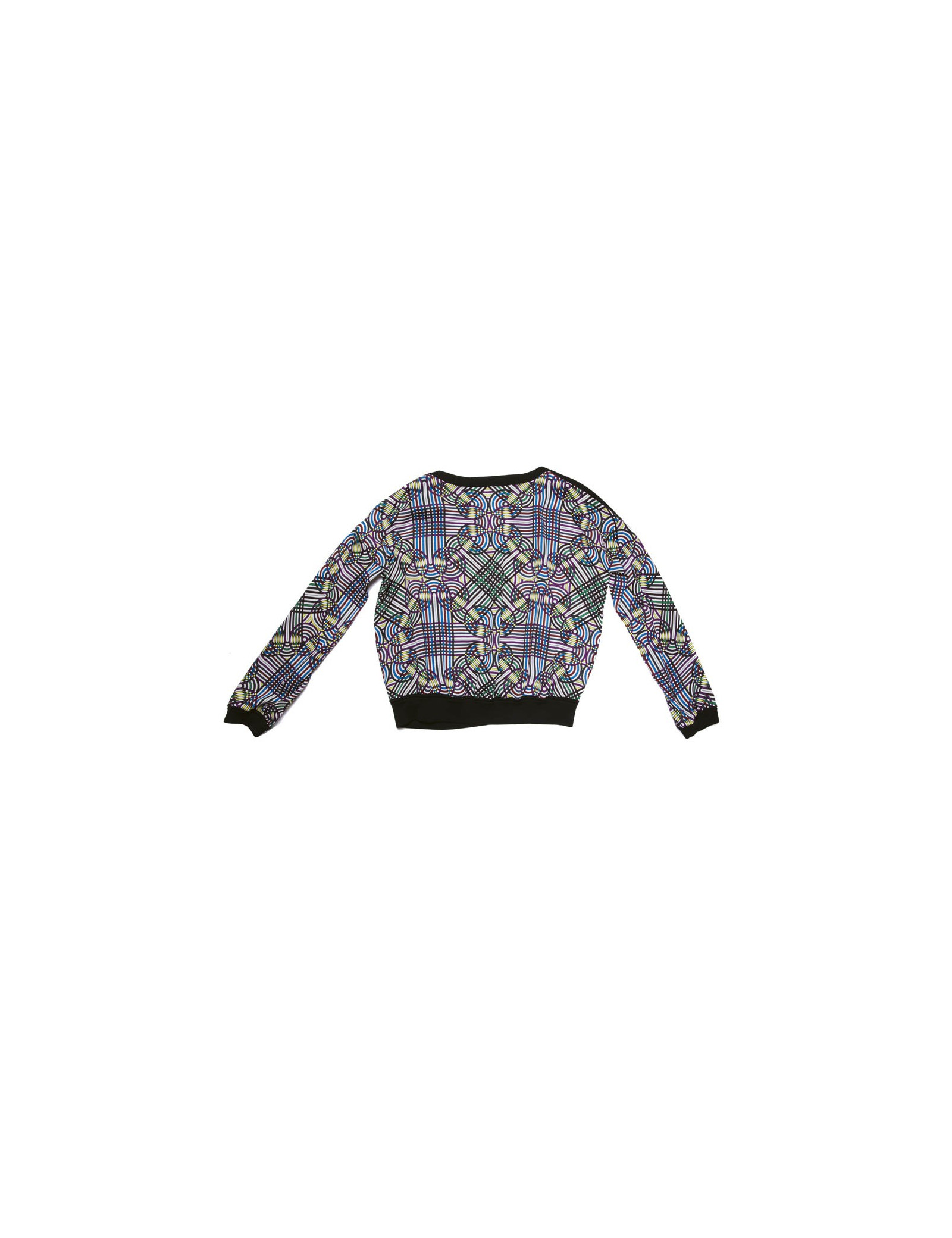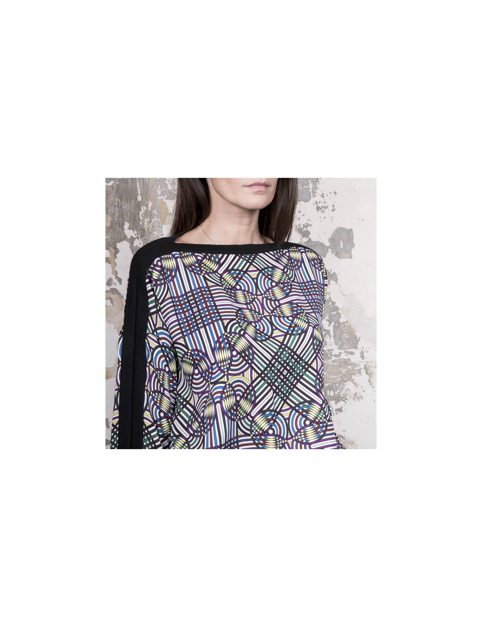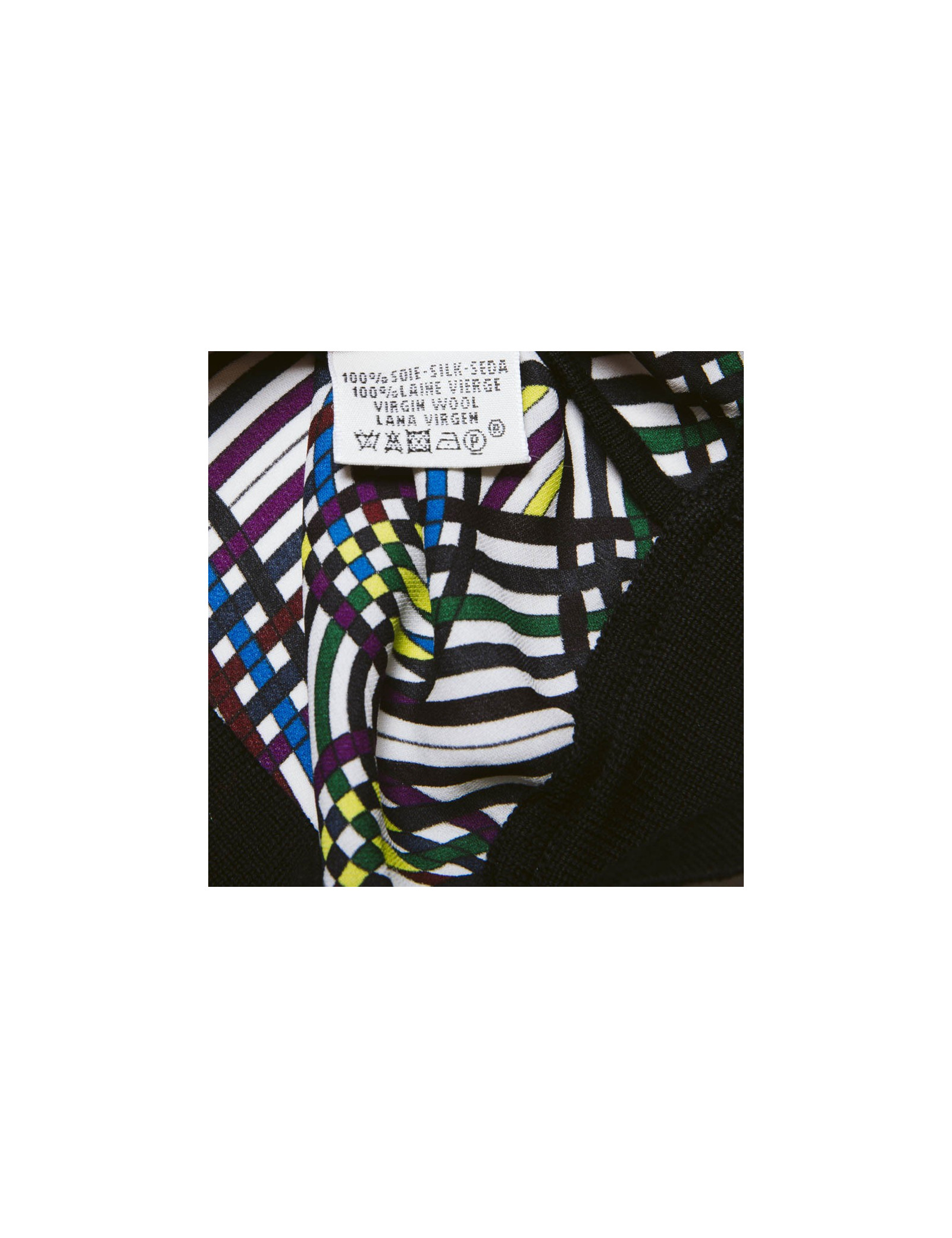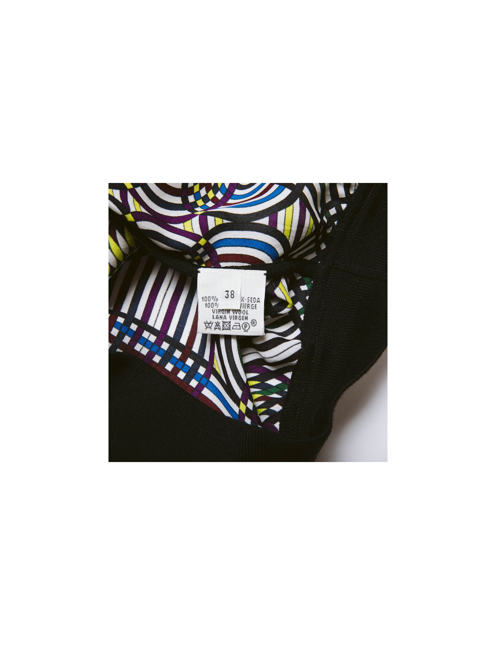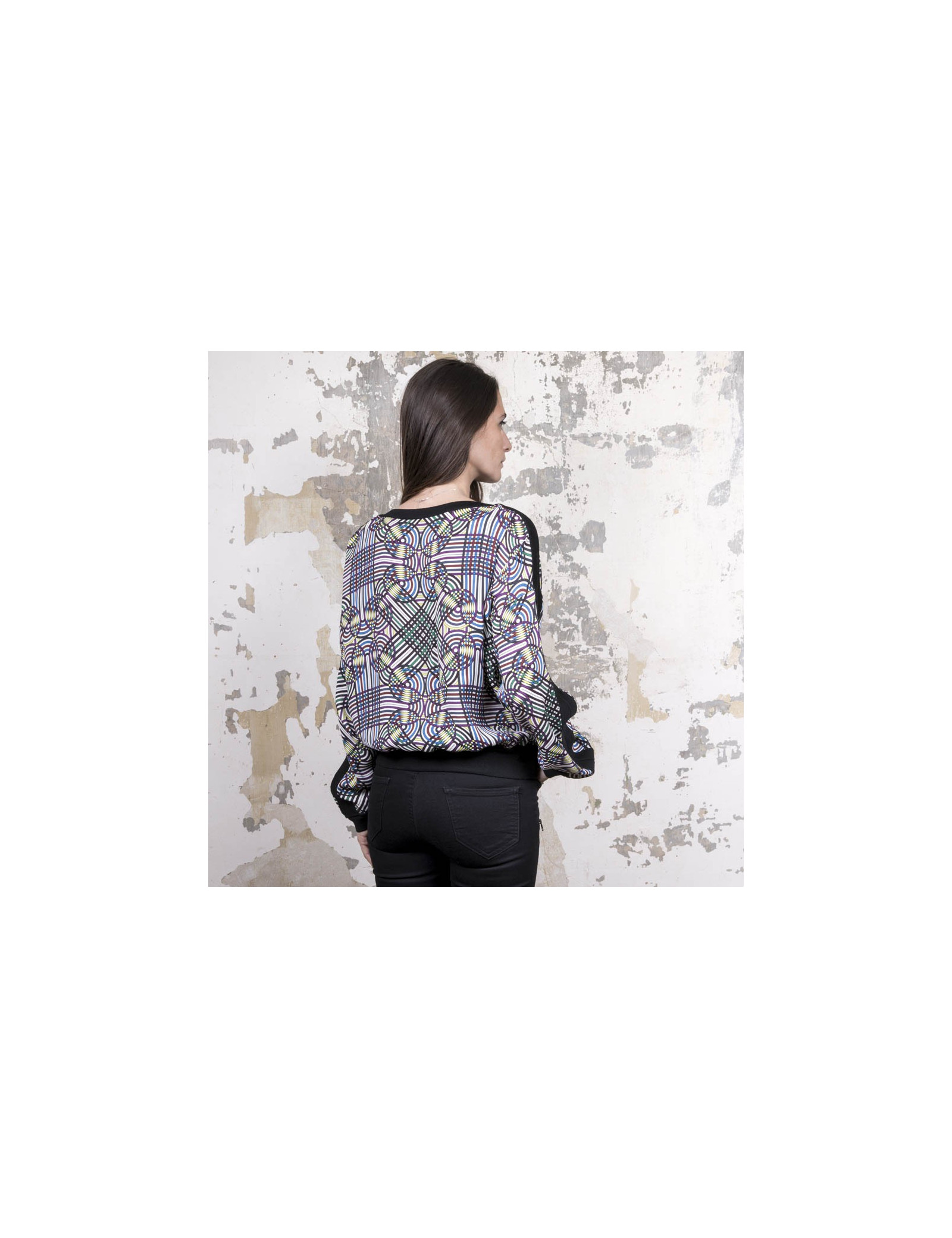 Blouse Vintage HERMES en soie motifs floraux bleu et jaune