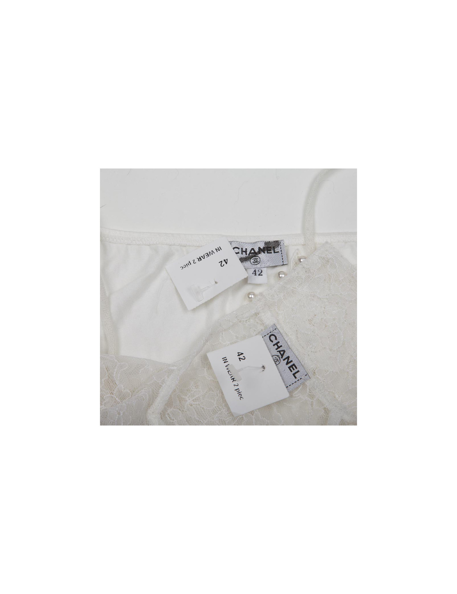 CHANEL T 42 blouse in off-white lace and its cotton caraco