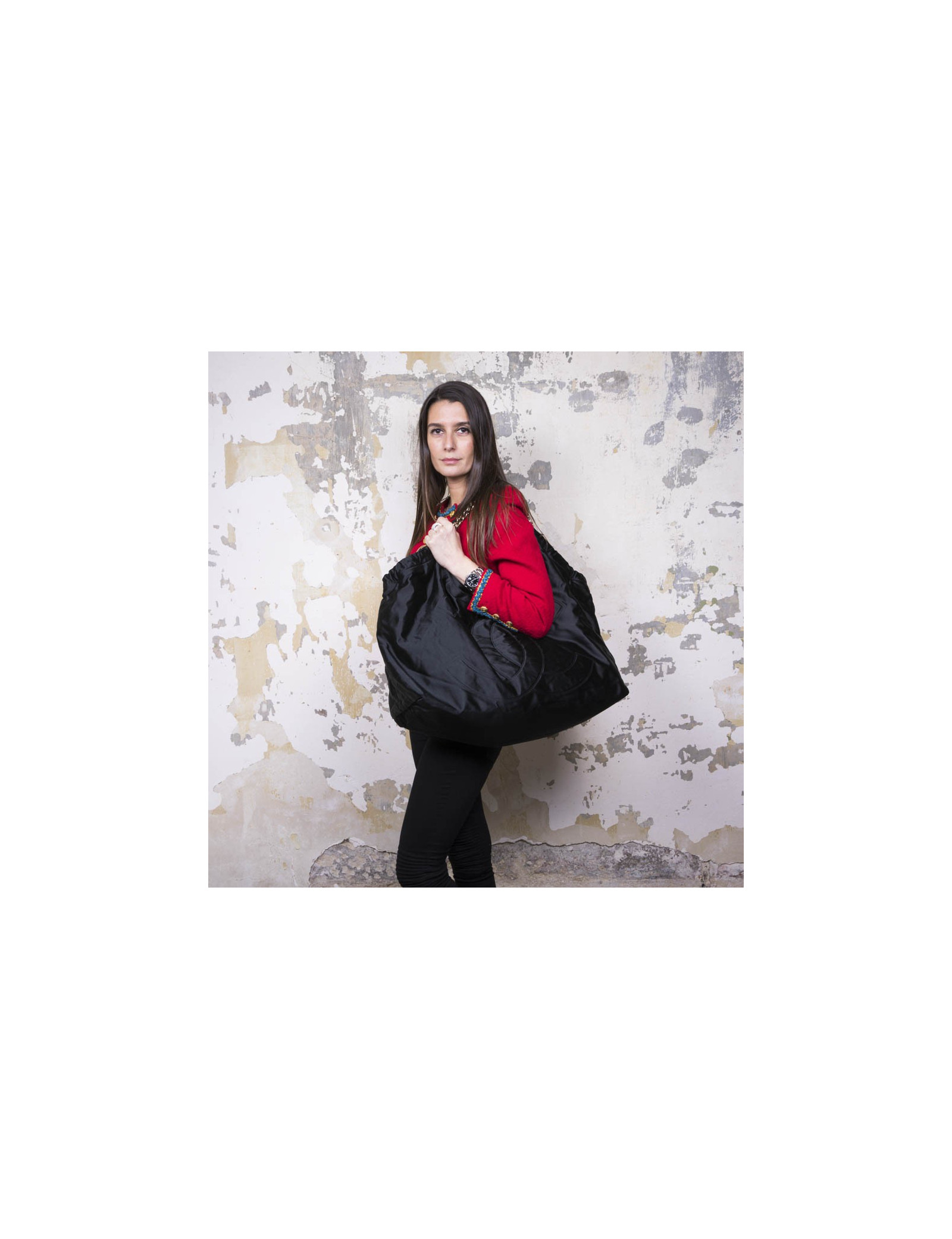 CHANEL tote bag in black duchess satin