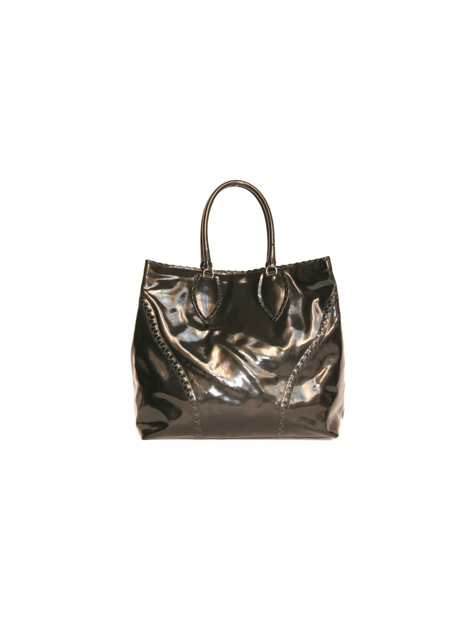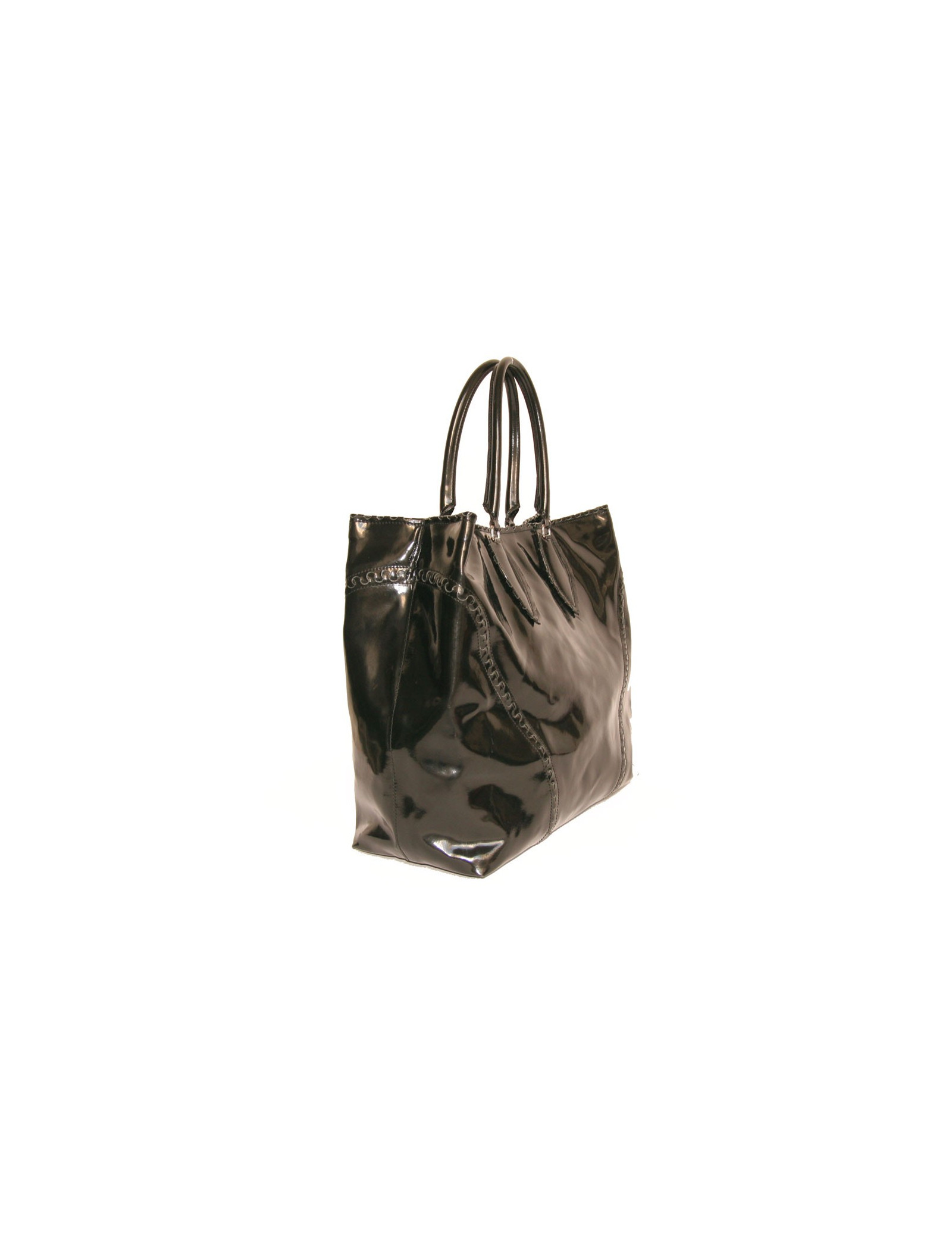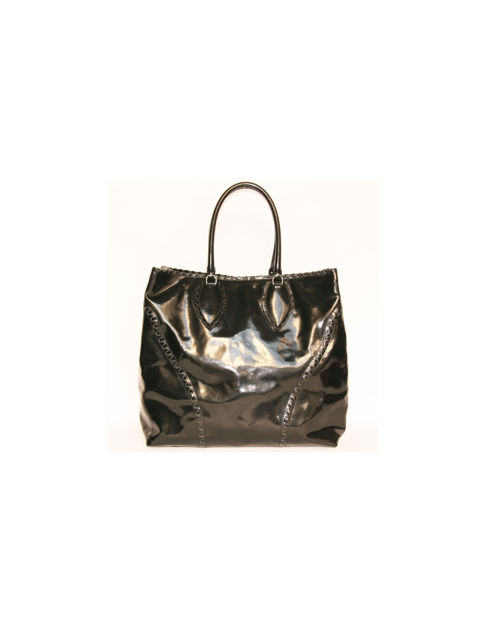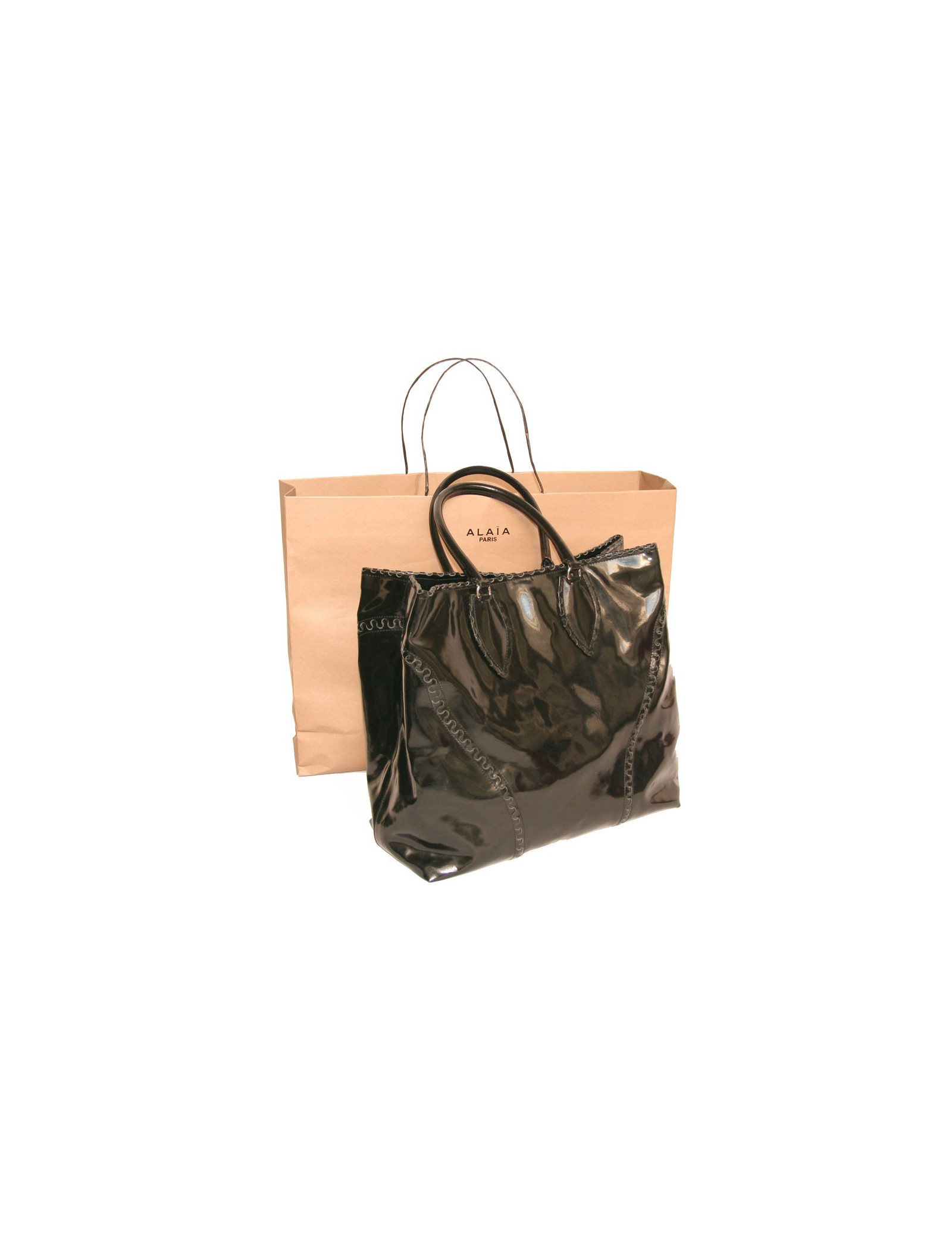 Alaïa Large tote bag in black patent leather. The hardware is in silver metal.