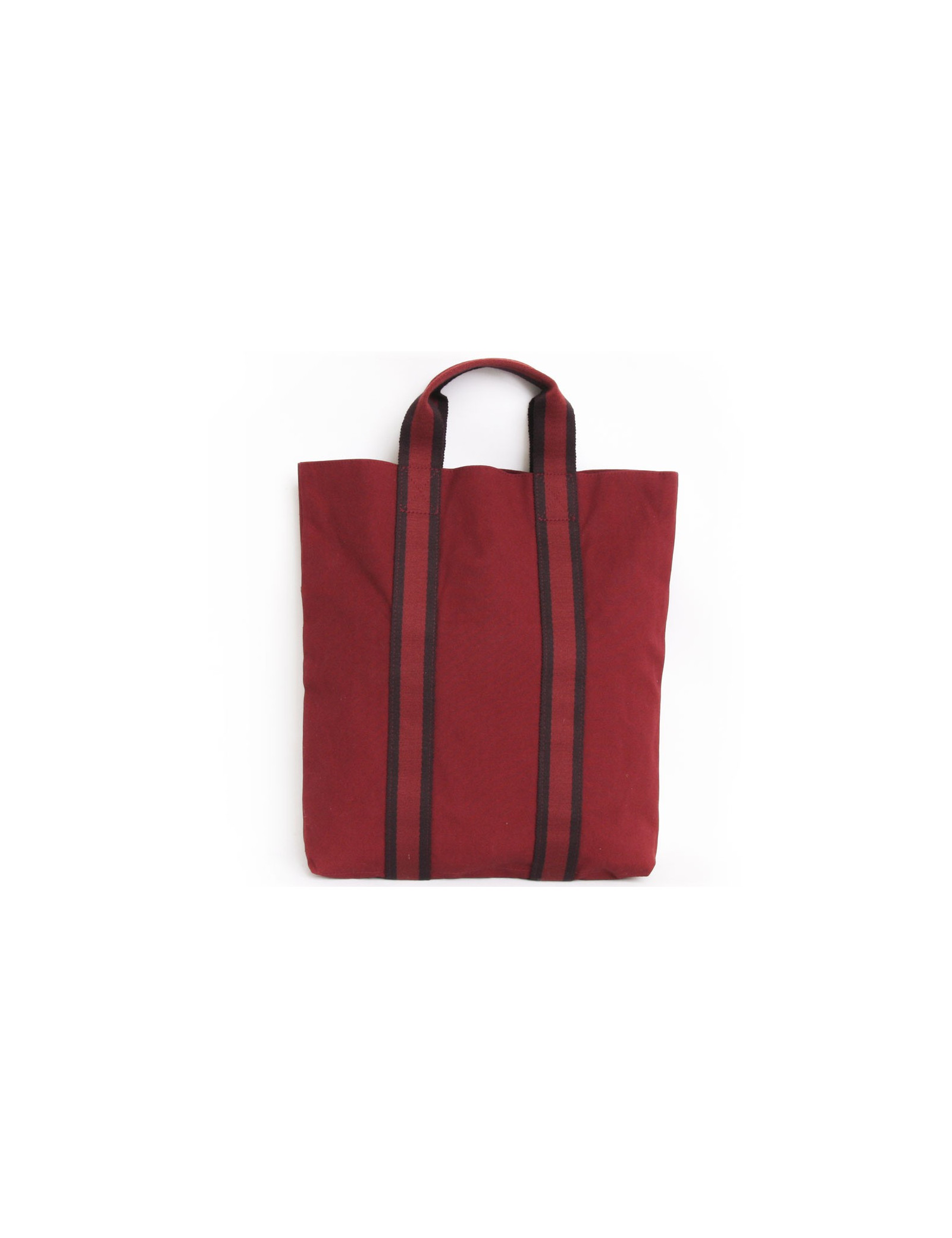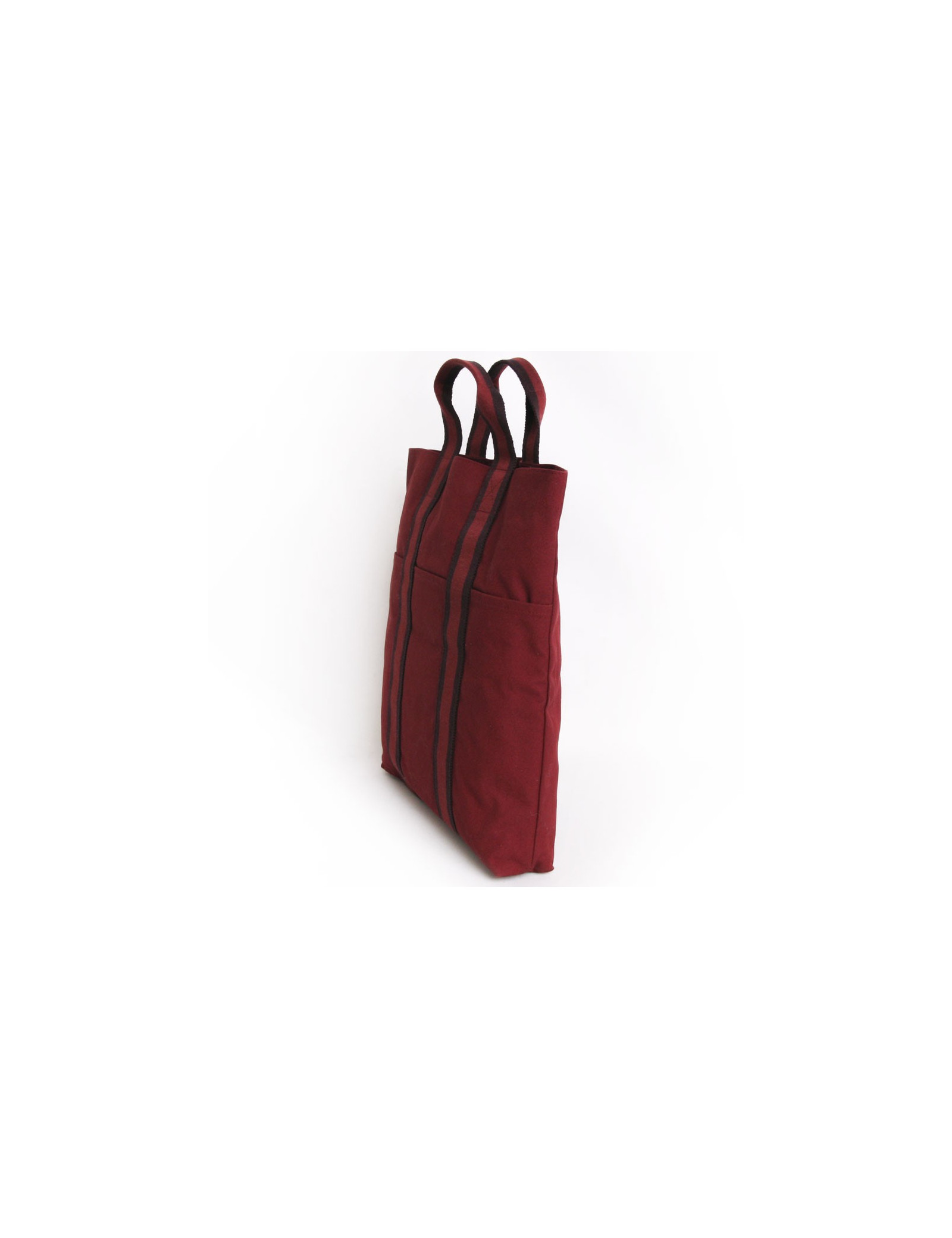 Hermes, red tote bag with red strips H and dark purple H, missing brand label. New condition. It is handmade and may contain folders or even a computer.