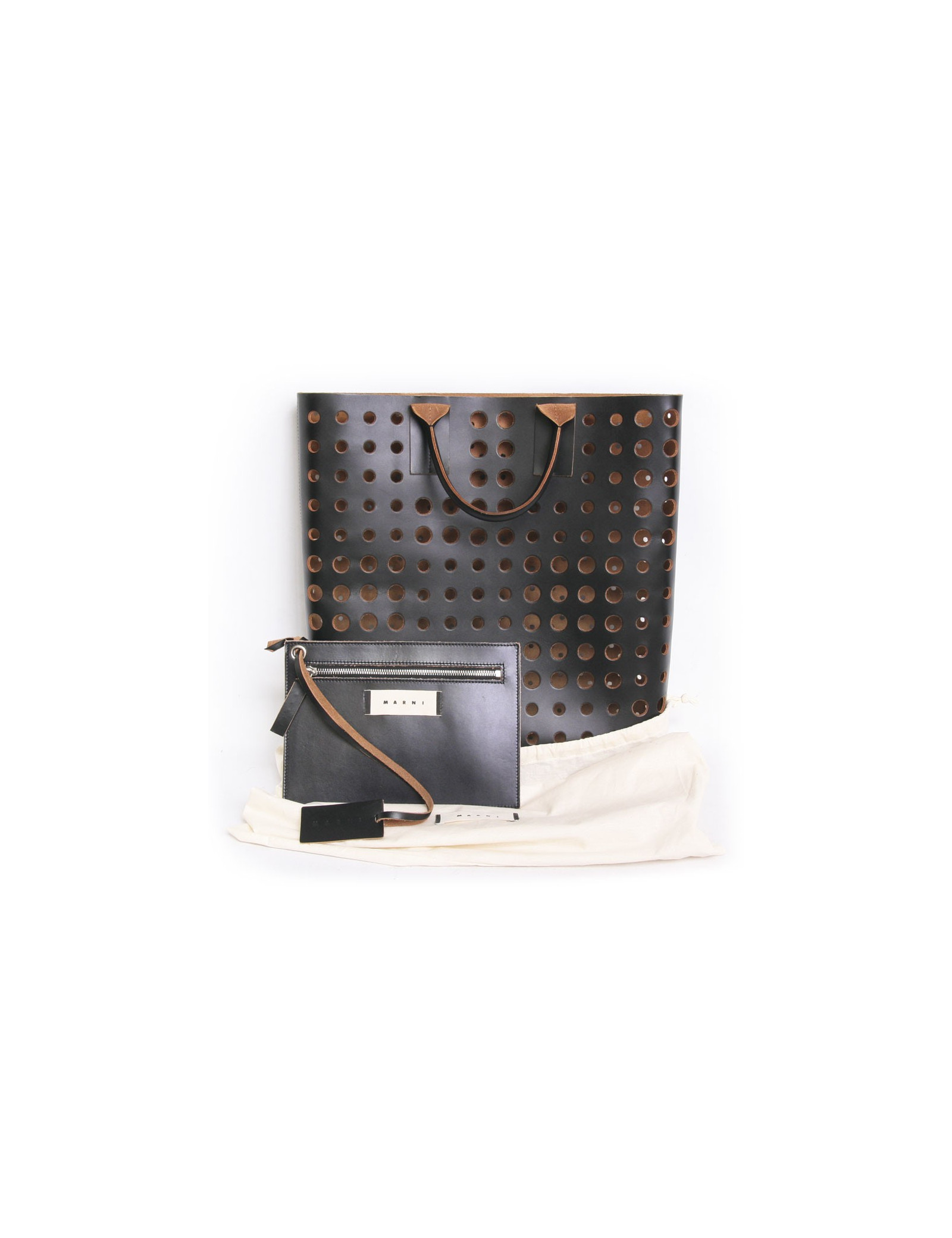 MARNI Tote Leather perforated black