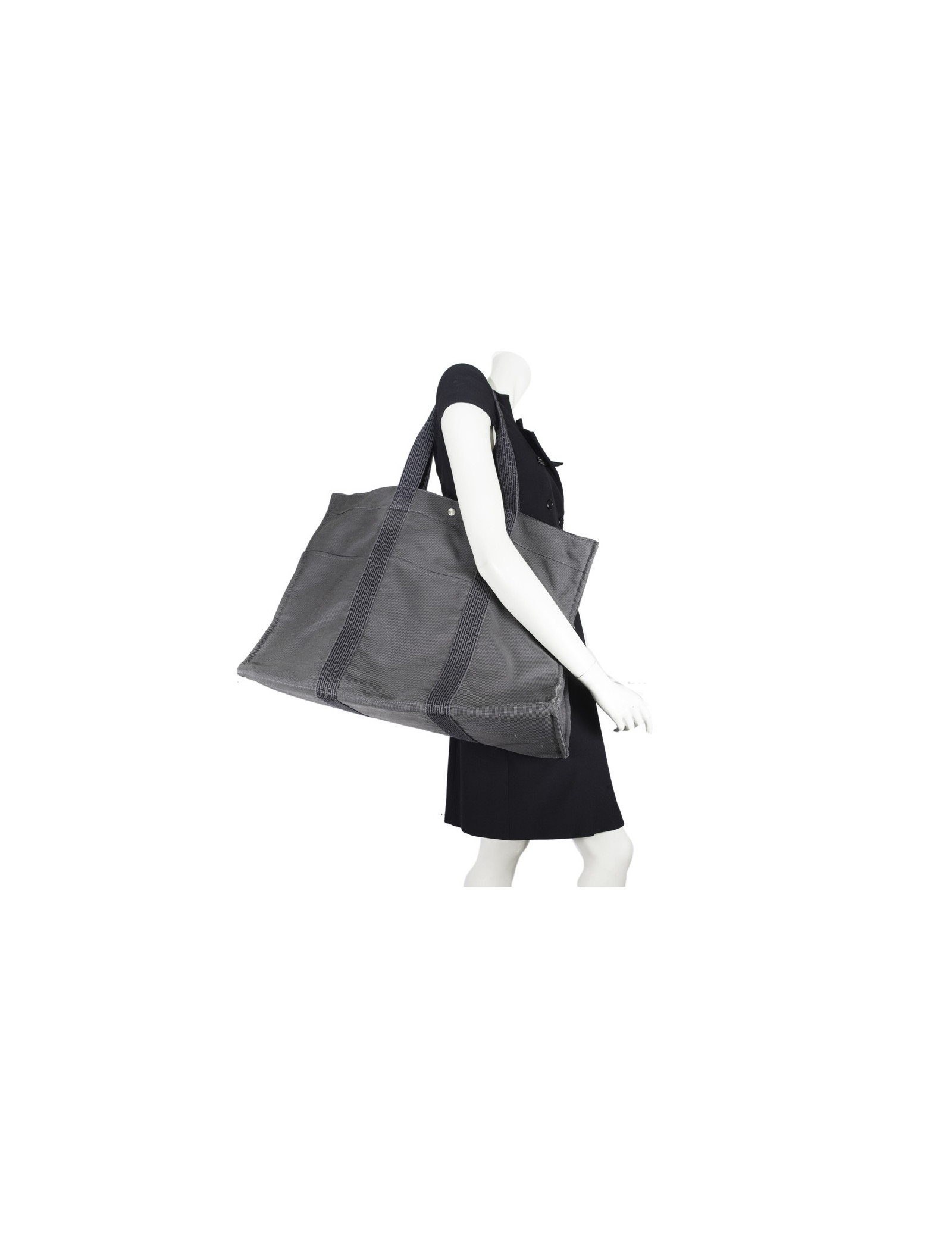 Ideal for a short break. Bag weekender of Hermès canvas gray. Button pressure and zip fastening. Inside, it features 4 plated pockets. 3 pockets on the front of the bag and back. In very good condition. Slight wear on the corners under the bag.
