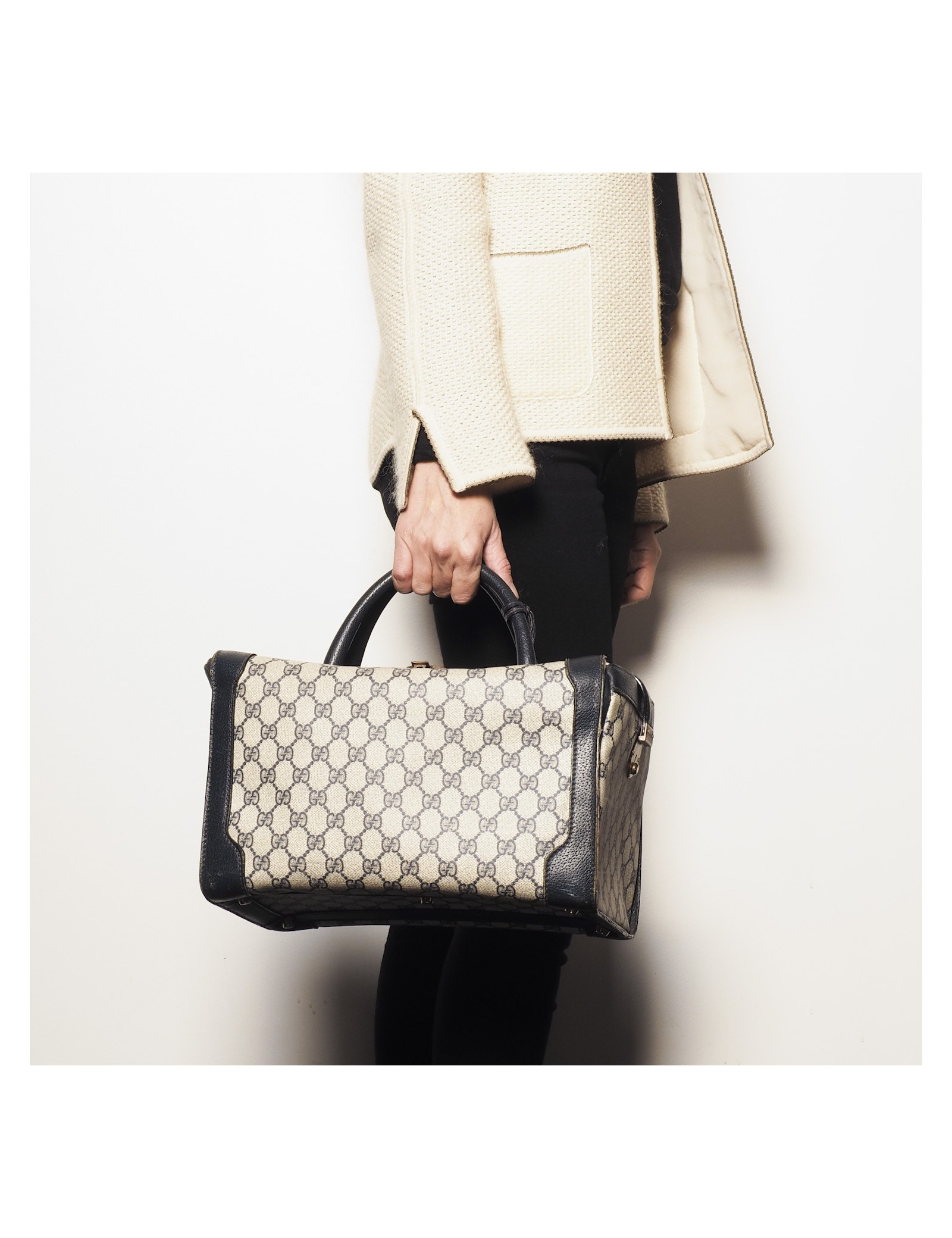 GUCCI Vintage vanity in blue canvas and leather