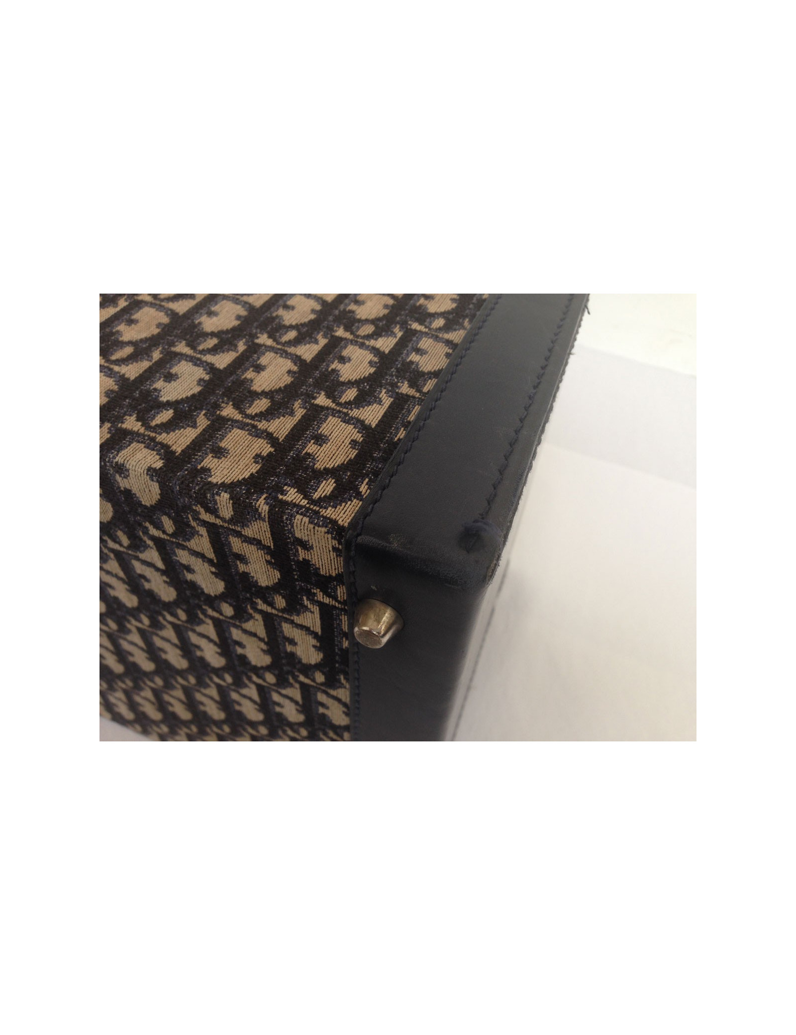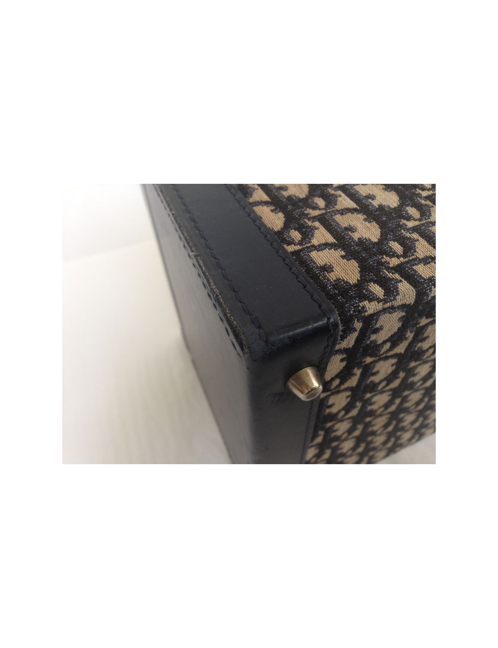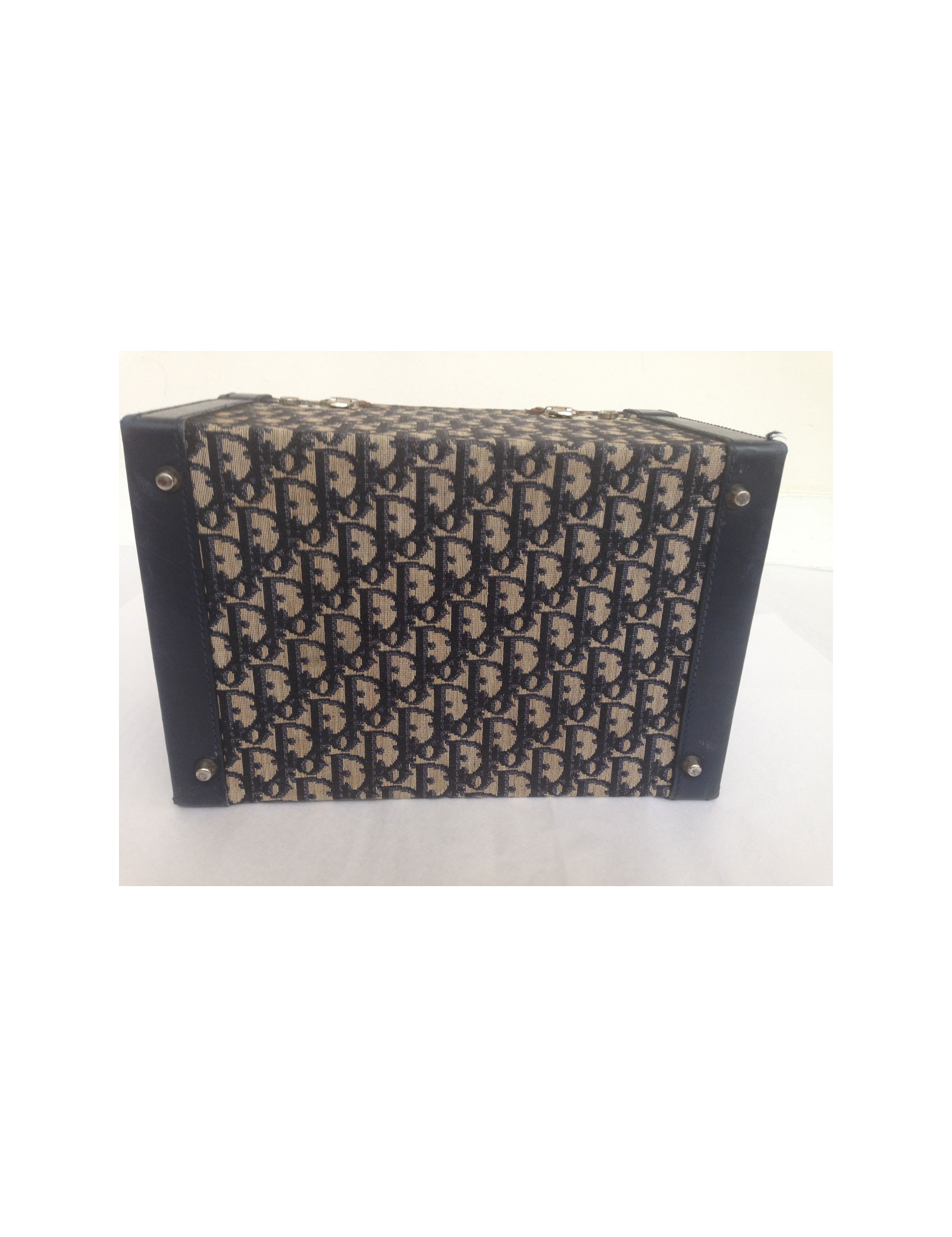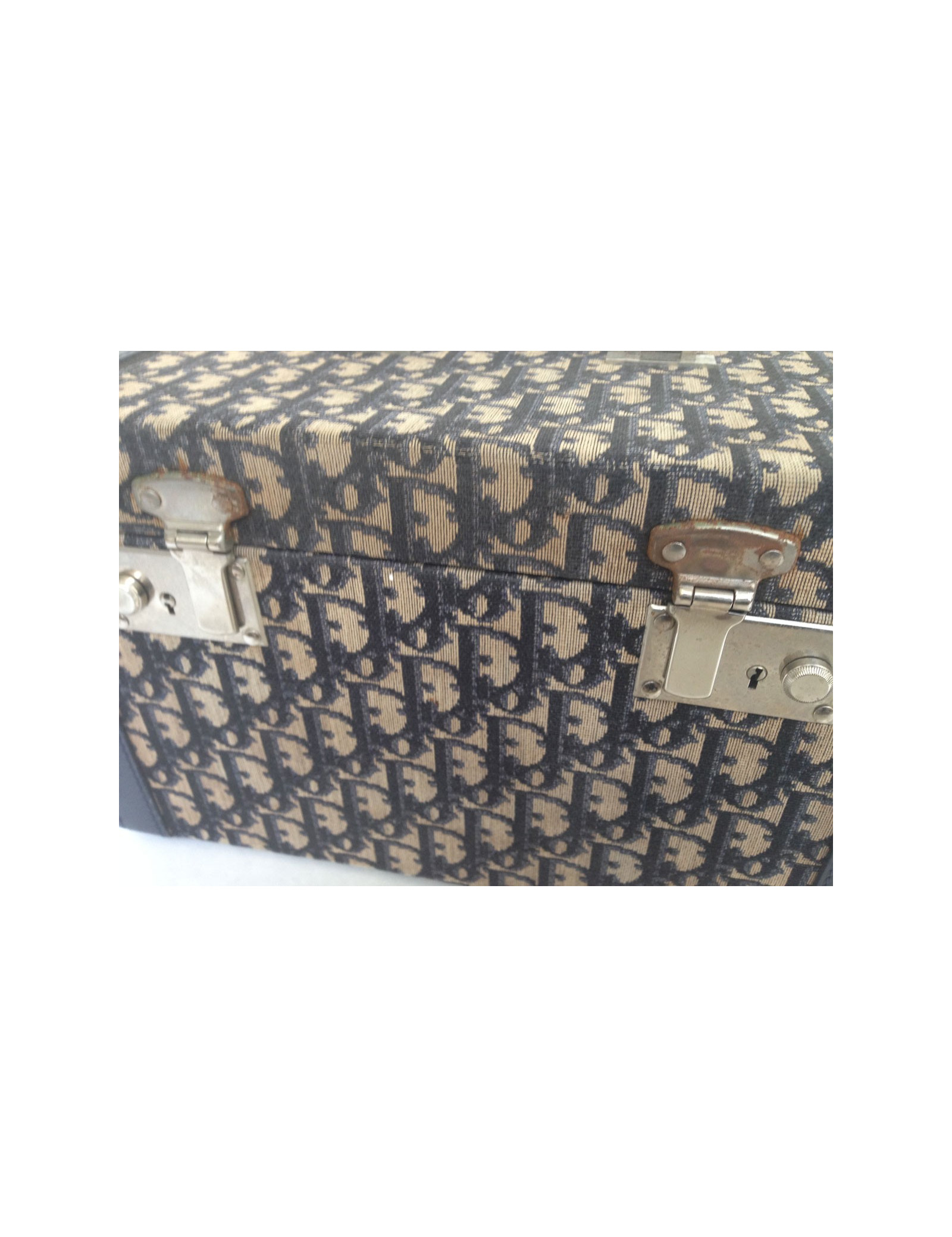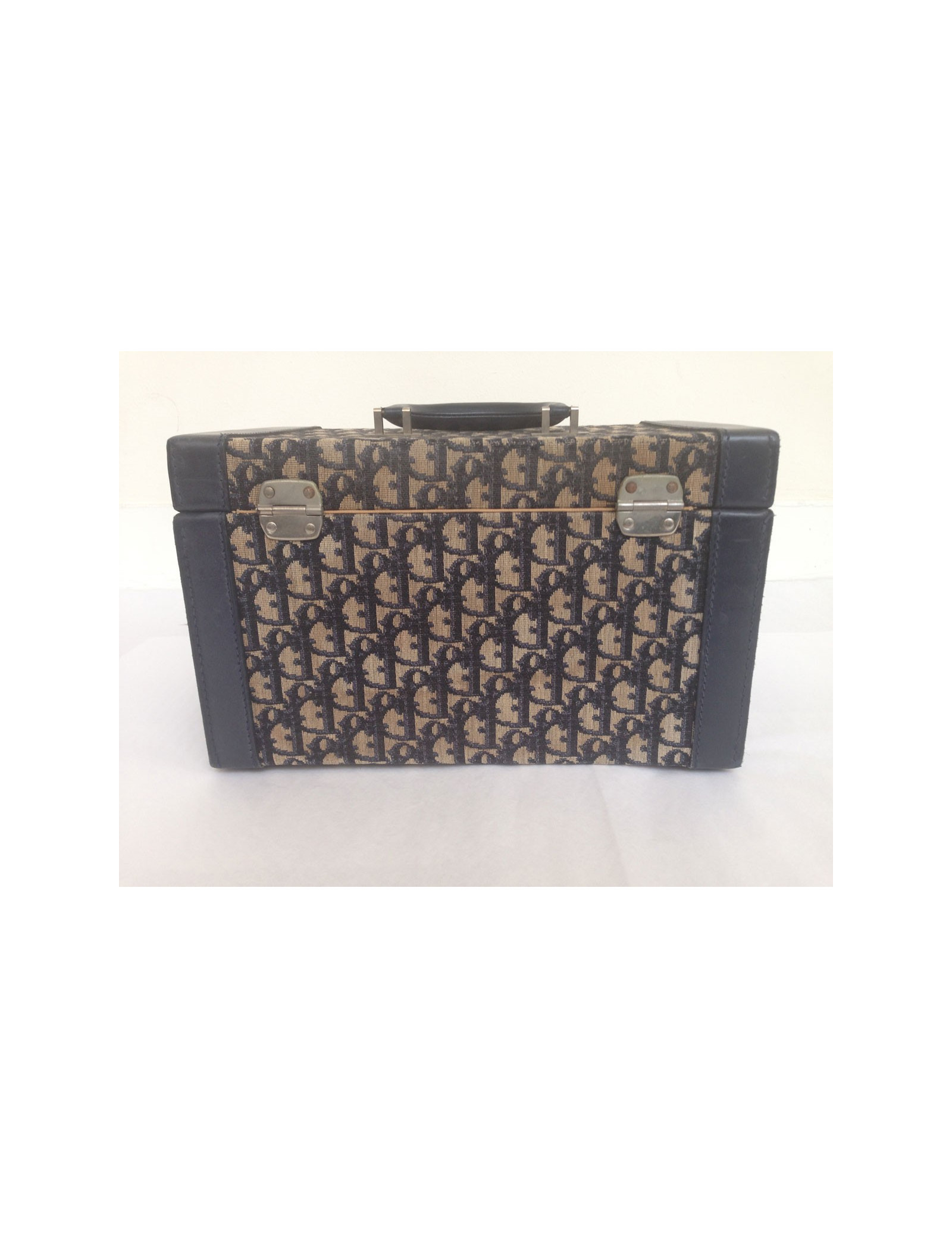 Lovely vanity case Dior vintage monogram Dior Navy Blue and off-white. A few traces of wear to report: at the level of closures, silver metal parts are rusted patchy, the bottom corners are a bit worn (see photos) The general State of the vanity, in view of his age, is quite good. The Interior is well preserved and is in a coated fabric with a waterproof film. A mirror and many pockets is. 2 keys and a Bell are supplied with this vanity. Length: 31 cm, Height: 18.7 cm, Width: 20.4 cm
