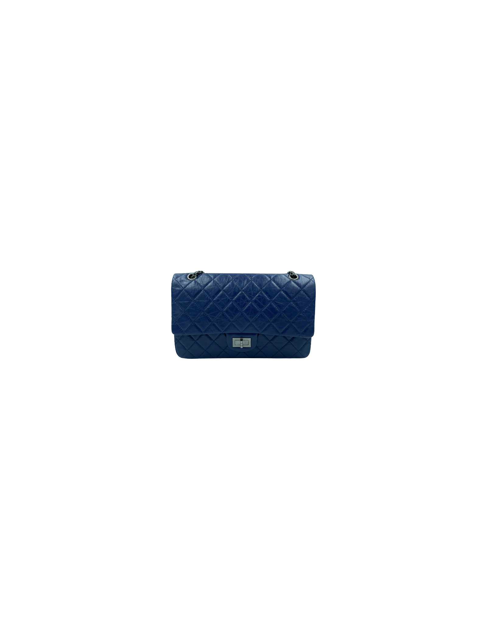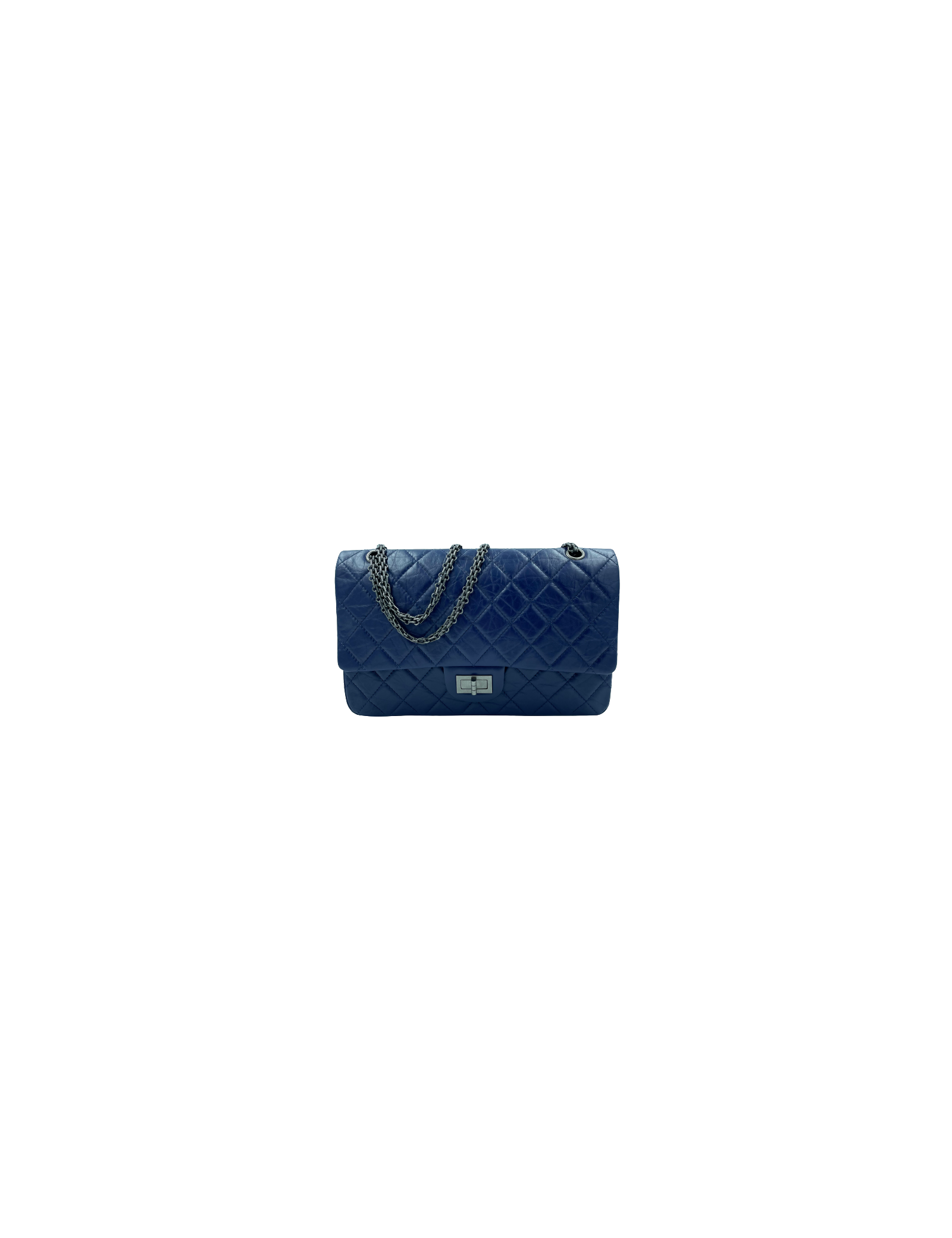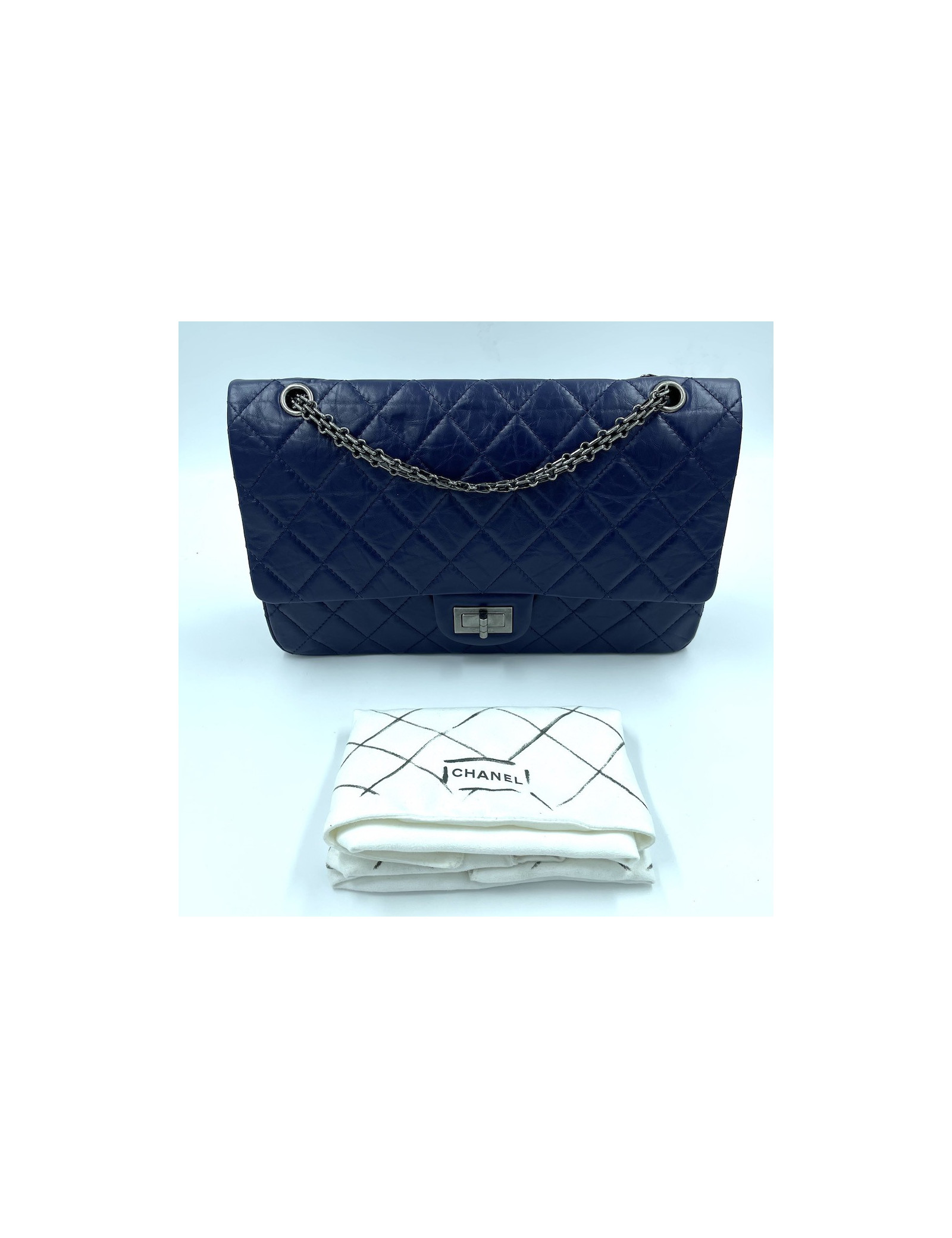 Pensé en Février 1955, ce sac à depuis été réinventé à chaque saison en différentes tailles, couleurs et matières. Ce sac Chanel est en cuir froissé encre et a une bijouterie en métal argent vieilli. Il est très bon état, pratiquement jamais servi.