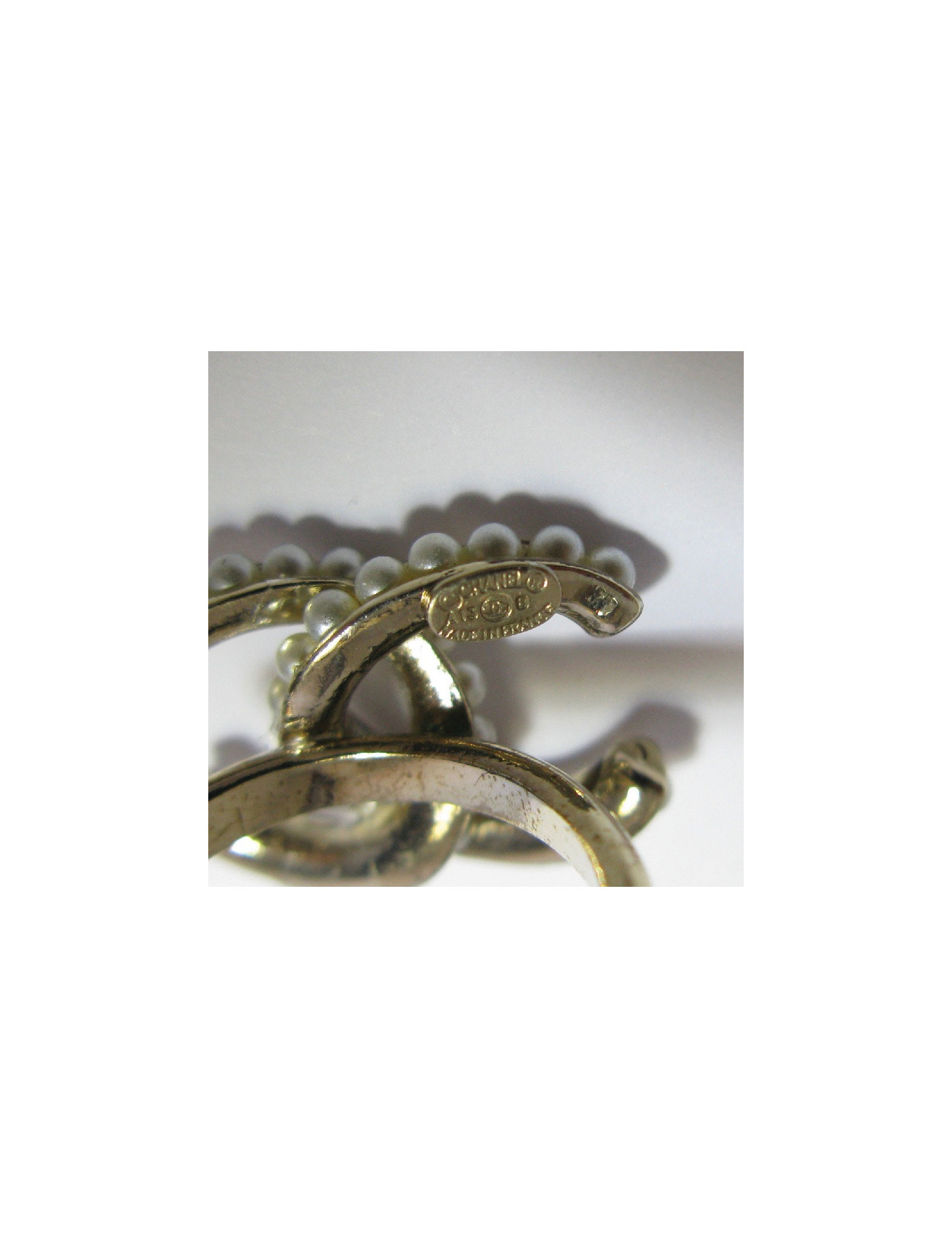 Bague Chanel CC en métal doré serti de perles nacrées.