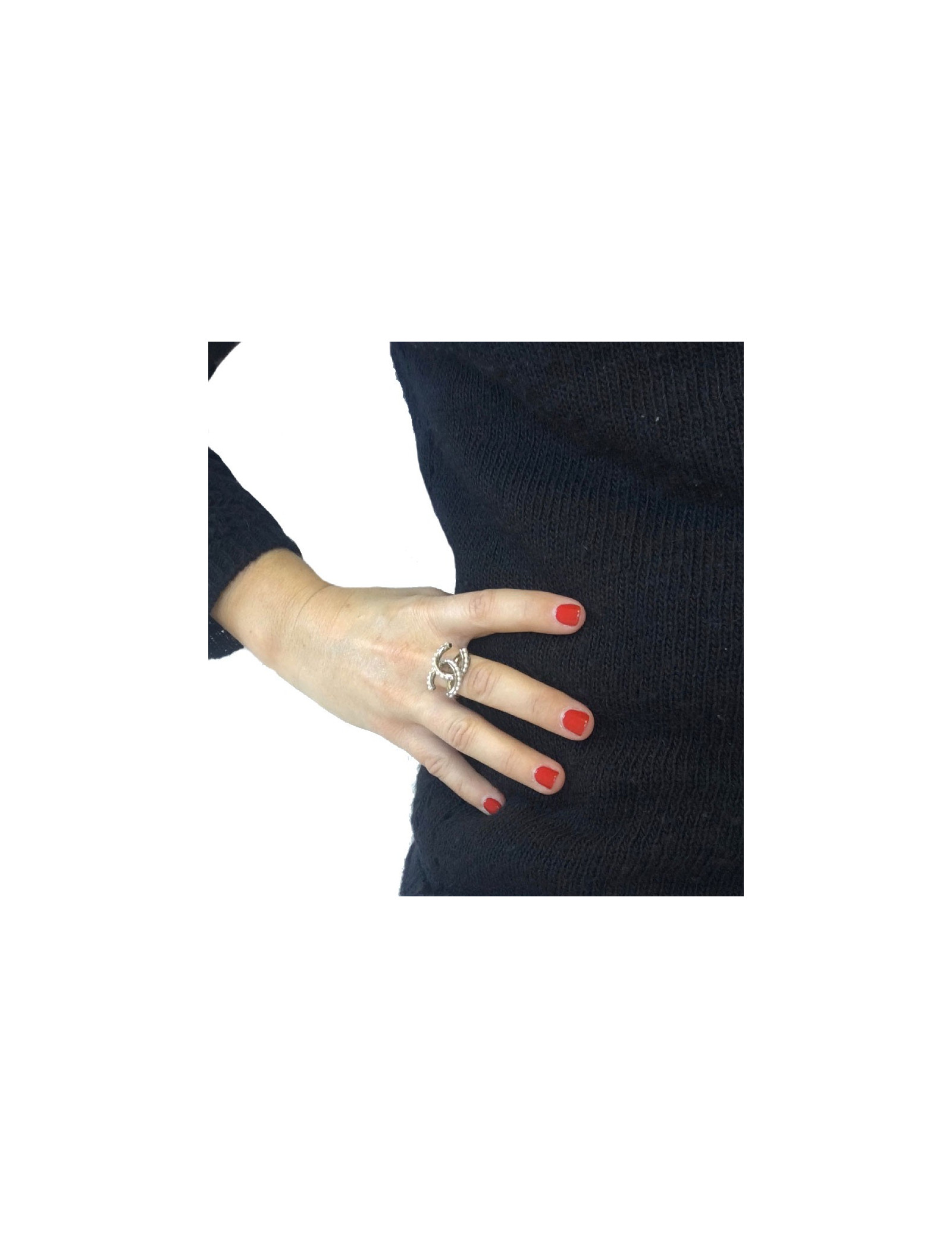 Bague CHANEL CC T55 en métal doré et perles nacrées