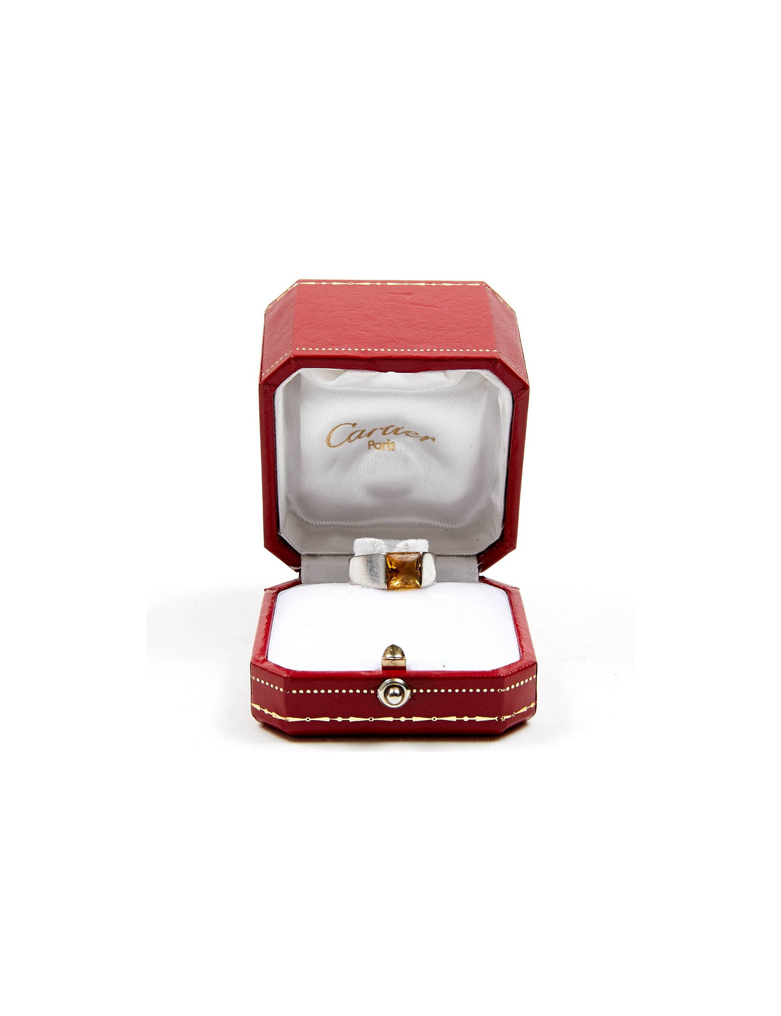Grand classique de la Maison Cartier, cette bague est en or blanc 18 carats et pierre cabochon en citrine. Elle date de 1997;
