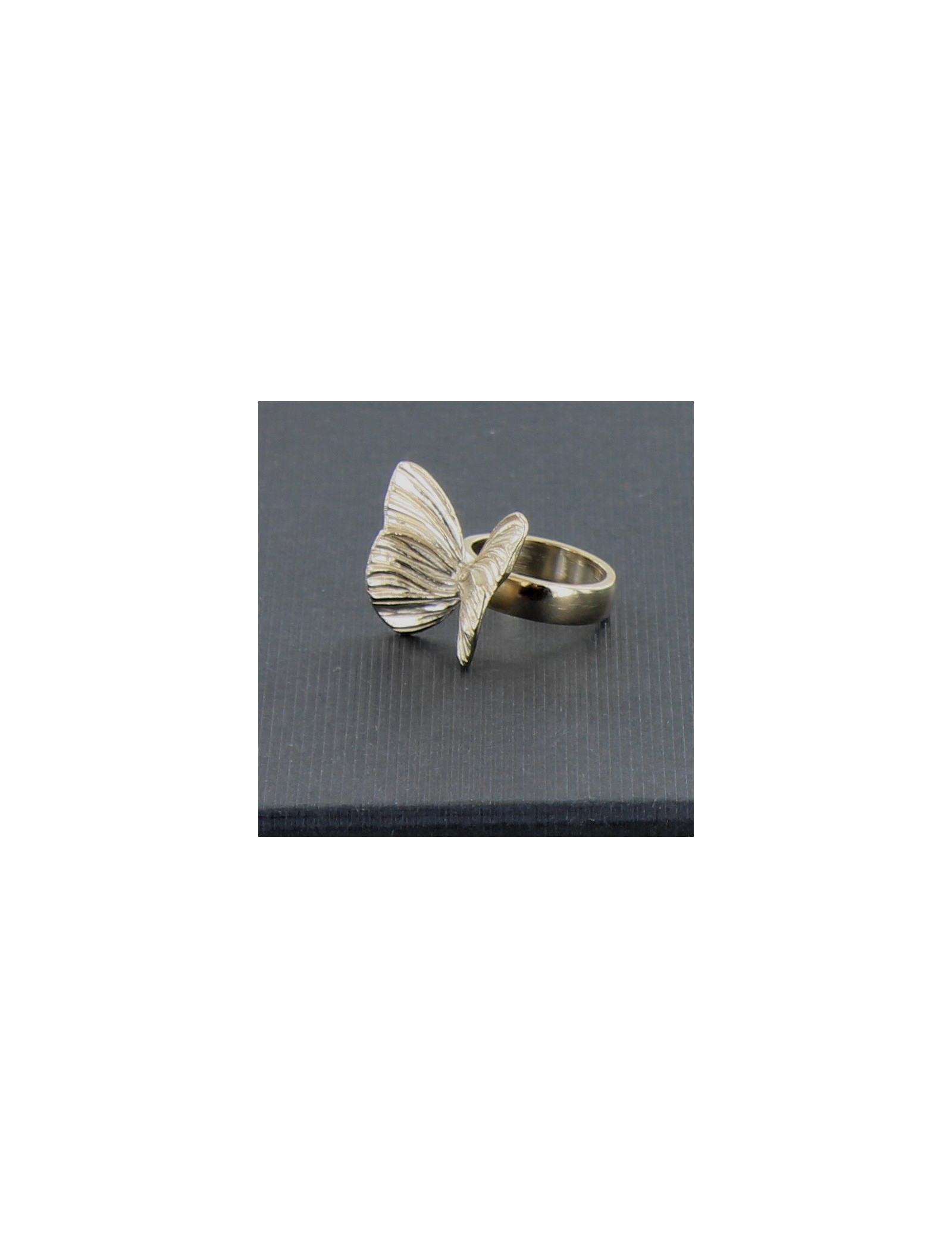 Jolie bague Chloé, surmontée d'un papillon doré à l'or fin en taille 53. Jamais portée, elle apporte de la légèreté à votre main.