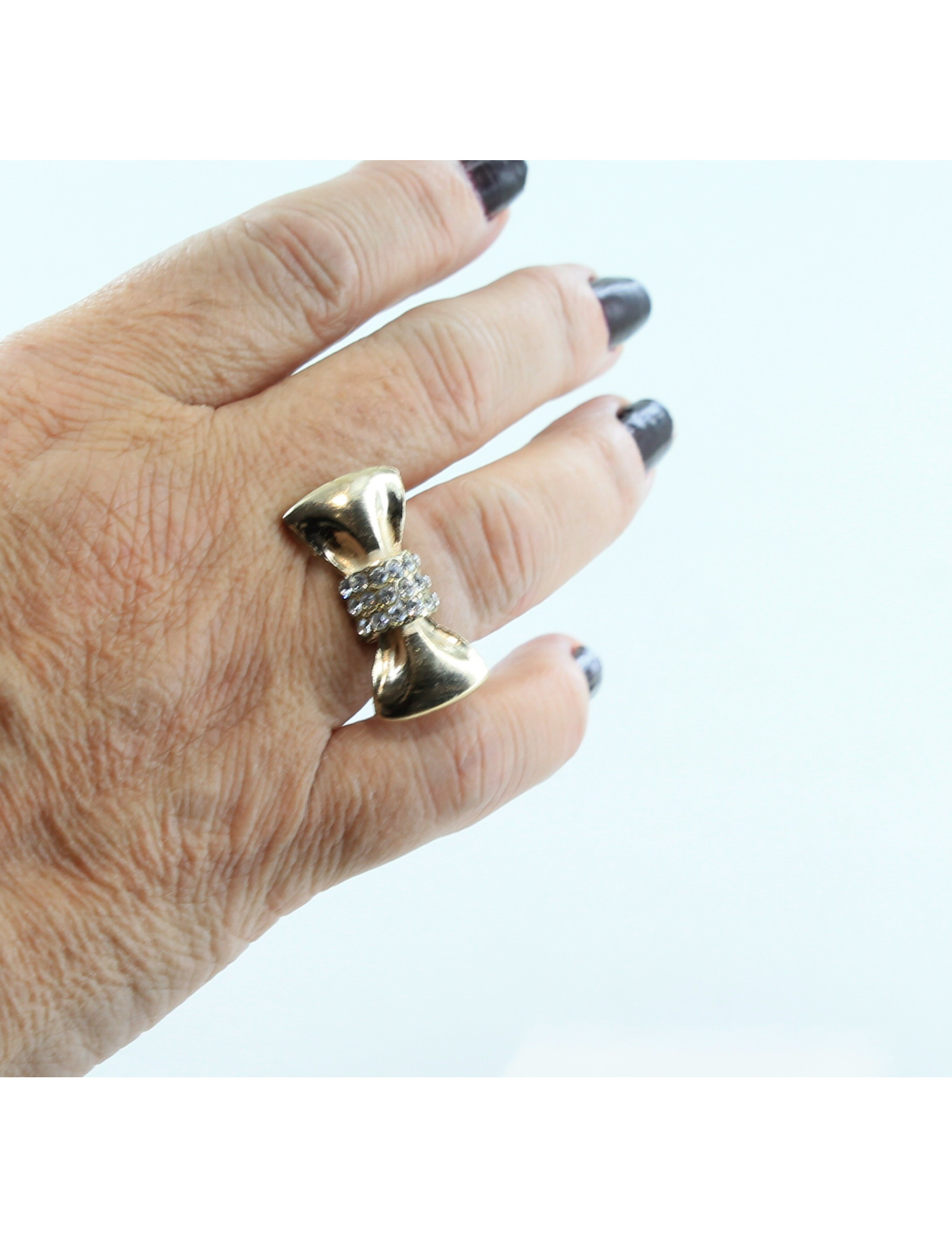 Bague Chloé, surmontée d'un noeud entouré de brillants, en métal doré.