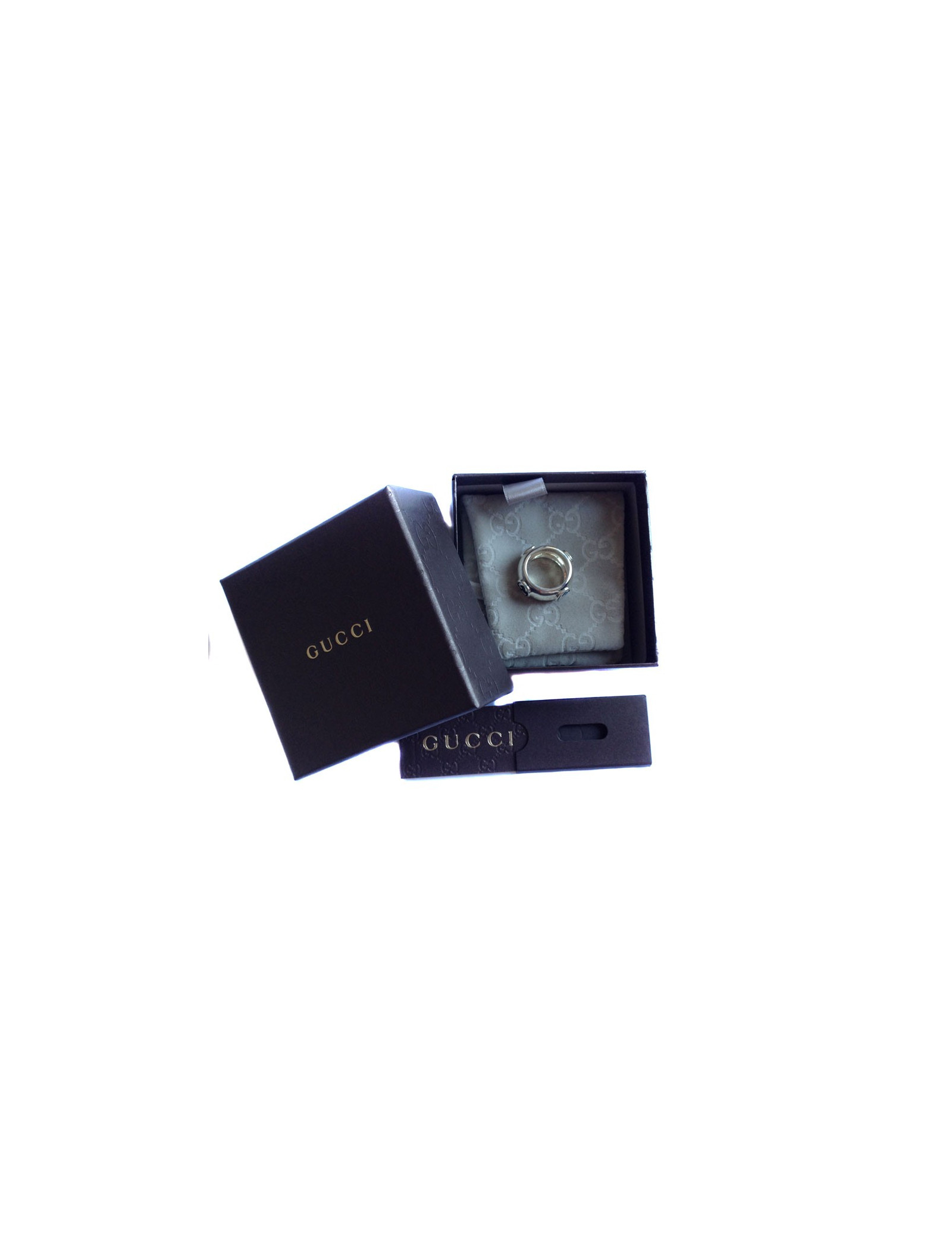 Très jolie bague Gucci, en argent 925 ornée de logos "GG" sur chaque face. En très bon état.