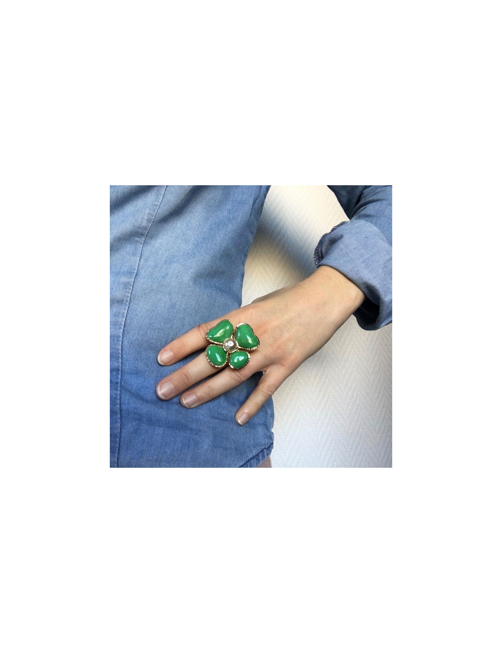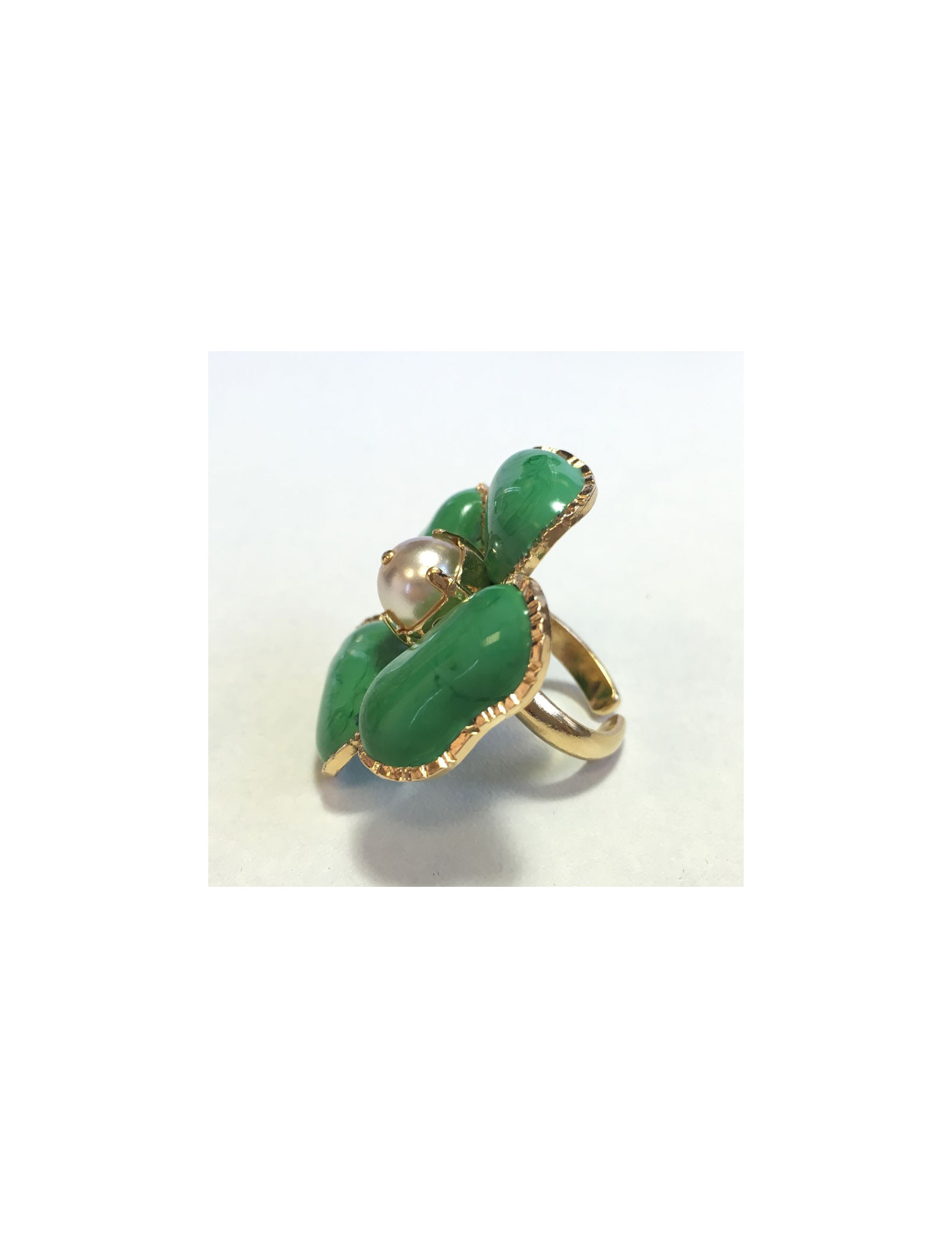Bague MARGUERITE de VALOIS trèfle à 4 feuilles en pâte de verre verte
