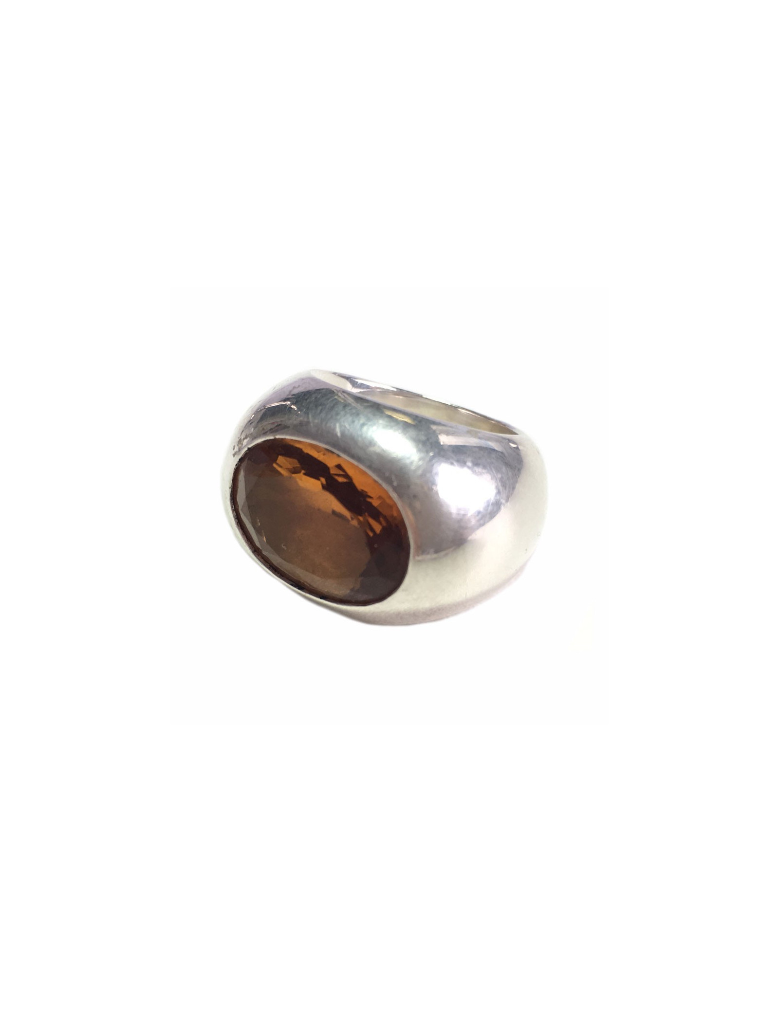 Bague Anonyme en argent massif taille 53 pierre couleur ambre. En très bon état malgré des micros rayures sur l'ensemble de la bague. Infime éclat sur la pierre.