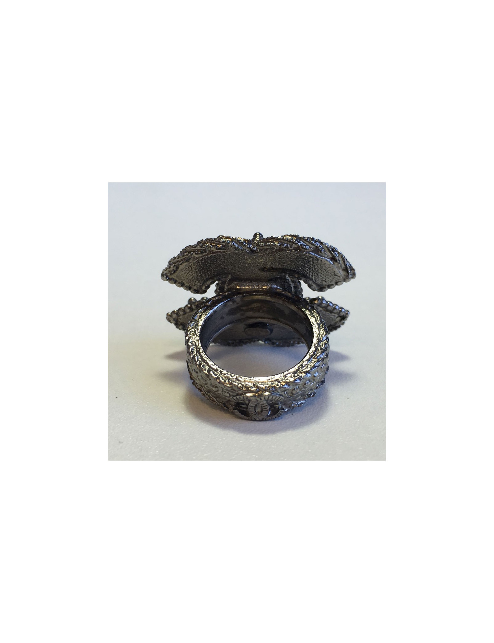 Bague CHANEL en ruthénium et petites perles nacrées taille 53