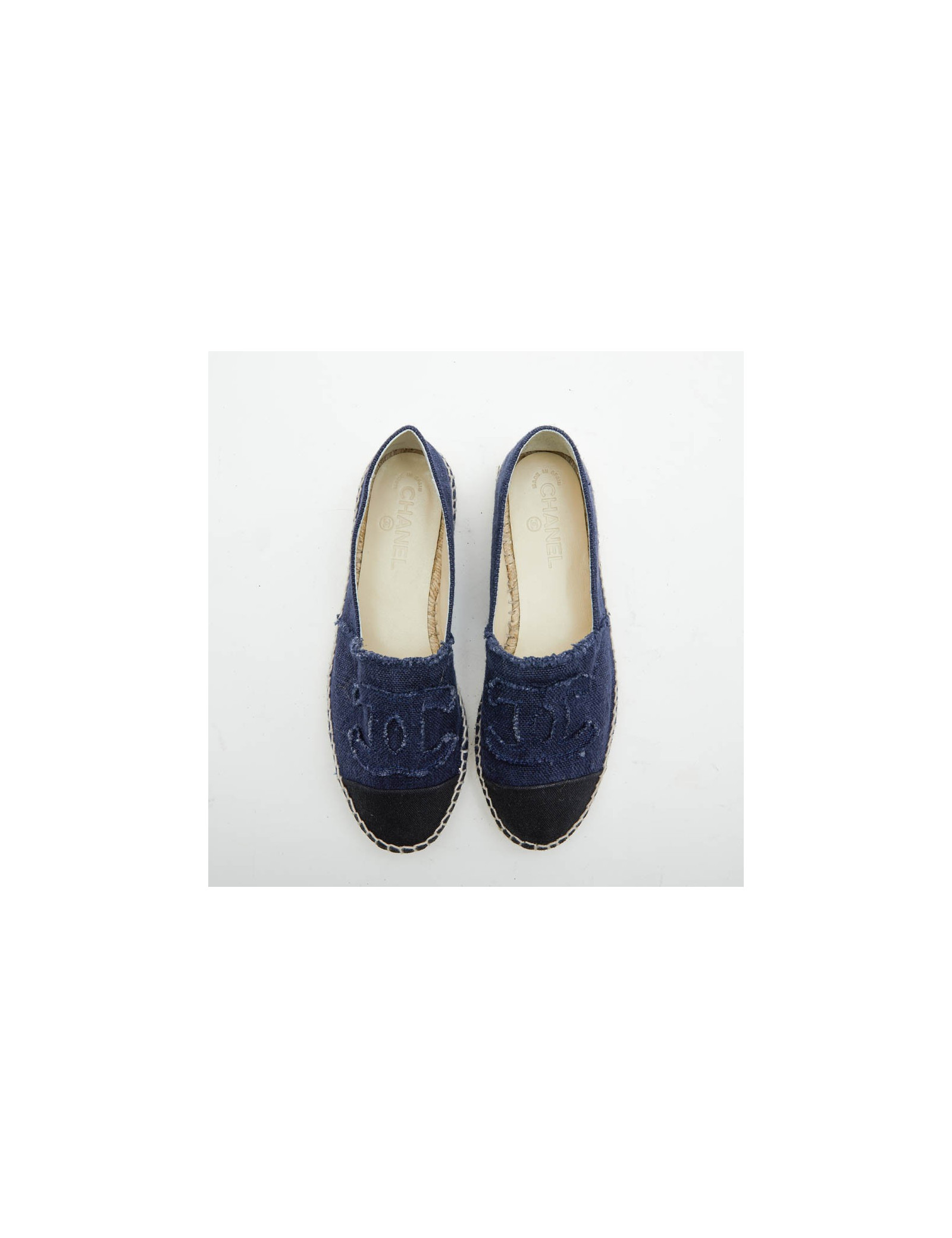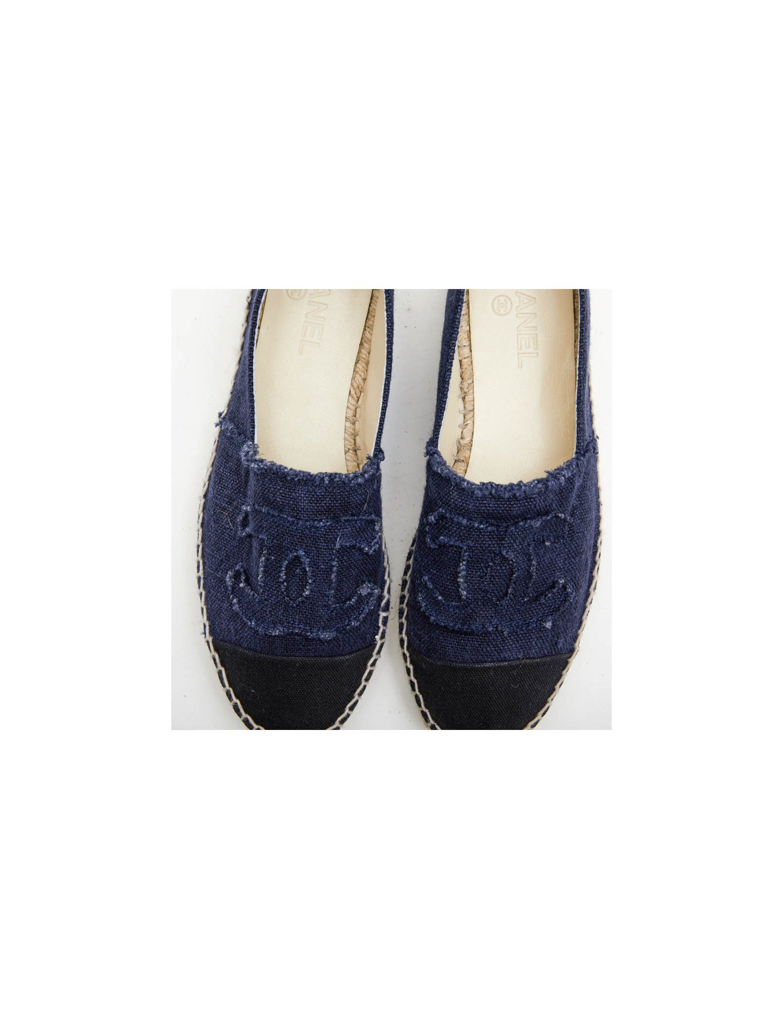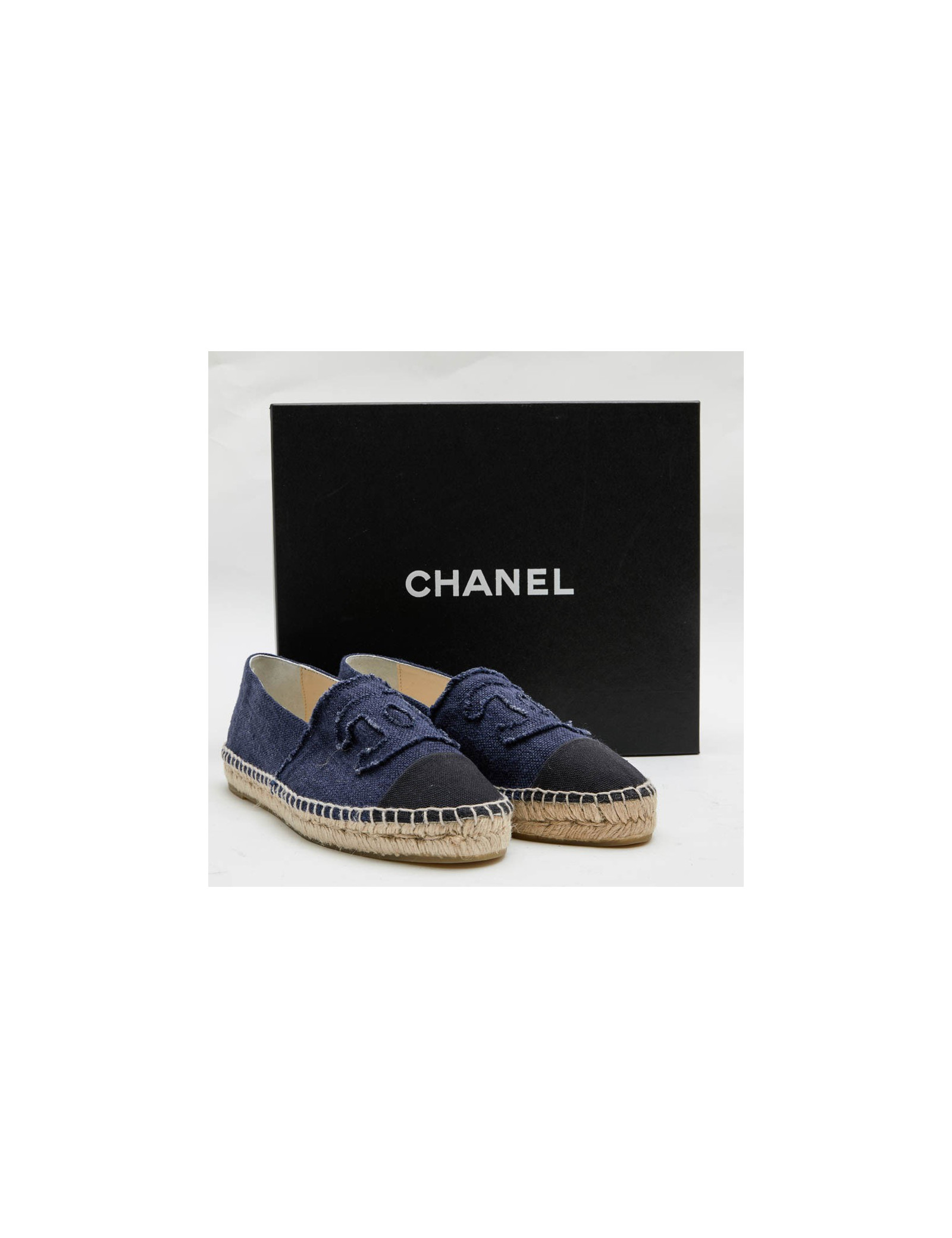 Espadrilles CHANEL T40 en denim bicolore bleu et noir