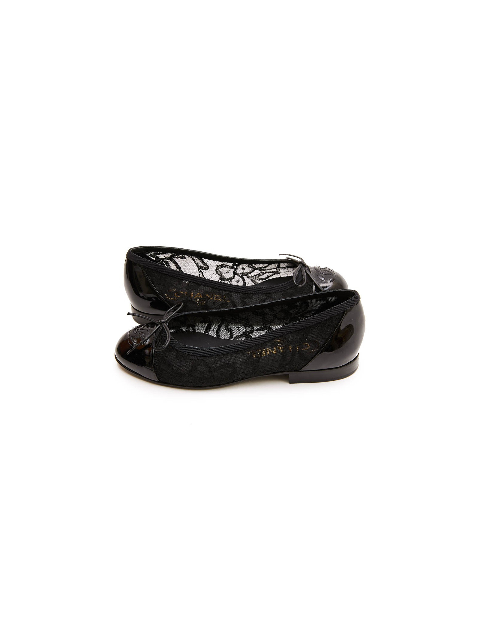 Ballerines T 34 CHANEL en dentelle et cuir noir