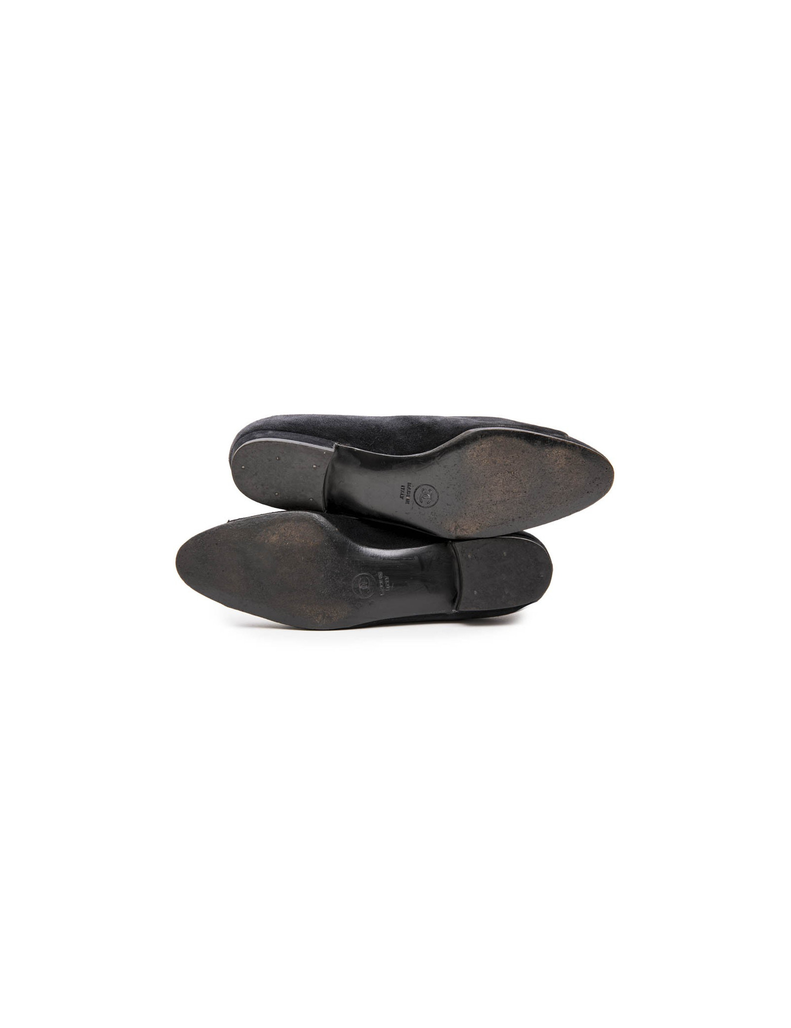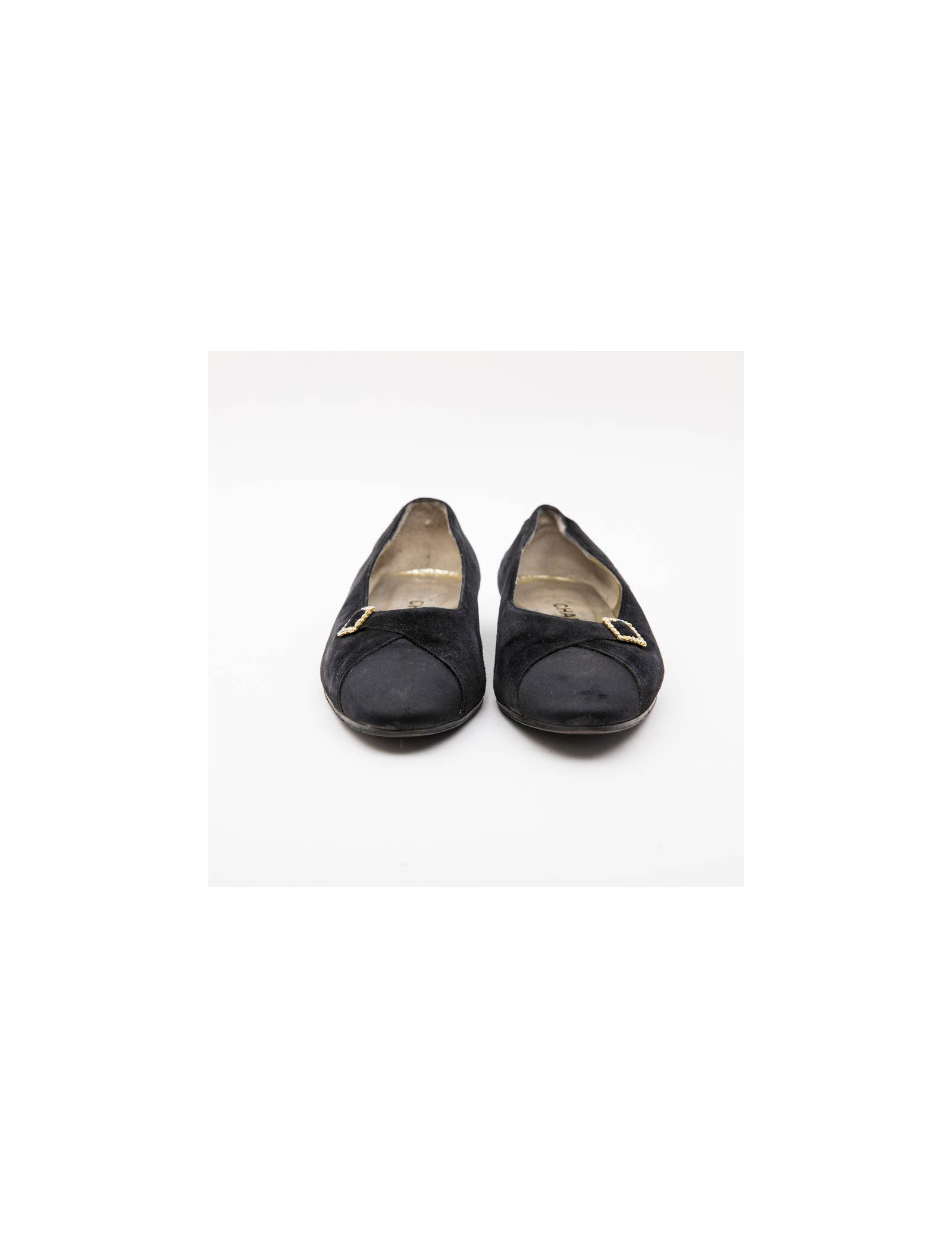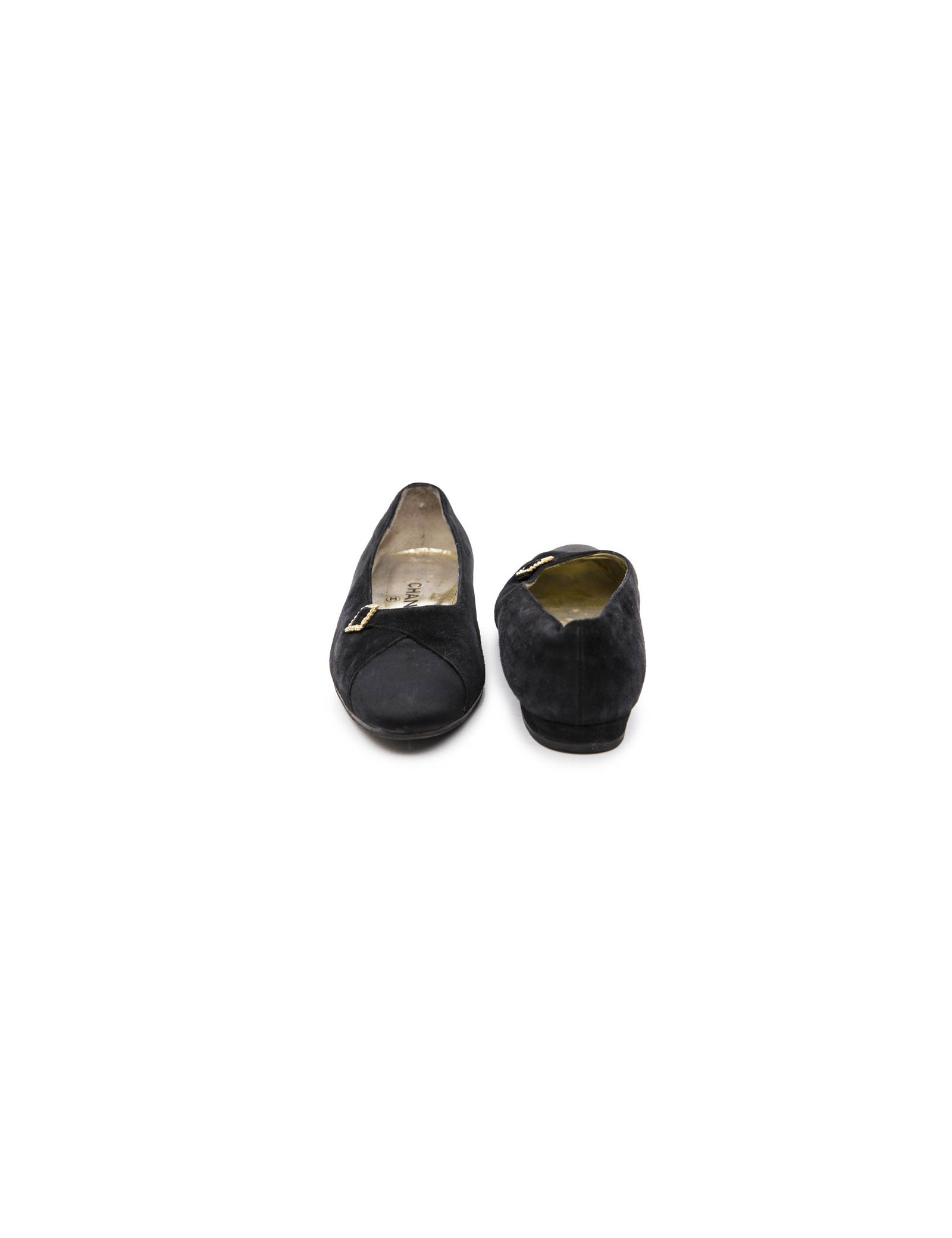 Ballerines Couture Chanel en veau velours et satin bleu marine . Taille 39.