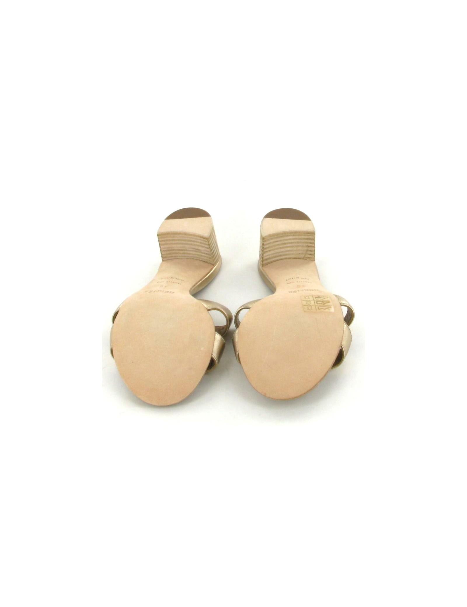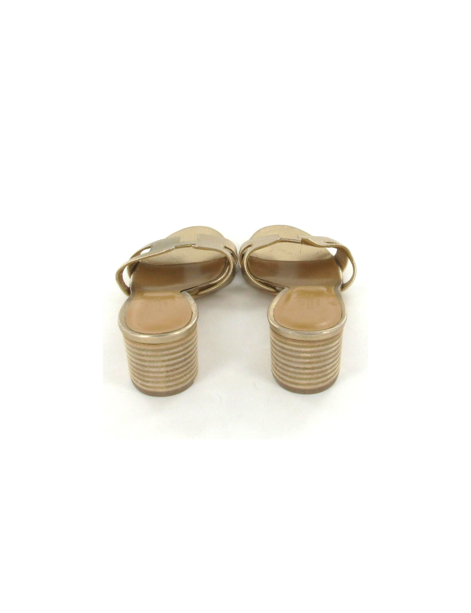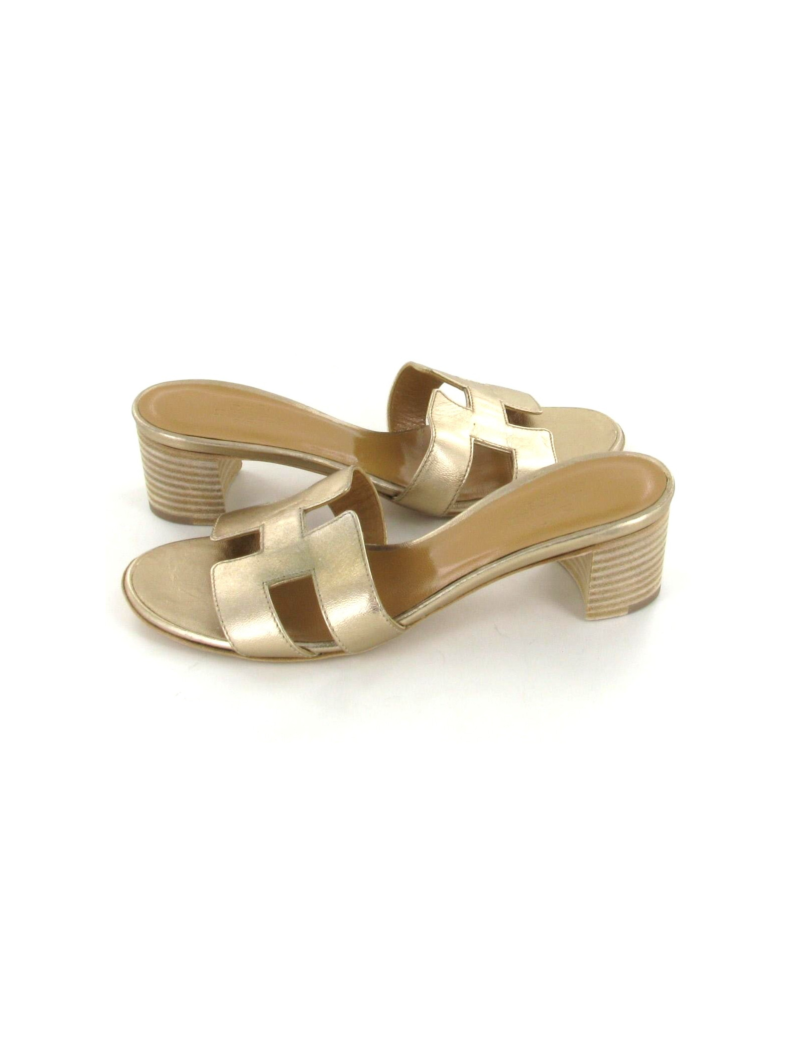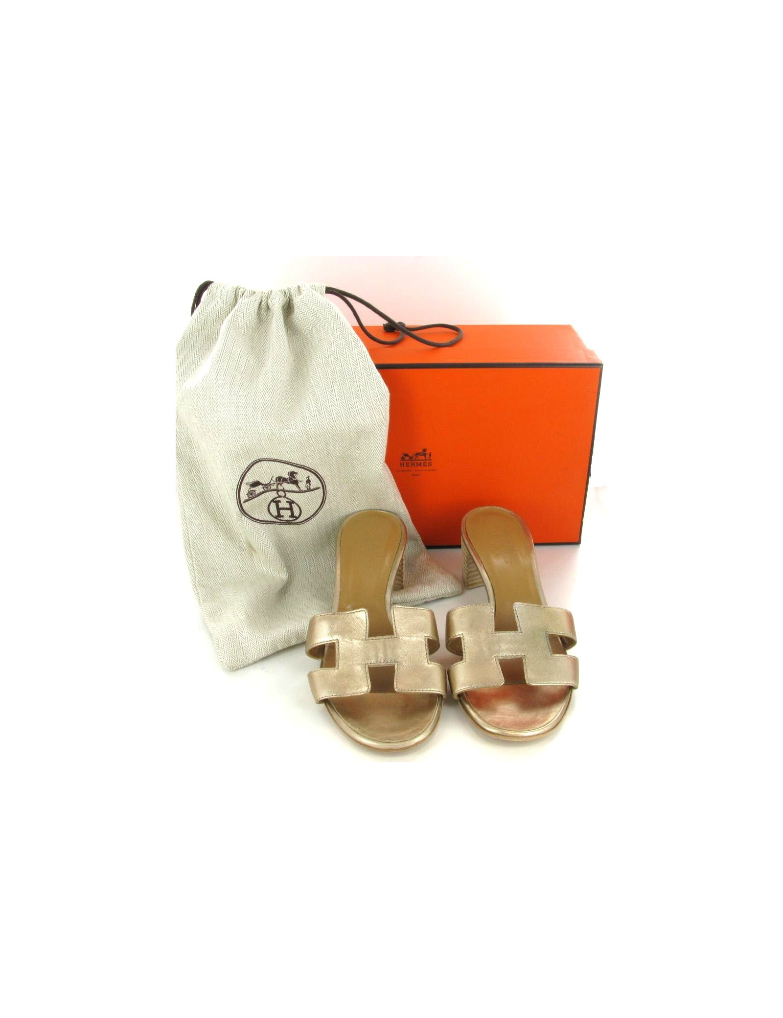 Sandales HERMES, modèle Oasis, taille 35, couleur dorée. Cette paire de sandales en cuir nappa, devenue un classique, est neuve. Semelles en cuir. Les sandales sont fournies dans leur dustbag et leur boîte d'origine.