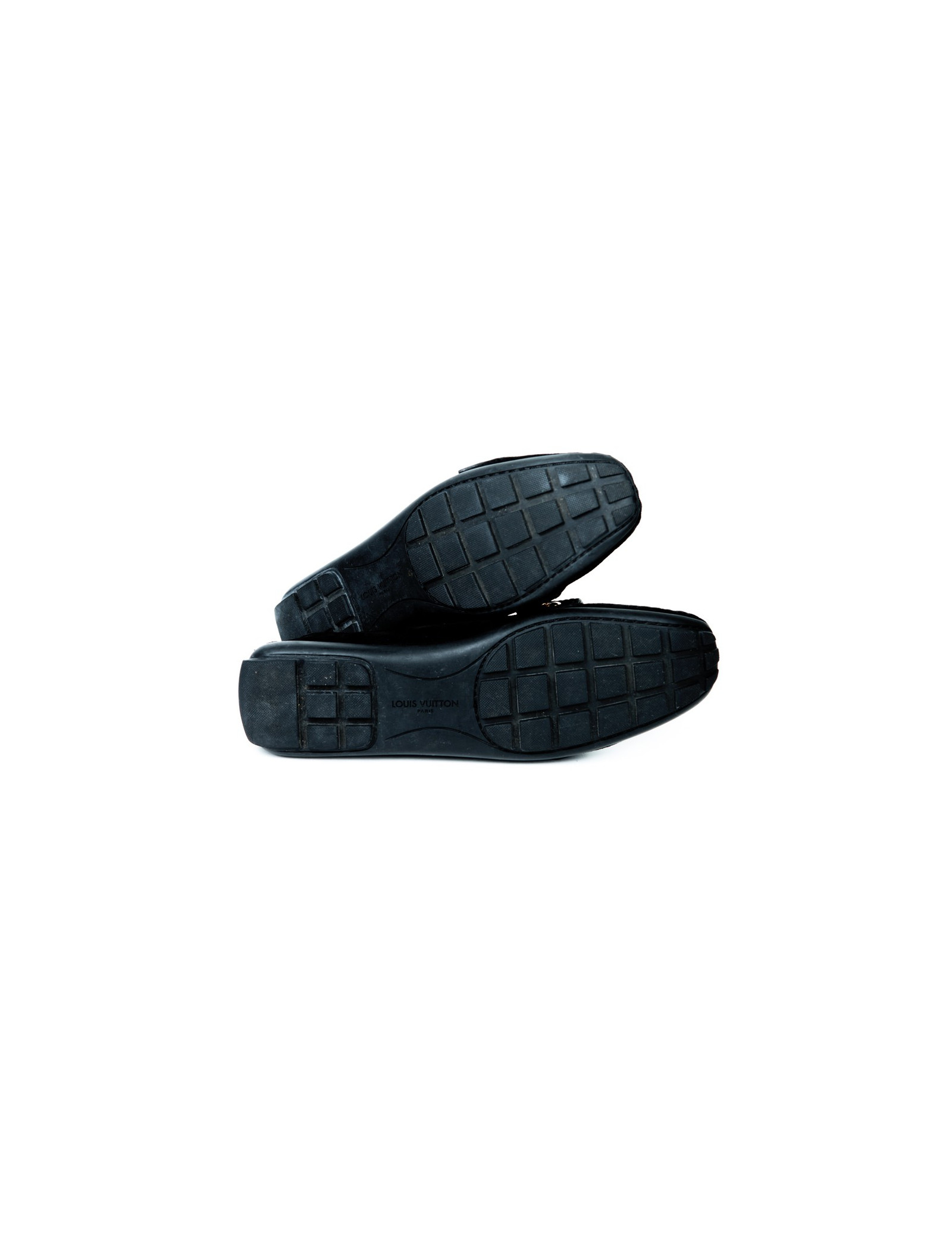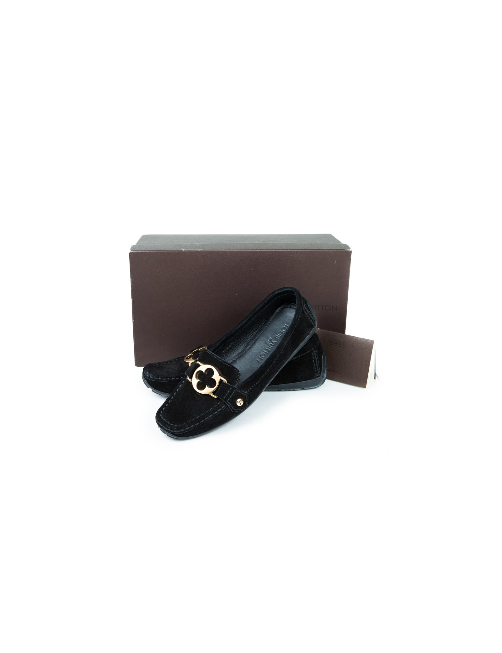 Très jolie paire de mocassins femme de la Maison Louis Vuitton en daim noir. Taille 37.