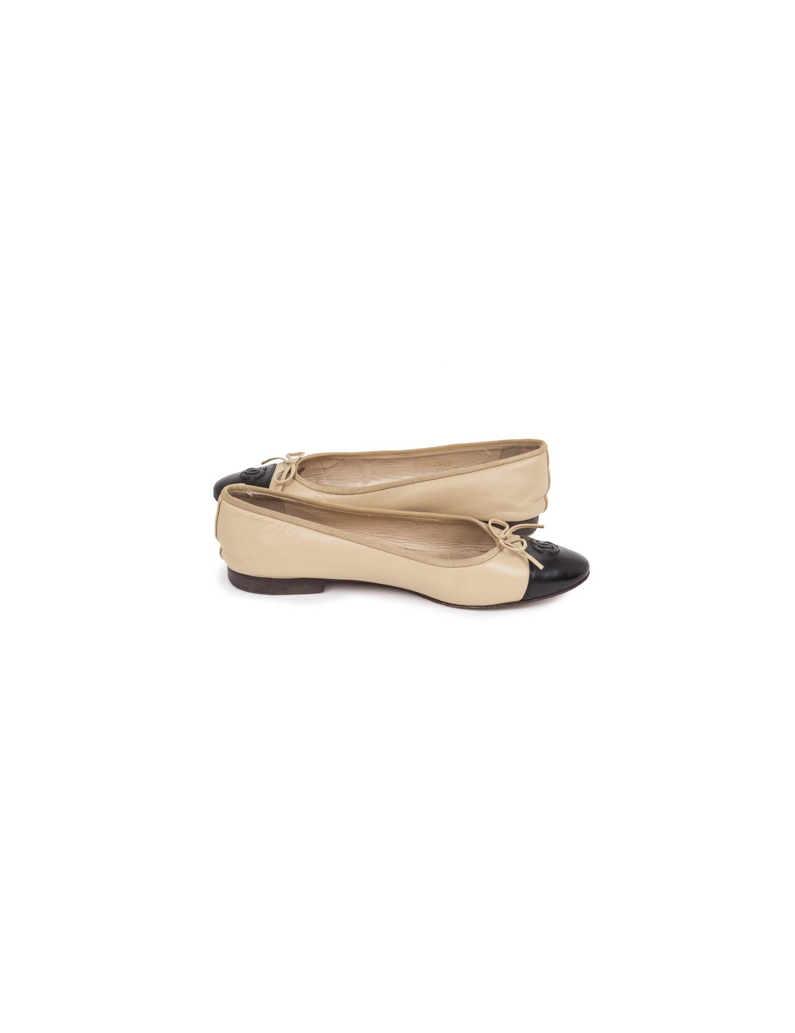Ballerines CHANEL t 38.5 cuir matelassé bicolores
