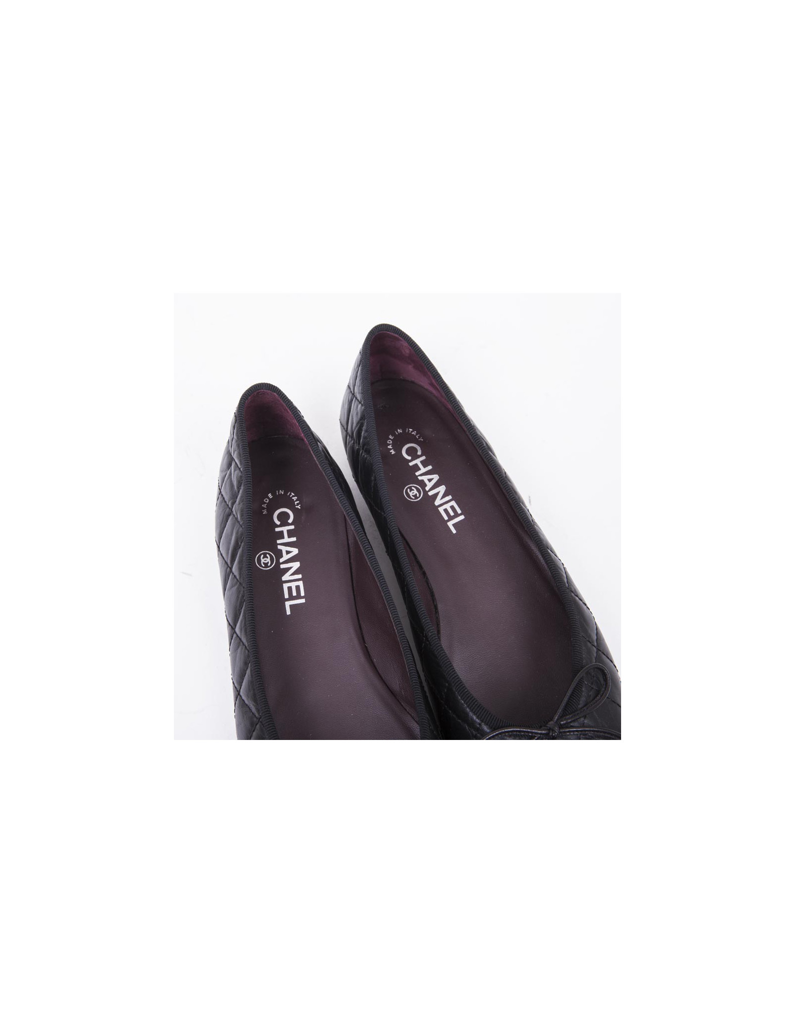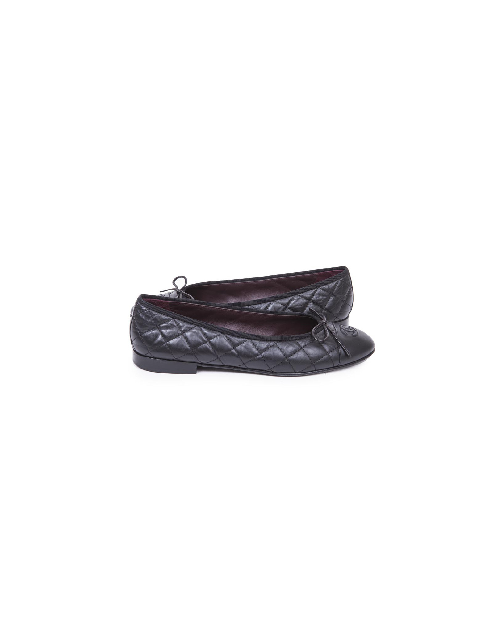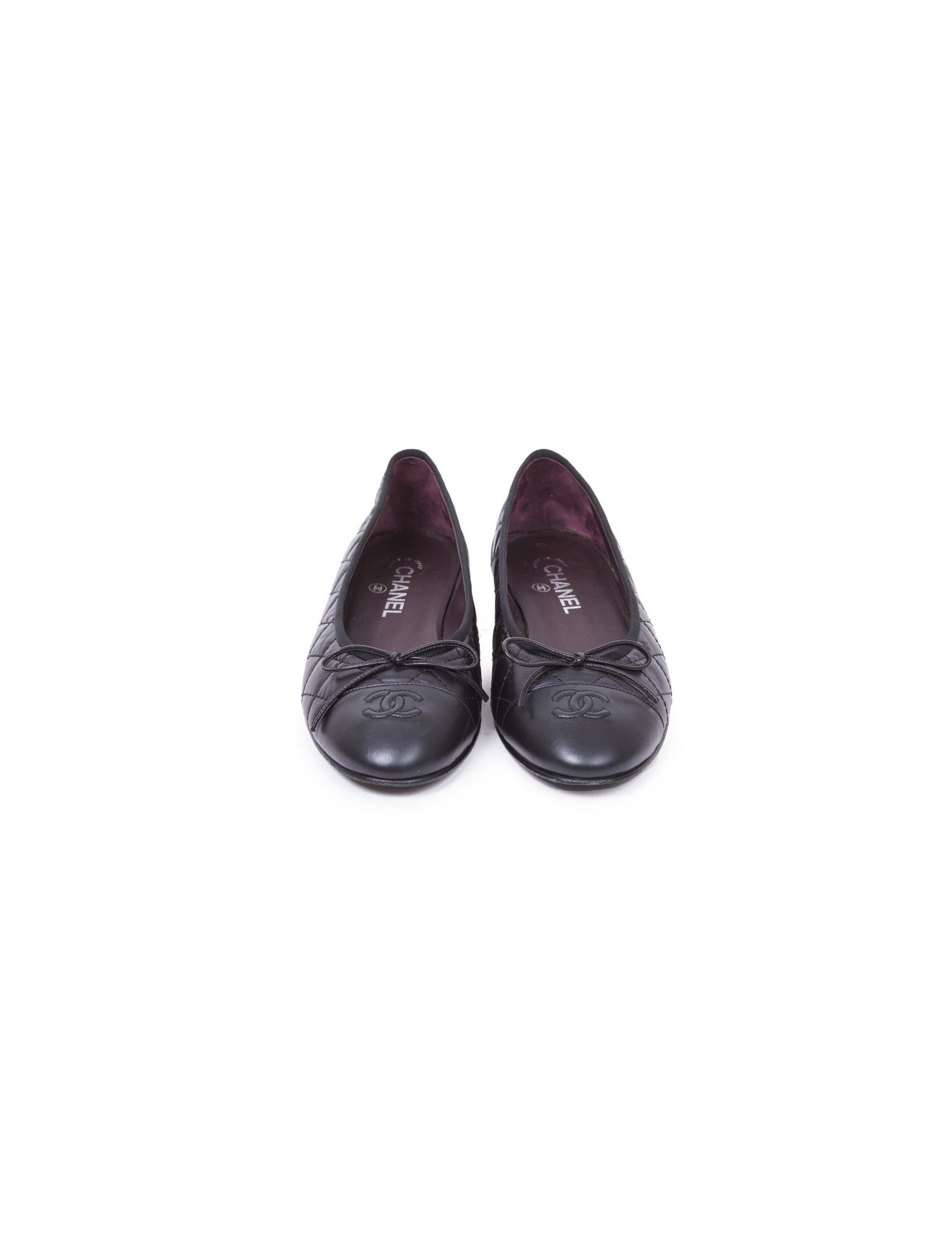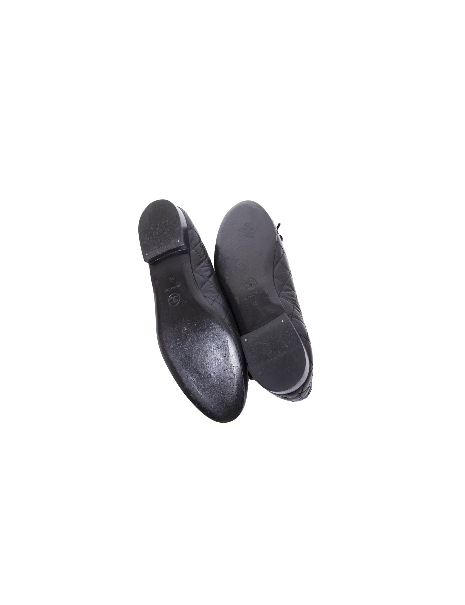 Ballerines CHANEL T 40 en cuir d'agneau noir matelassé
