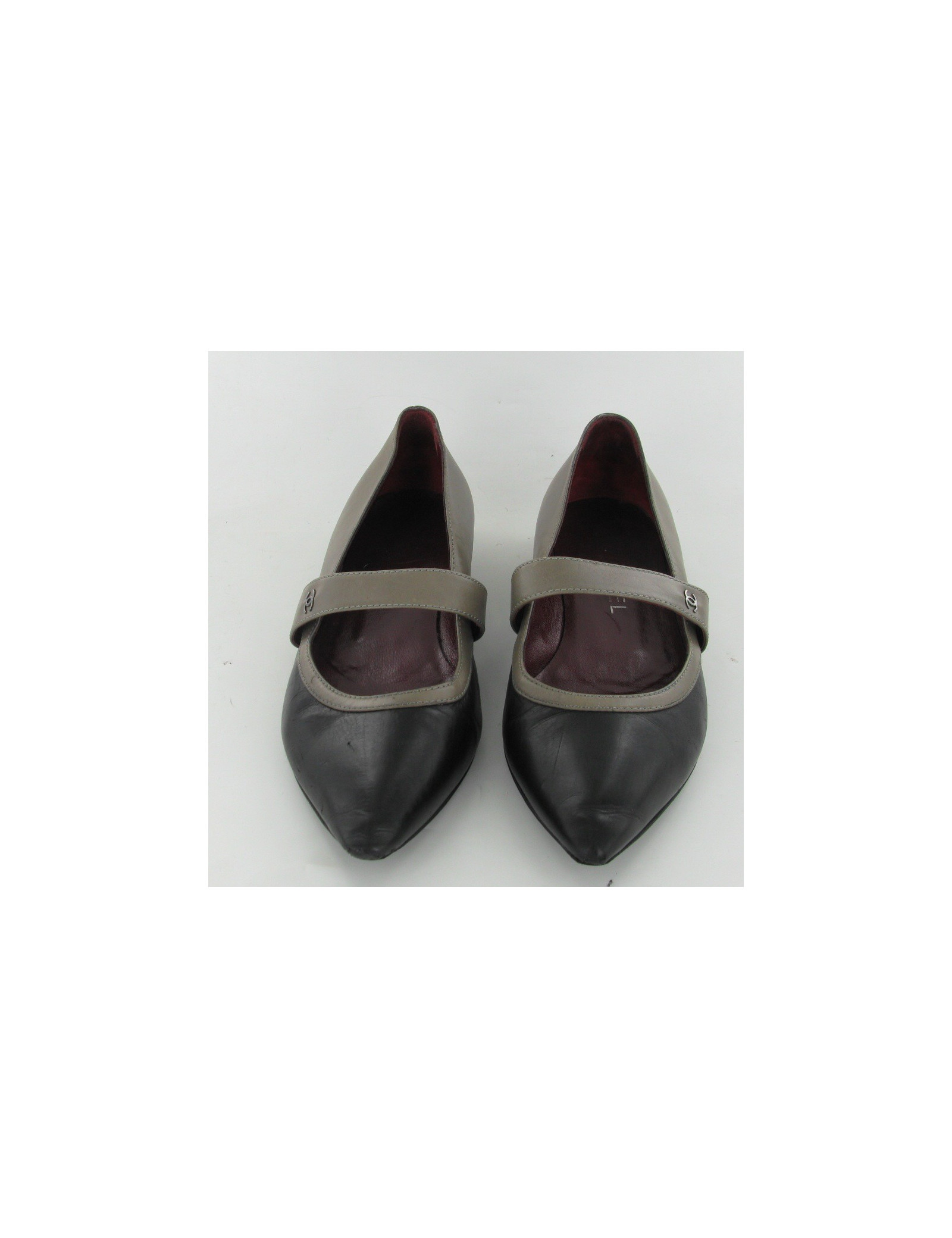 Jolie paire de ballerines CHANEL bicolores T38. On peut observer de légères traces d'usure à l'avant des chaussures. Elles sont en cuir taupe et noir
