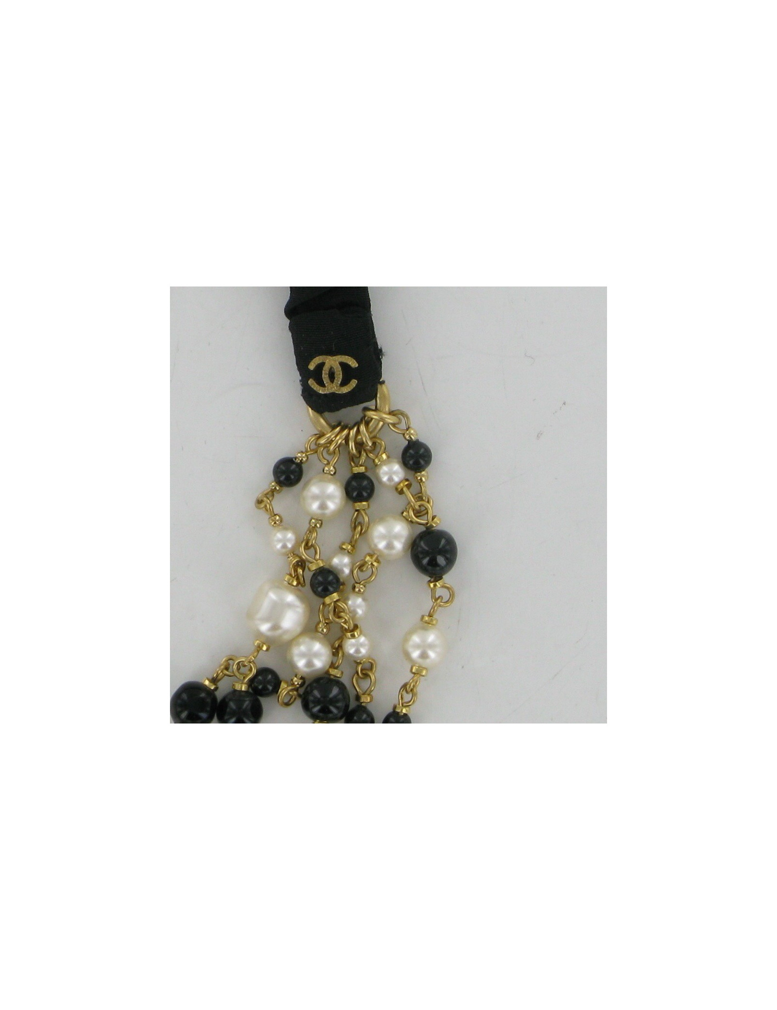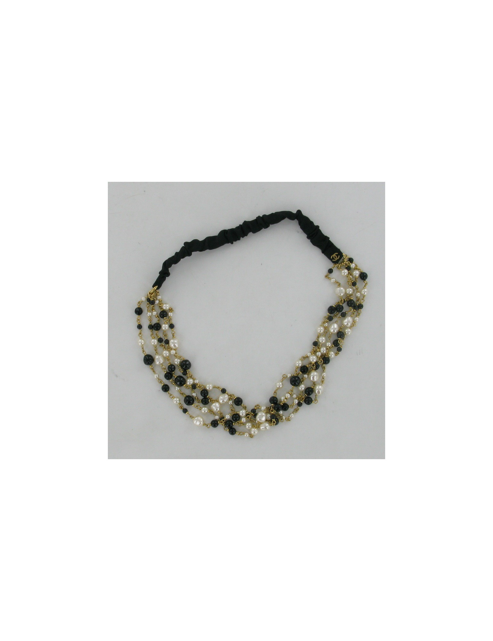 Serre-tête CHANEL avec 5 rangs de perles noires et nacrées