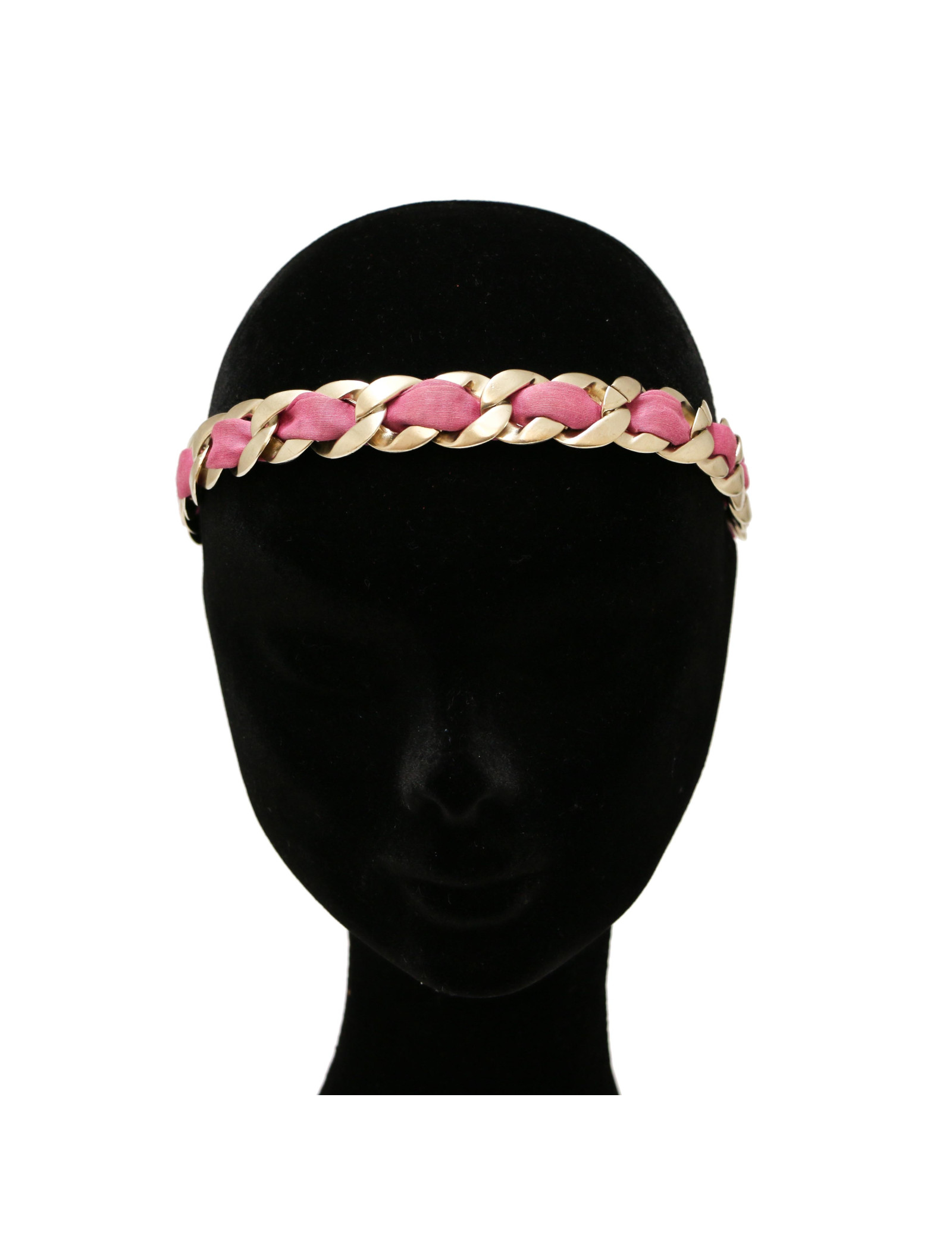 Serre-tête CHANEL chaine entrelacée tissu fuschia
