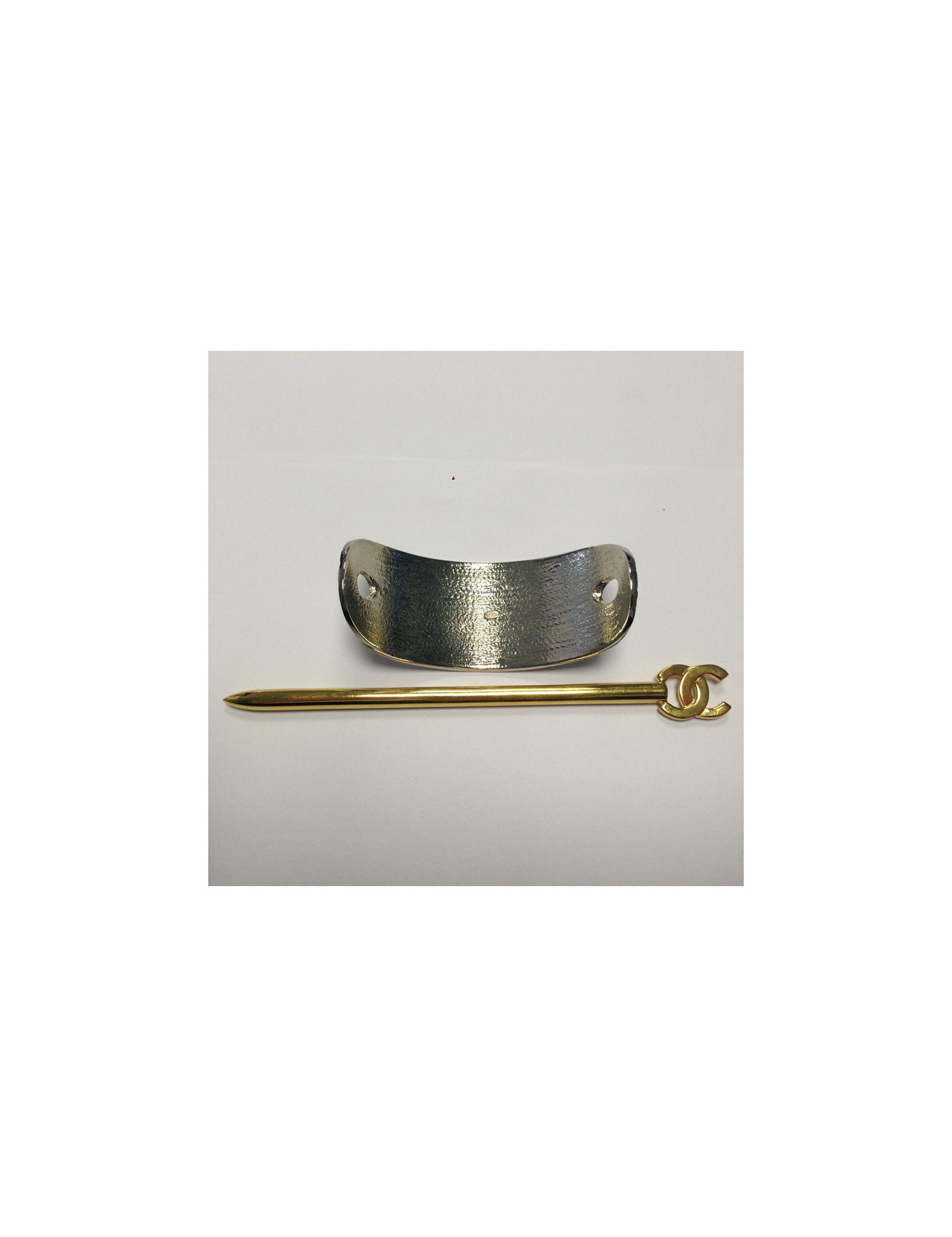 Barrette à pic CHANEL matelassée bicolore palladium et doré