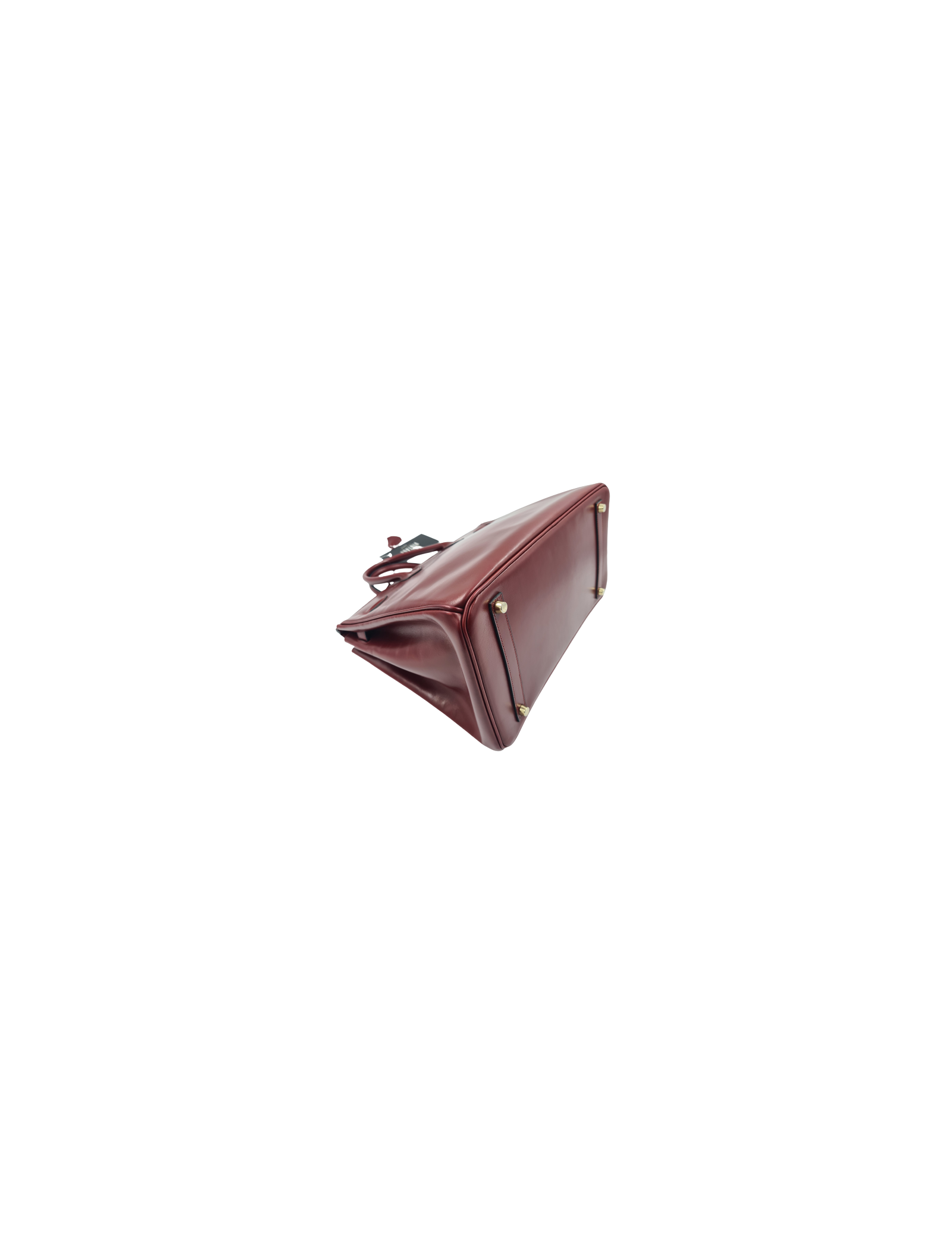 Détails : magnifique sac en box rouge H Bordeaux. La bijouterie est dorée. Légères griffures.