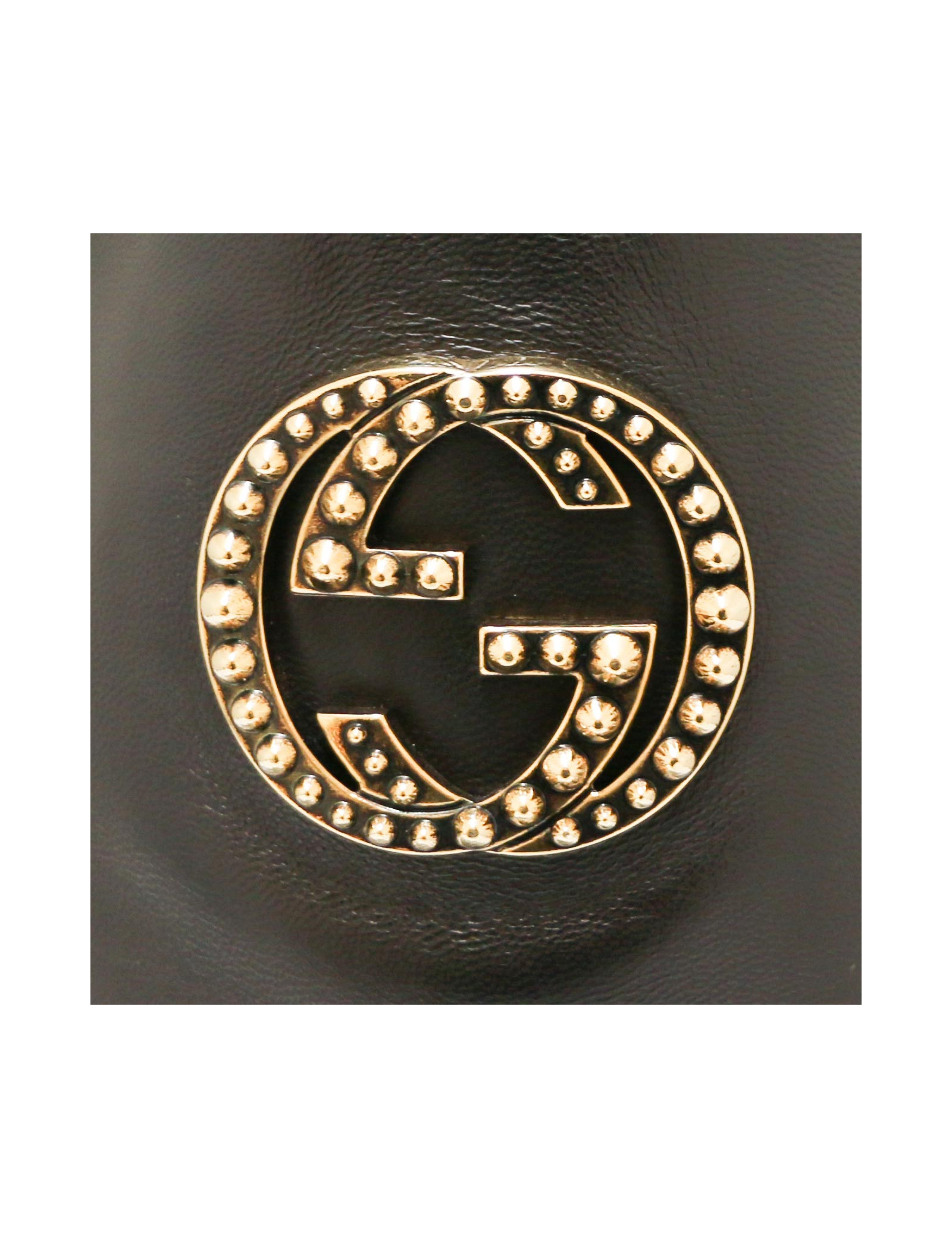 Détail : un double G en métal doré est collé sur la chaussure