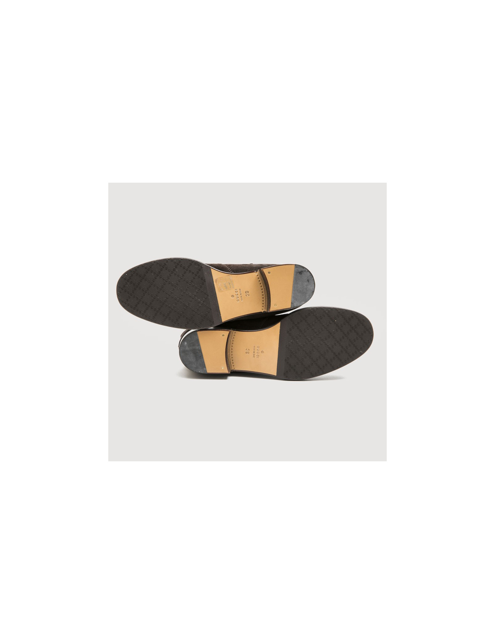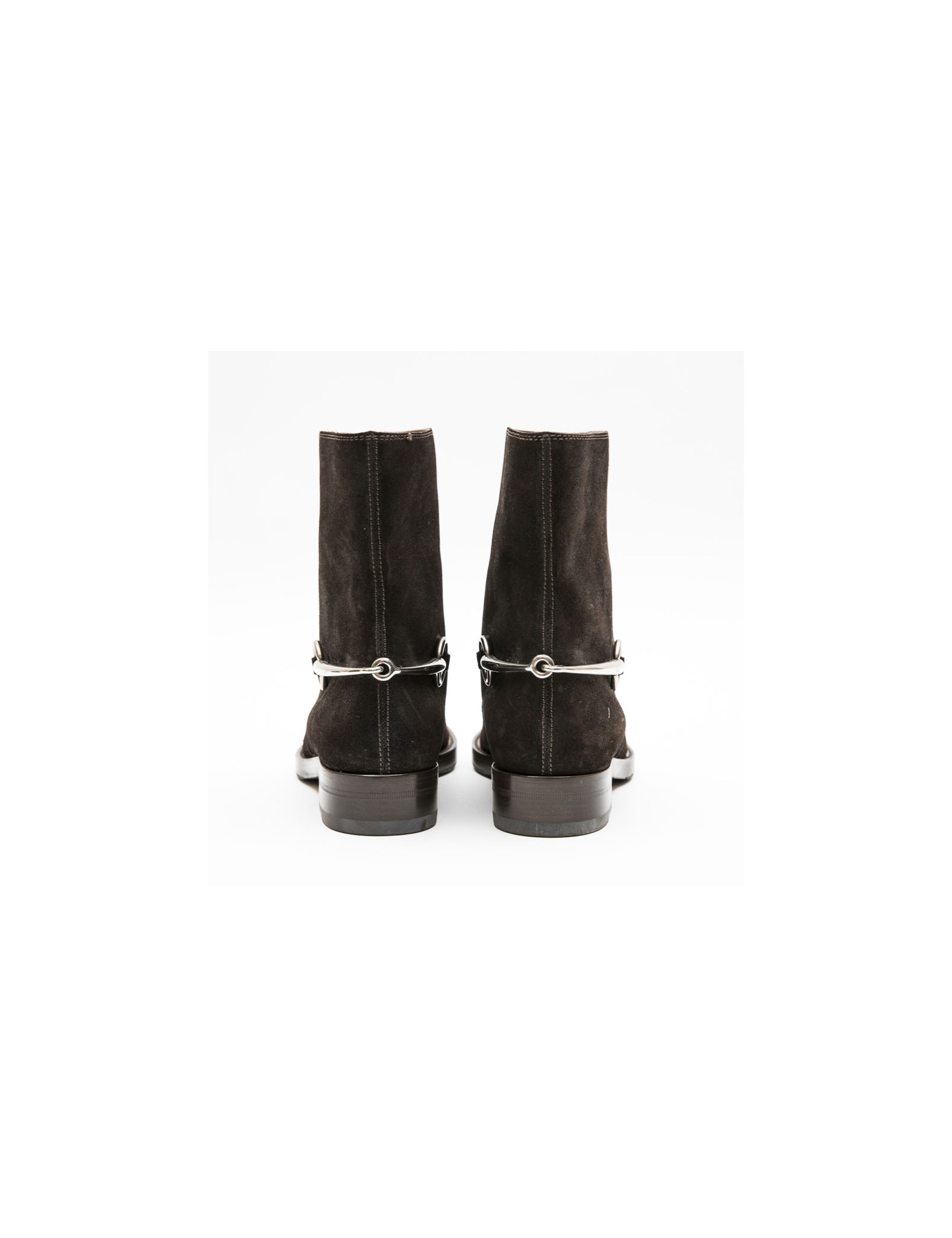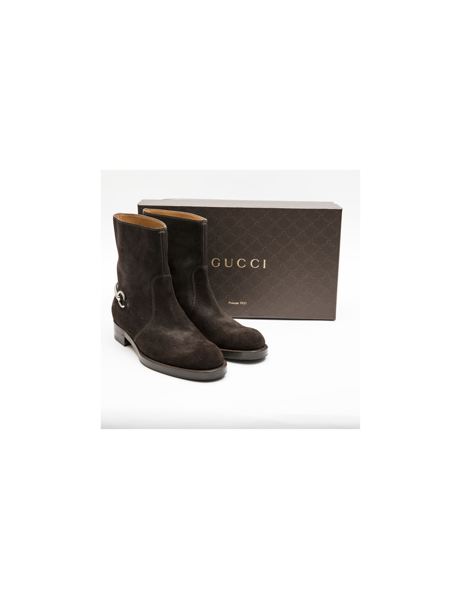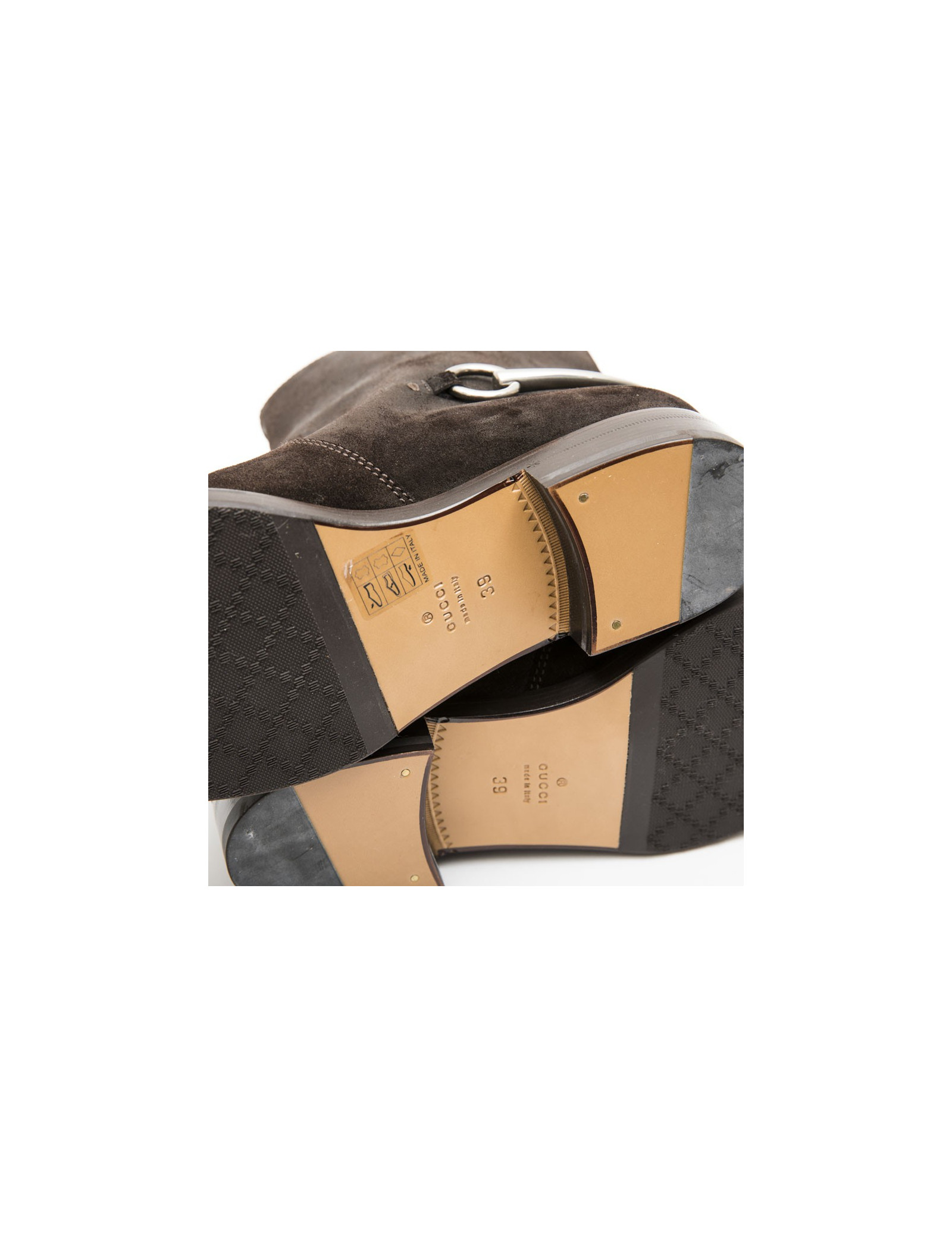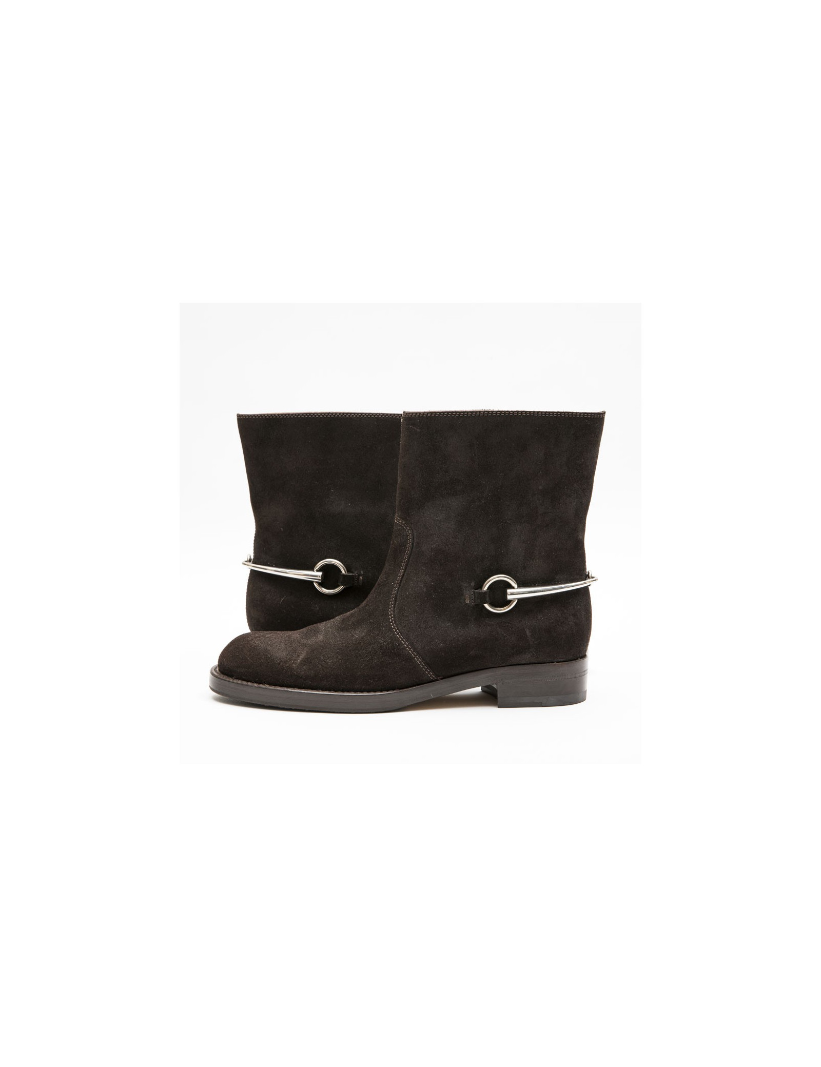 Boots T 39 GUCCI en daim marron et mors argent palladié
