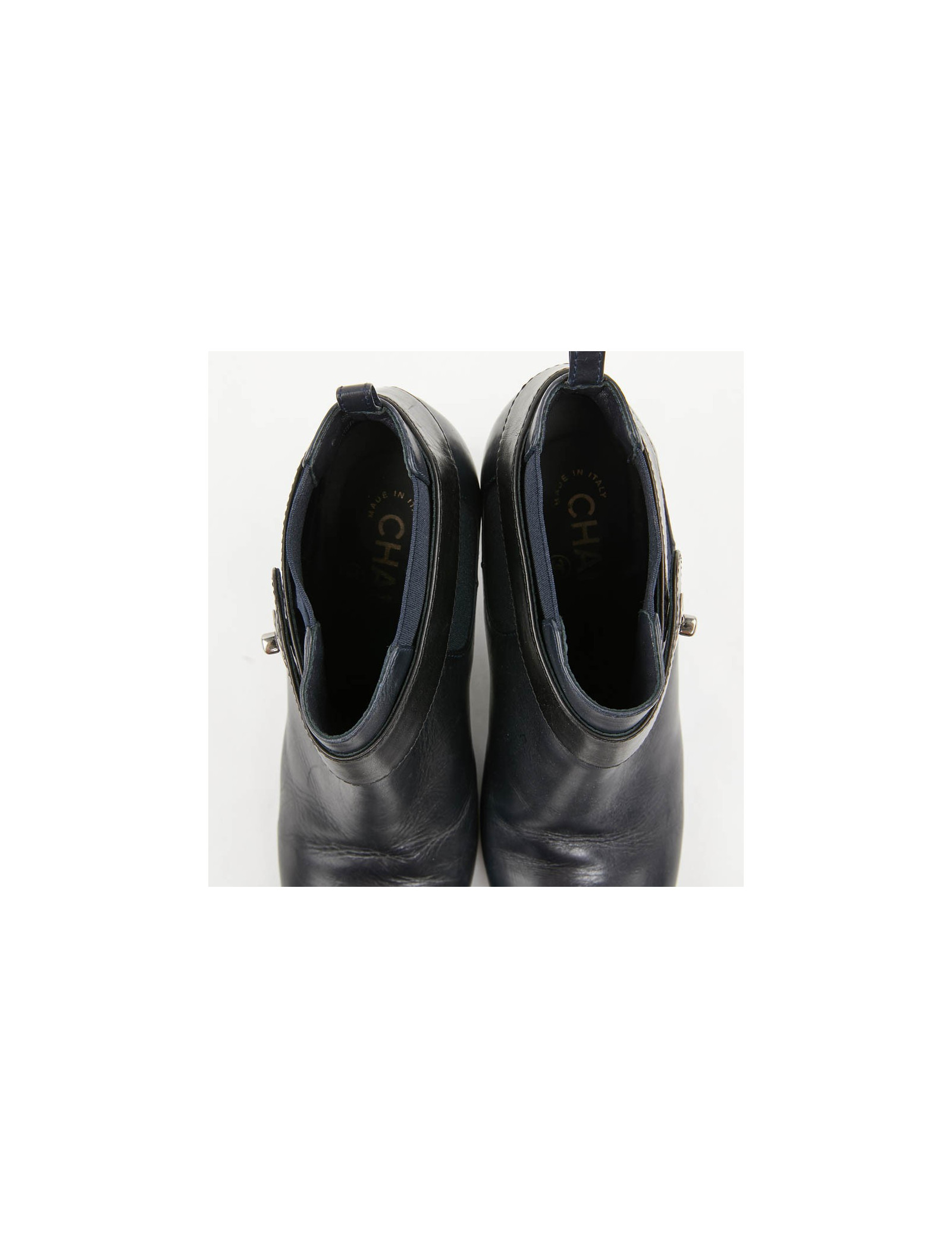 Boots T 37.5 CHANEL cuir d'agneau bleu et noir