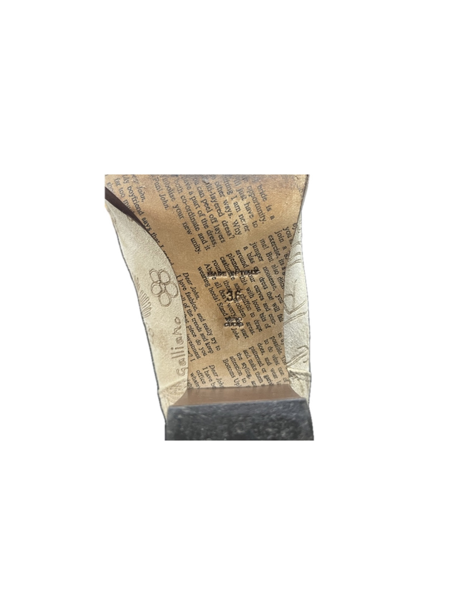 Derniers articles en stock BOTTES -BOOTS Mi bottes T 36,5 JOHN GALLIANO cuir marron rosé JOHN GALLIANO 18408 480,00 € Mi bottes T 36,5 JOHN GALLIANO Matière : cuir d'agneau Couleur :marron rosé et points jaunes . Taille 36,5. Cuir façon broderie. Boutons en nacre beige. Talon en bois marron. Fermeture zippée. En très bon état (malgré quelques traces sur le cuir plus foncées à l'arrière du talon. Hauteur talon: 9,5 cm, hauteur botte: 20 cm, tour cheville: 25 cm, tour... Ajouter au panier