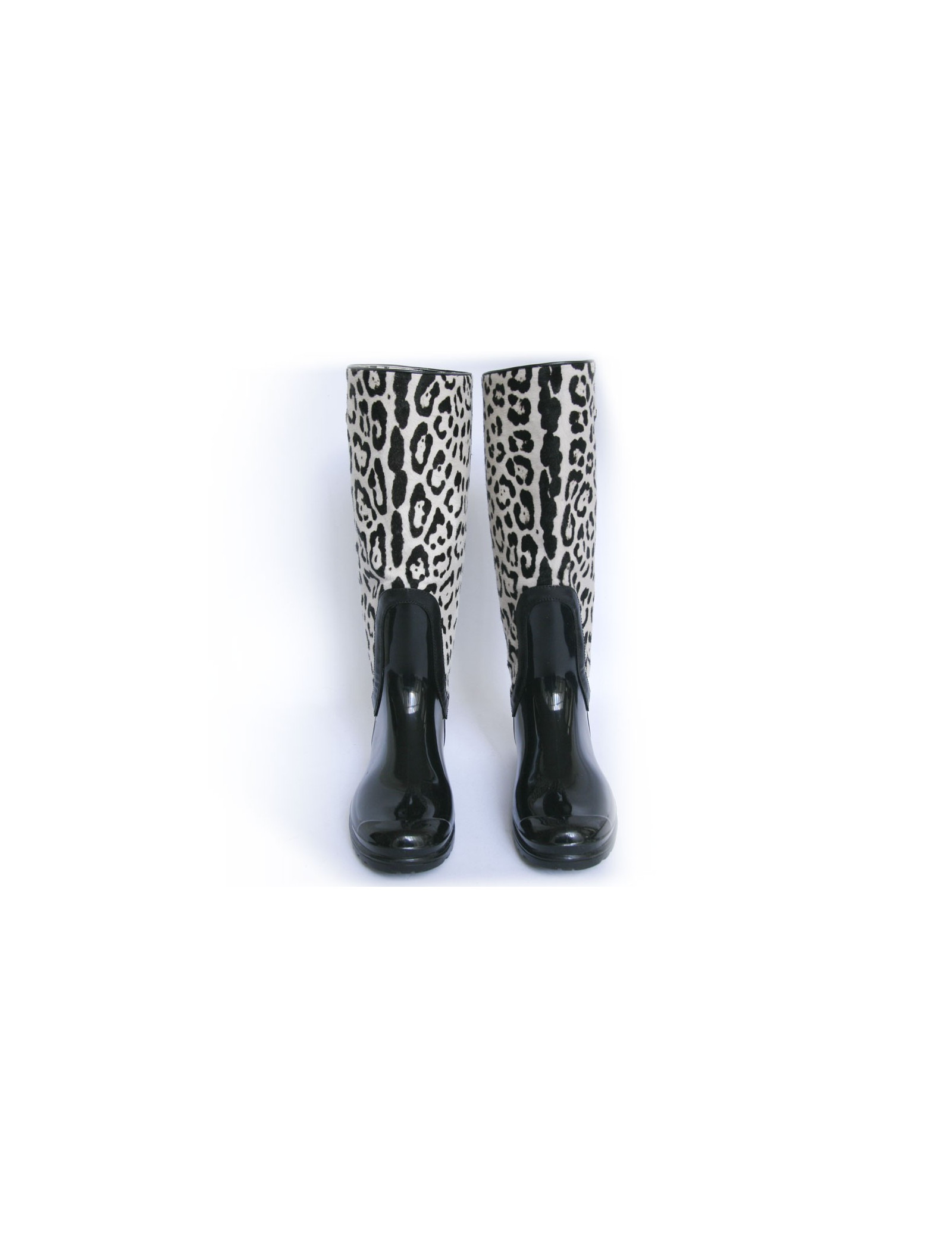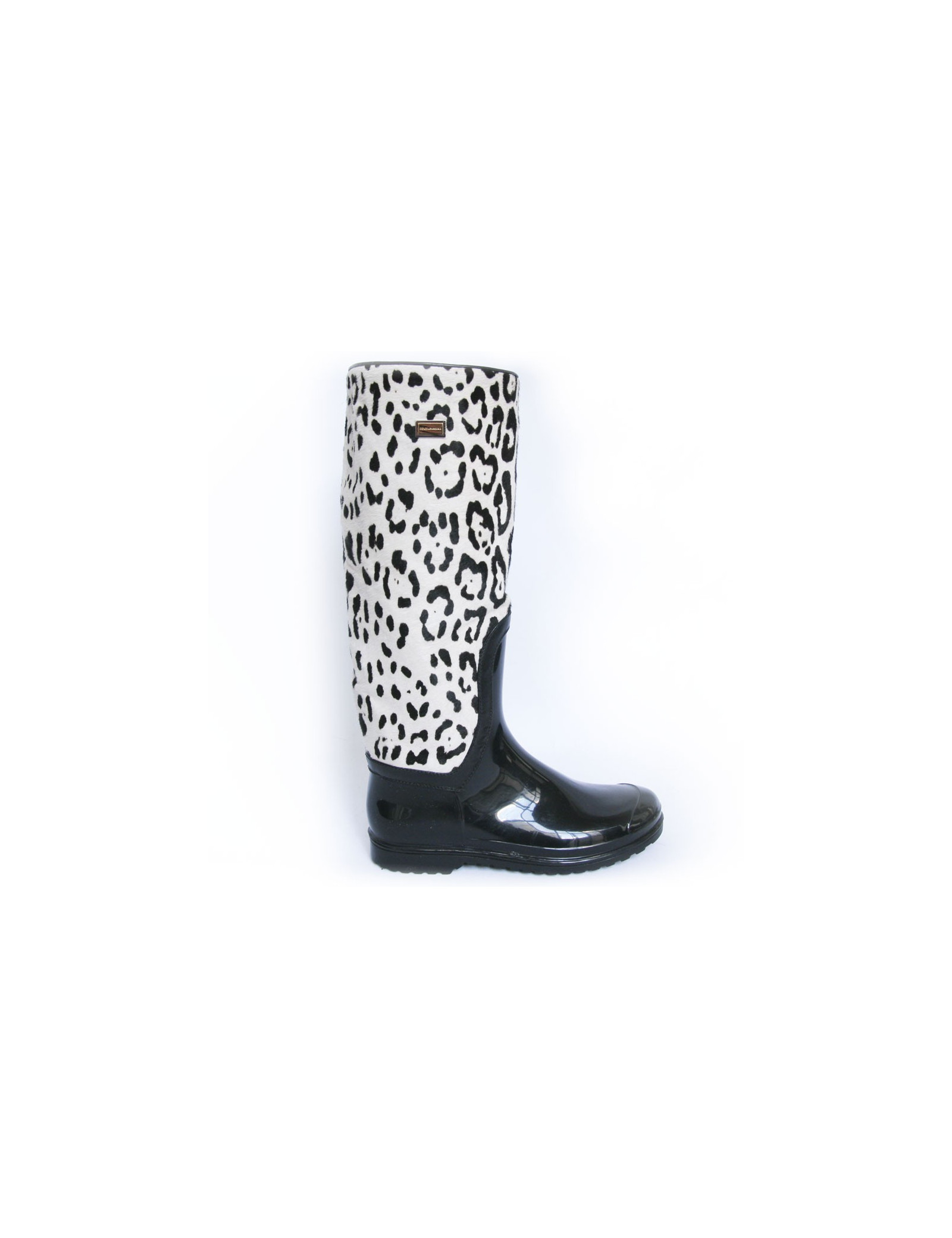 Bottes de pluie T 39 DOLCE & GABBANA en poulain de couleur noir et blanc - détails:
