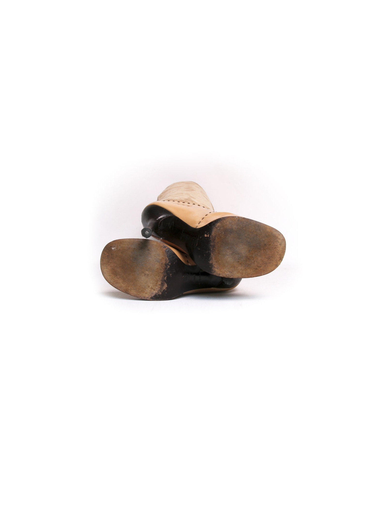 Des bottes CHANEL T39.5 en daim et cuir verni beige