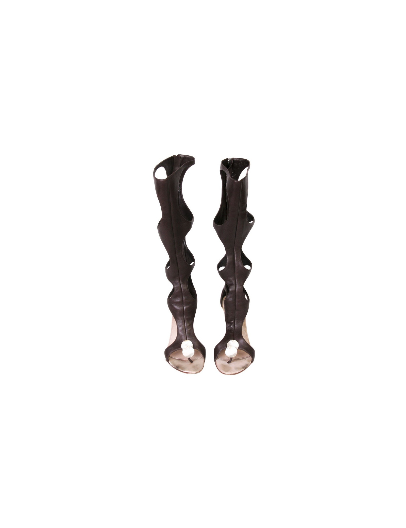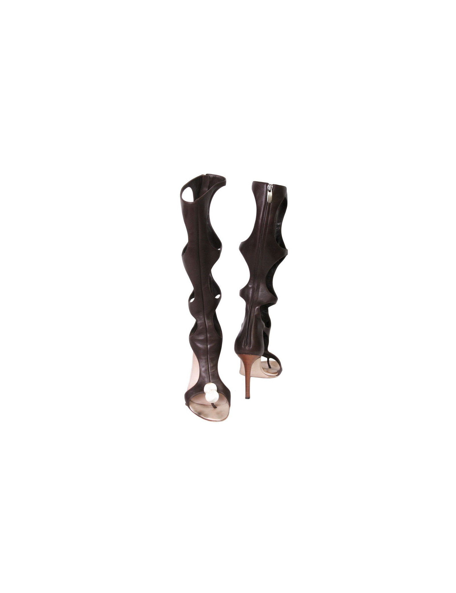 Bottes hautes à talons T 37.5 SERGIO ROSSI perforées en cuir marron pour l'été - détails: