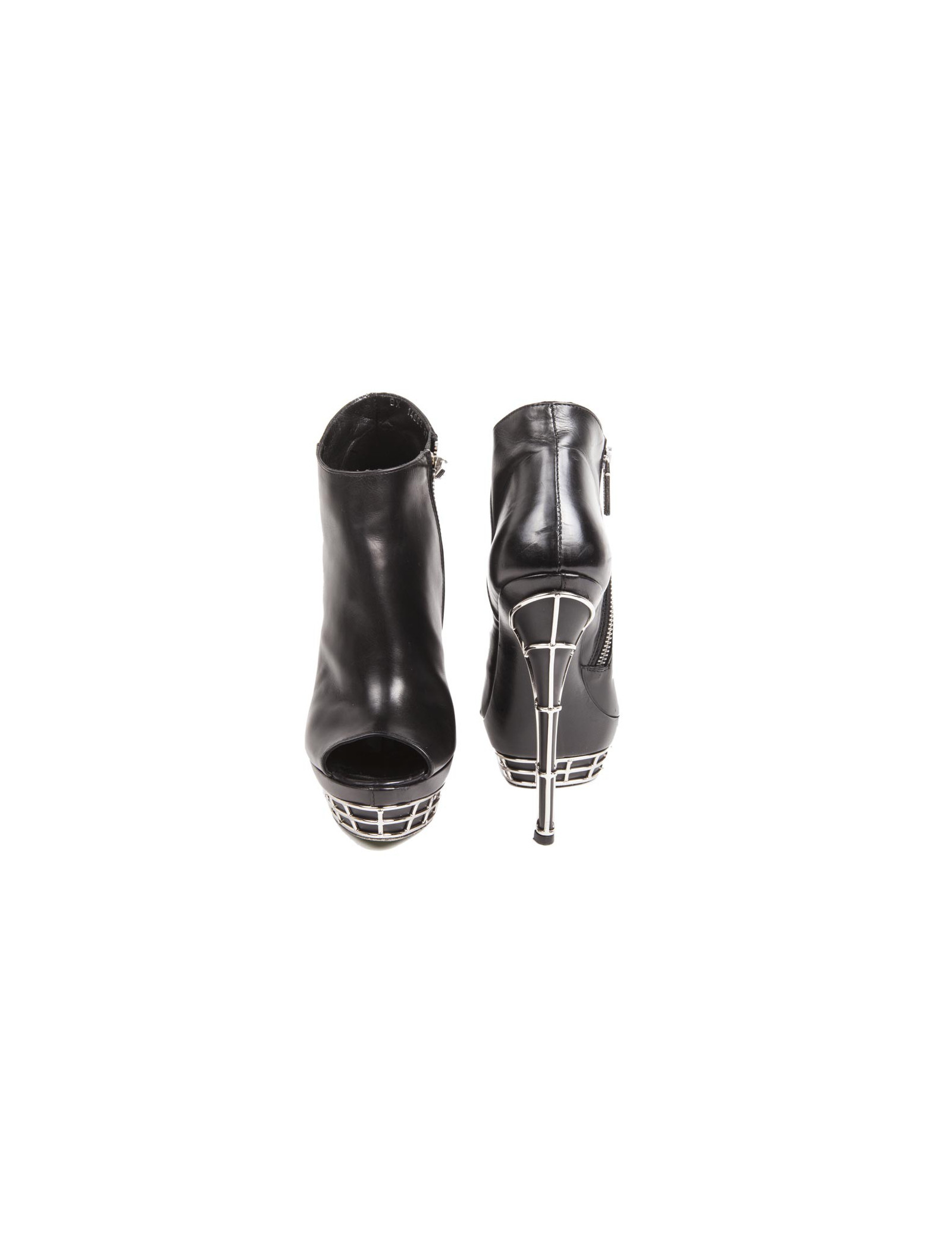 Low boots Roberto Botticelli Luxury en cuir noir ouvertes sur le devant, plateau (3,5 cm) et talon serti dans un cadre