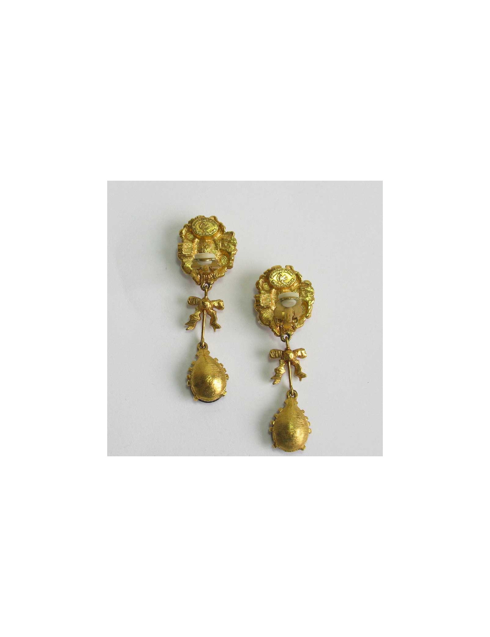 Boucles d'oreille clips CHRISTIAN LACROIX pendantes en métal doré et pierres fantaisies
