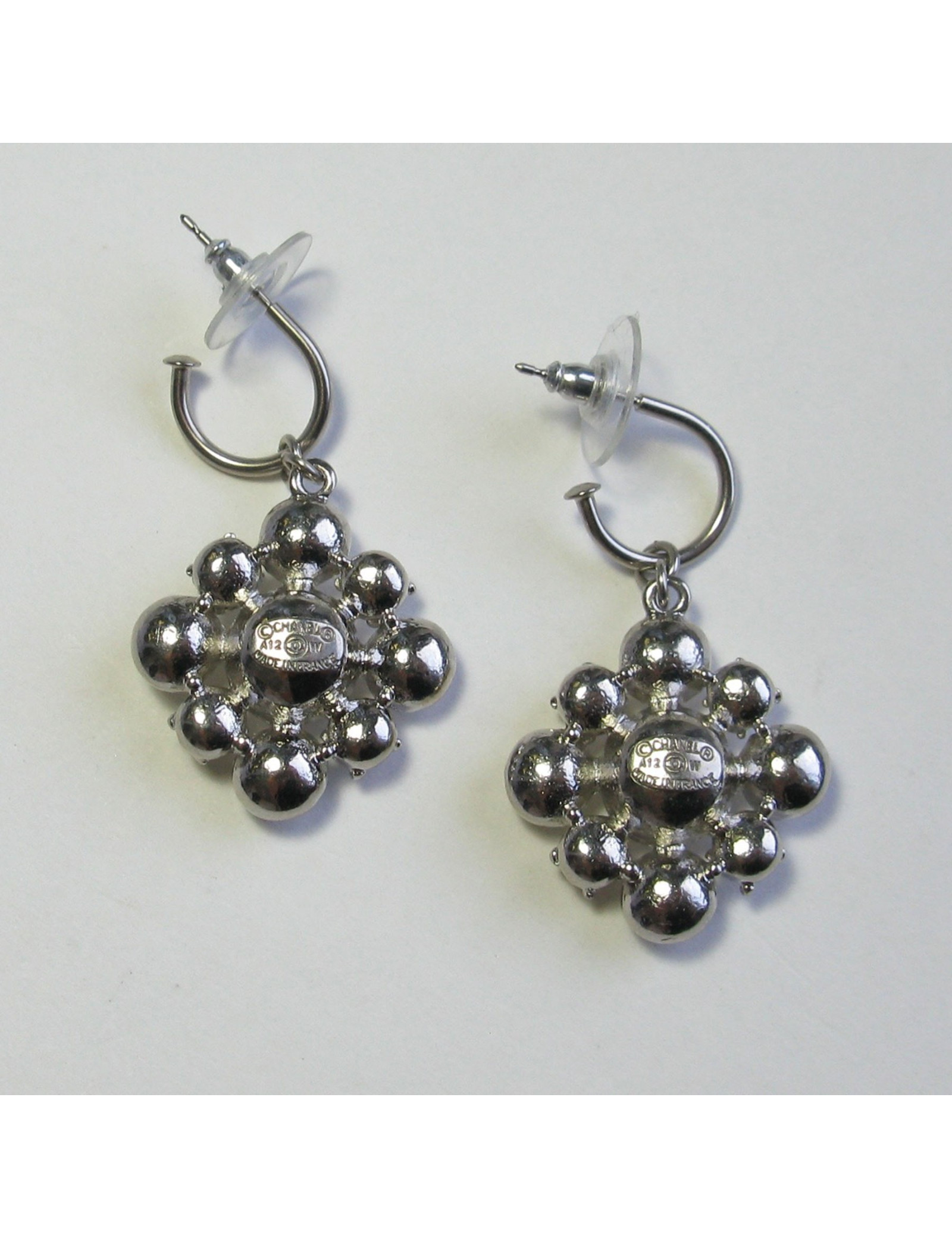 Très belles boucles d'oreille clous Chanel en métal argenté serties de strass de deux tons.
