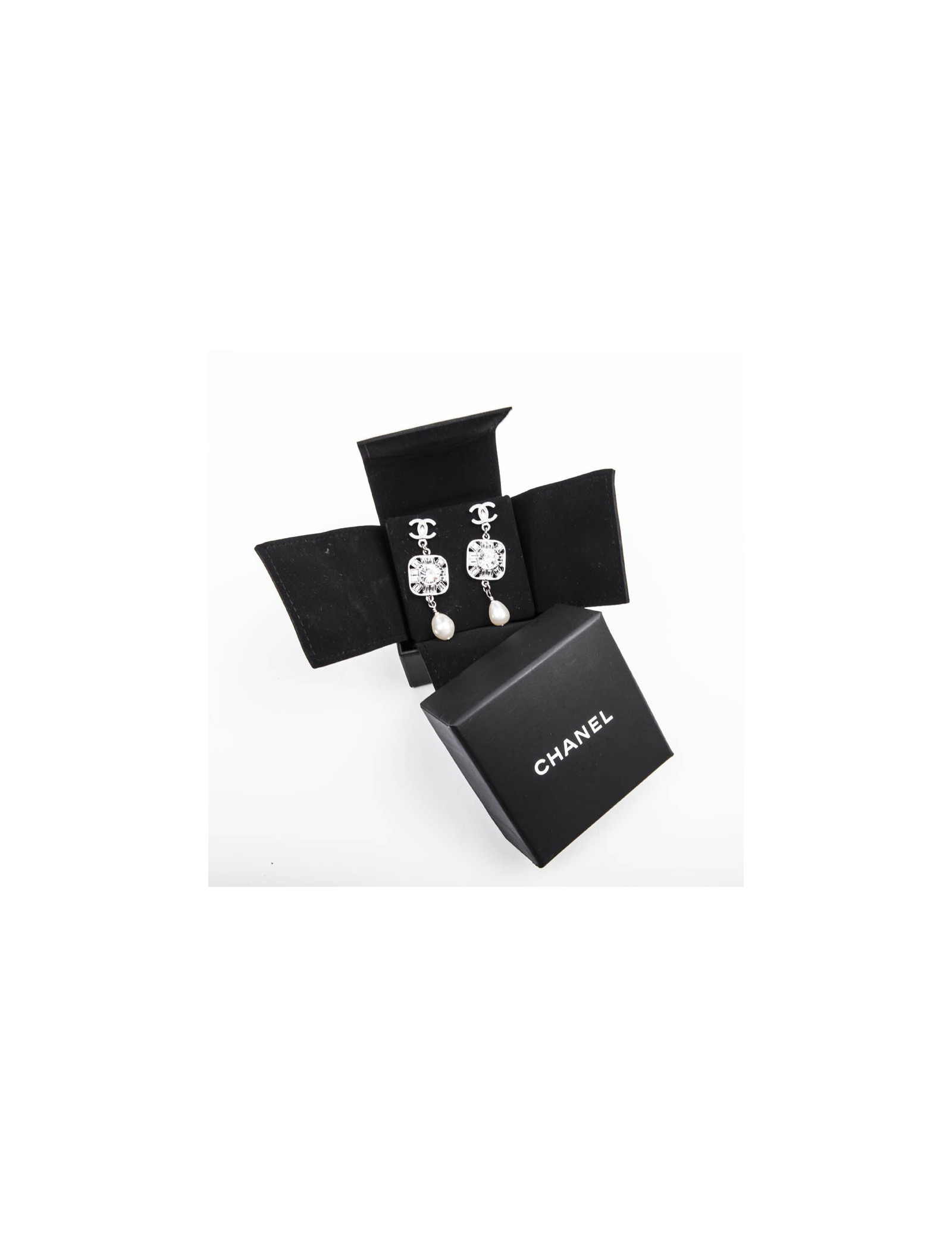 Boucles d'oreille pendantes CHANEL brillants et strass