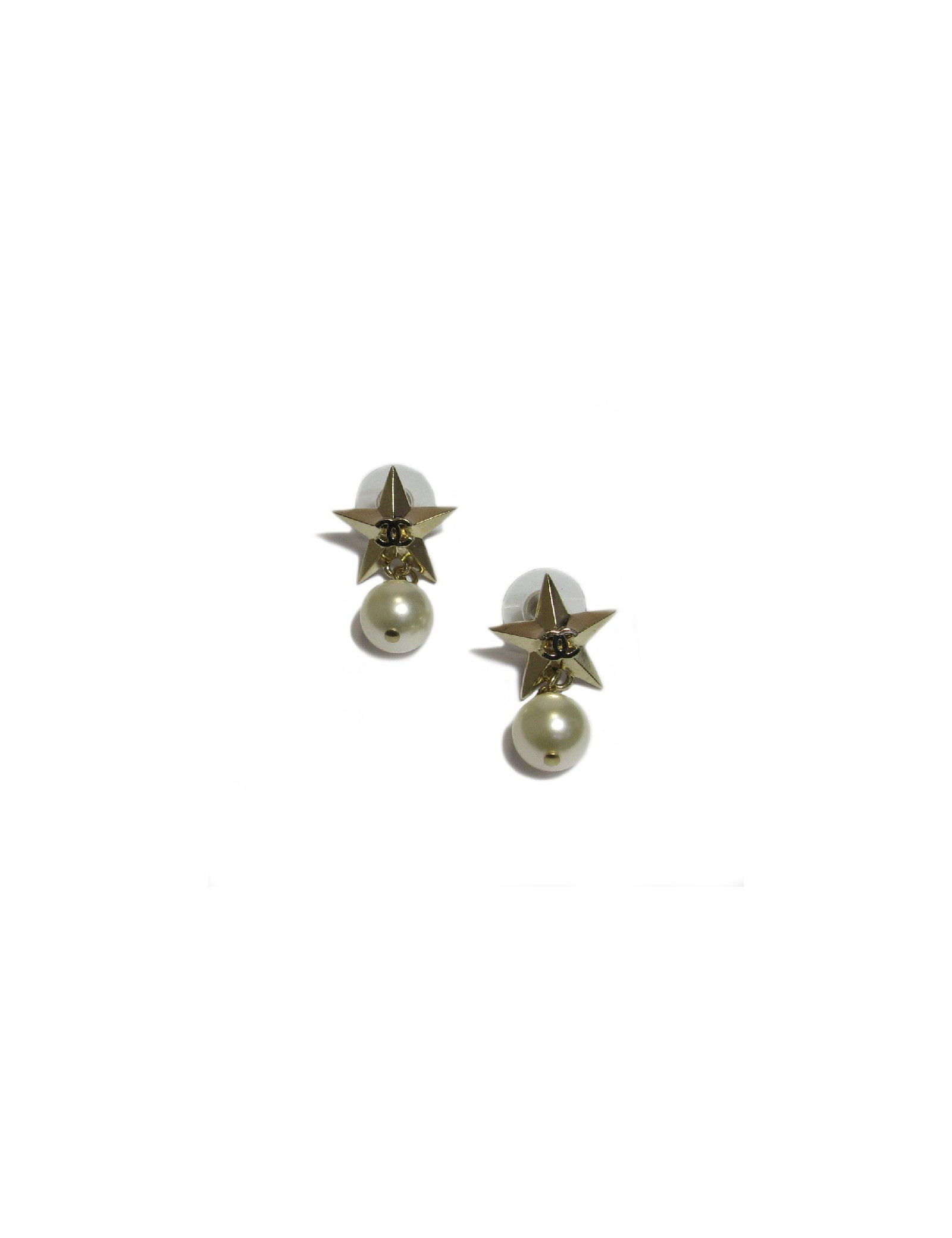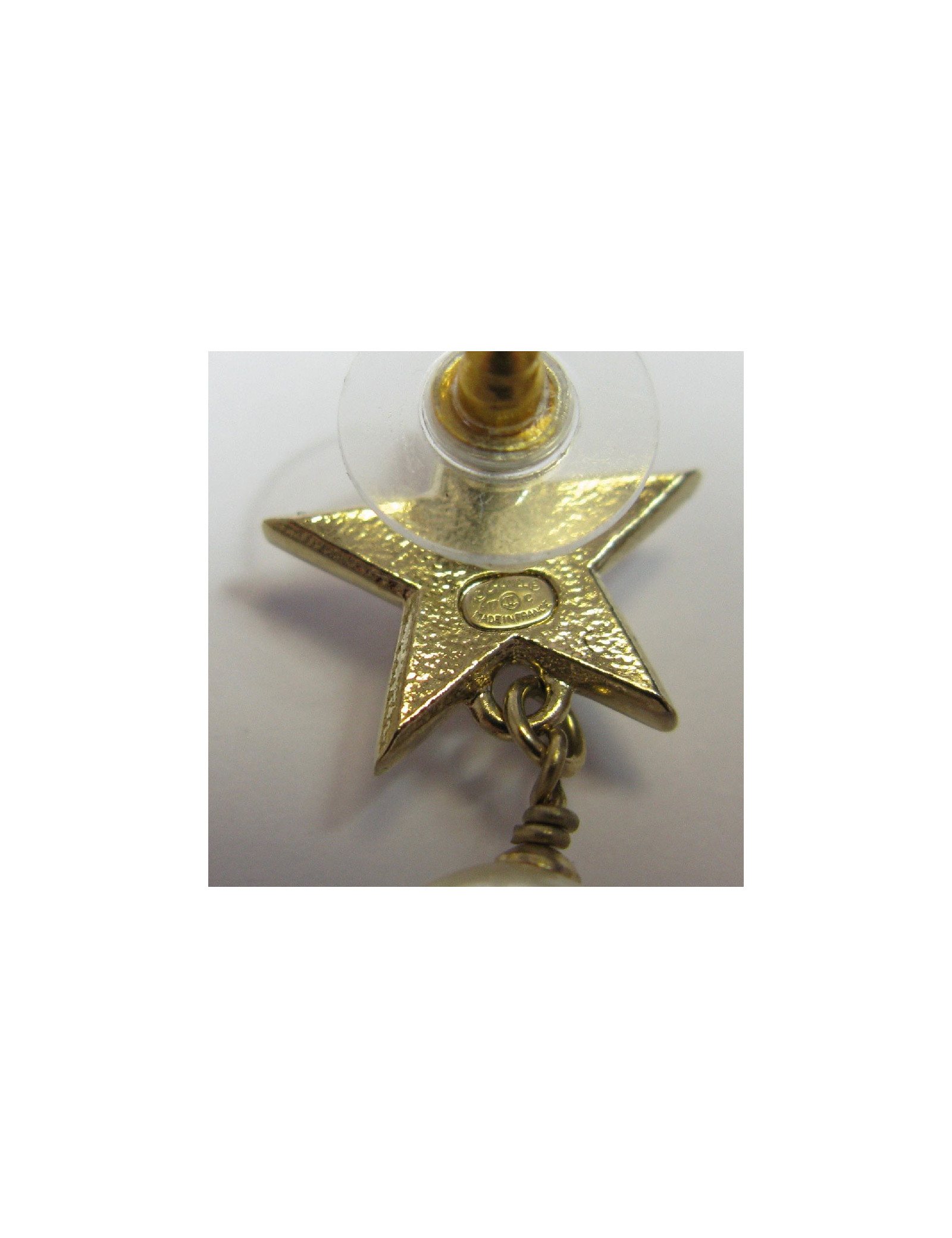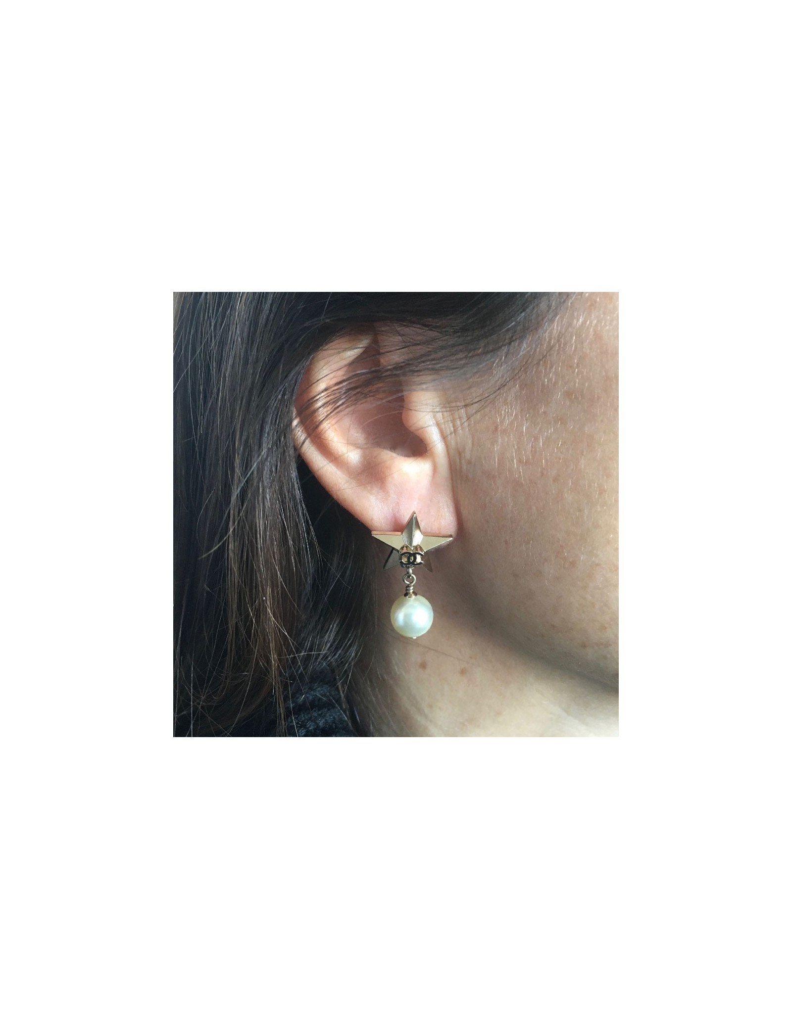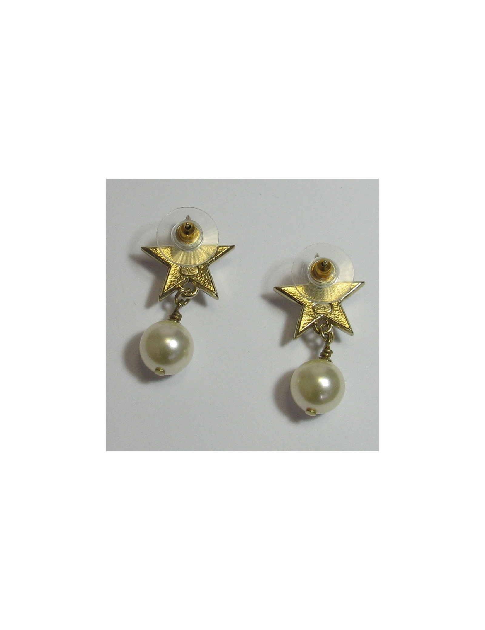 Boucles d'oreille clous Chanel étoile dorée et perle nacrée