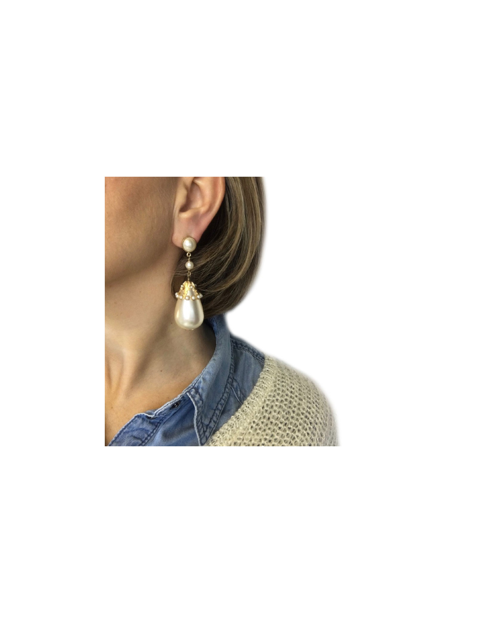 Imposants clips d'oreilles CHANEL perle nacrée