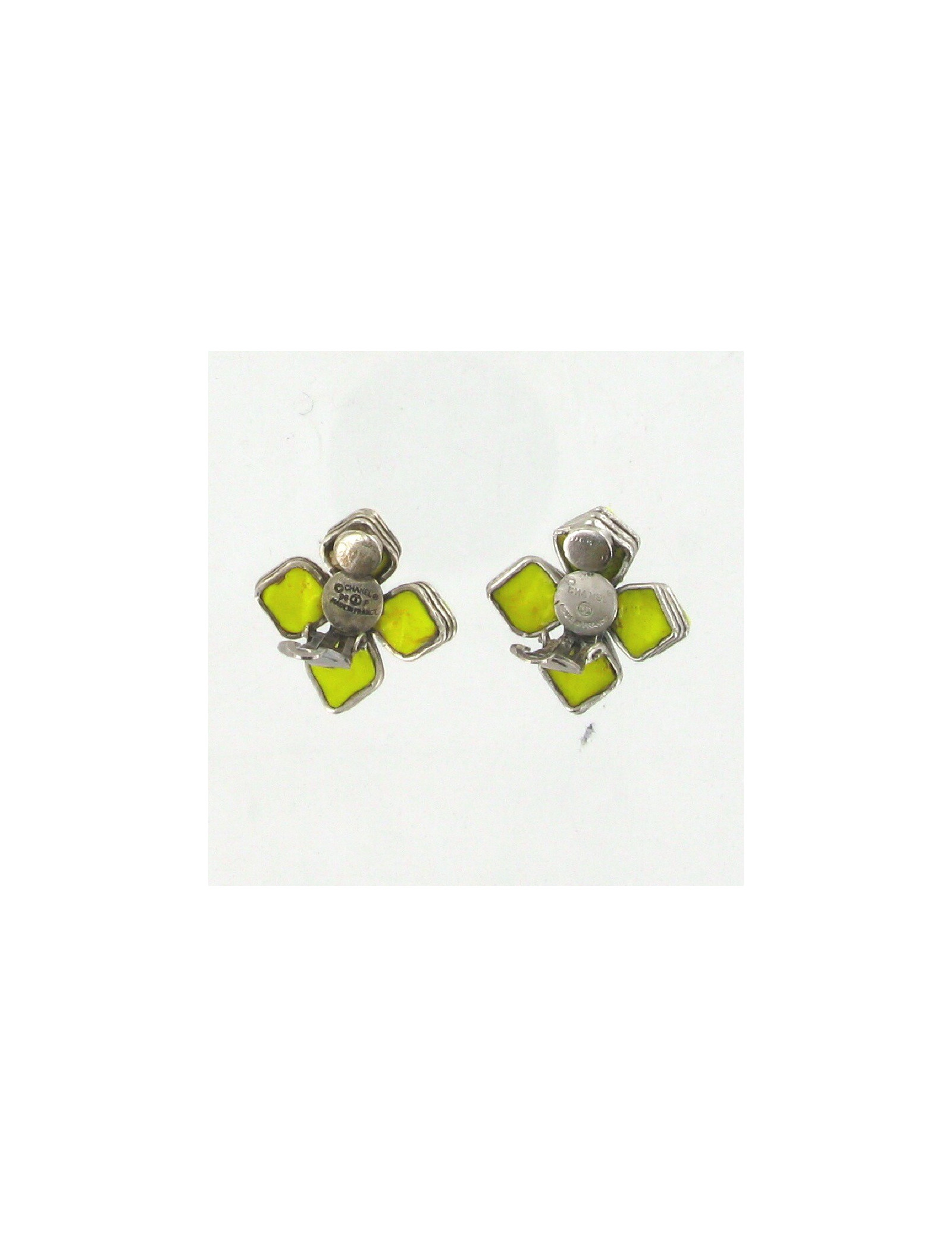 Clips fleurs vintage CHANEL en pâte de verre jaune et rouge