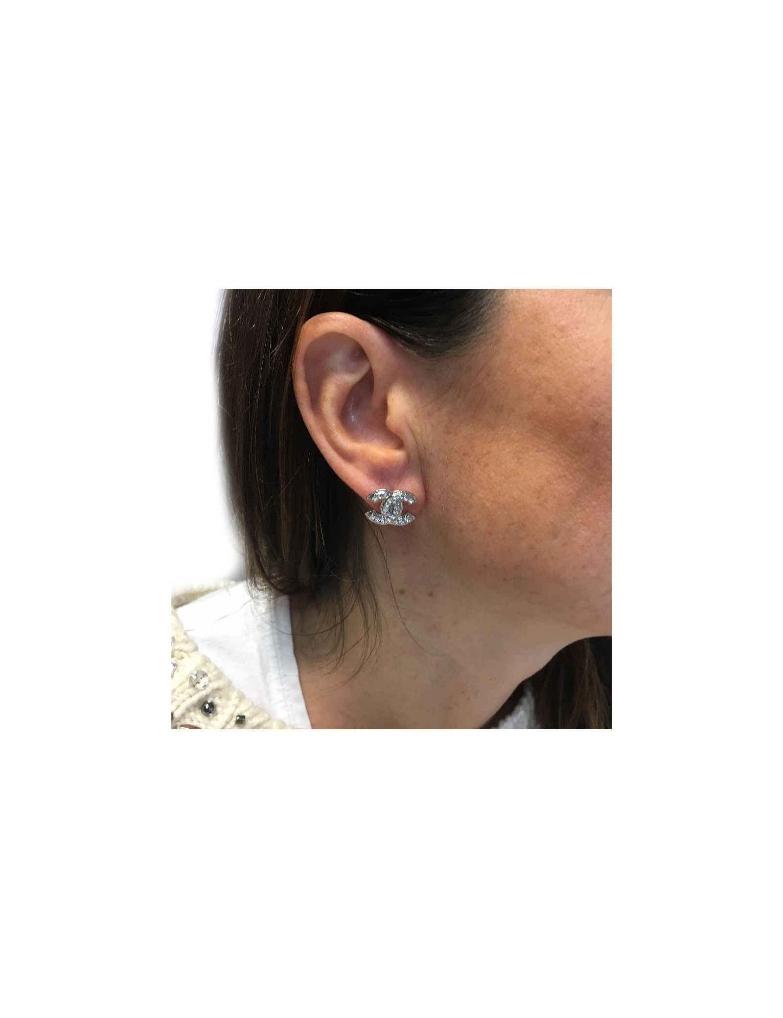 Boucles d'oreille clous CHANEL CC en métal argenté et strass